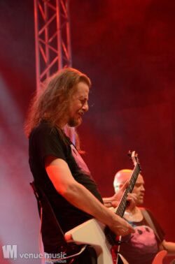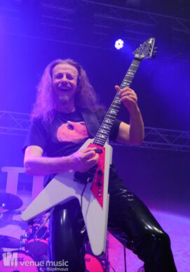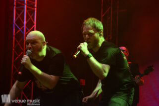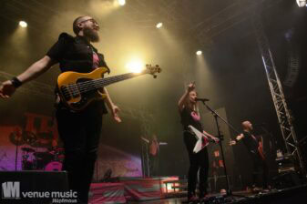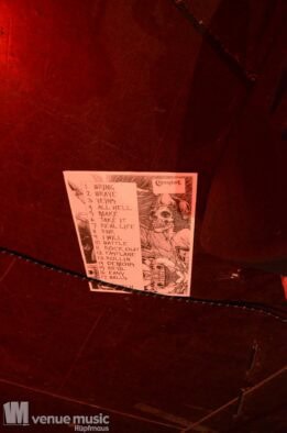 Wer sich dachte „hol ich schnell mal bei der Vorband etwas am Merch“, der hatte sich verzockt… ganze 30 Minuten dauerte es, bis man dran kam. Das war echt lang. Zum Glück konnte man aus der Schlange weiter den Auftritt hören und sehen. Ist ja in der Turbinenhalle 2 zum Glück alles nah beieinander. Das war aber wirklich etwas doof.
