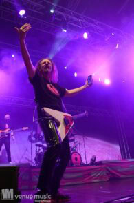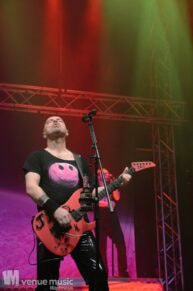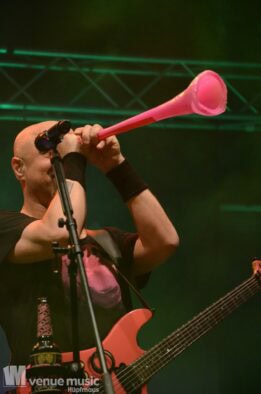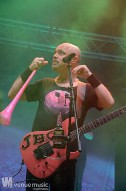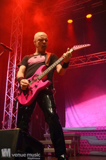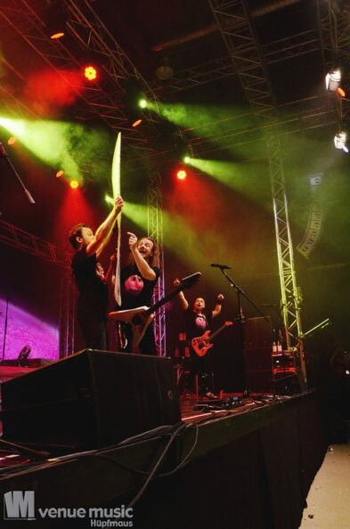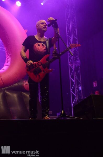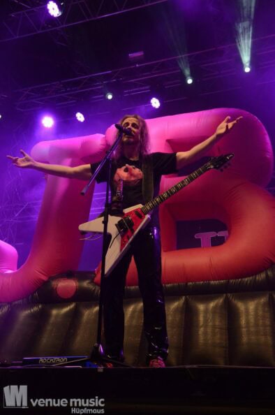 Um 21 Uhr enterten dann die Verteidiger des Blödsinns die Bühne. Zur Eröffnung des Sets wurde der „Planet Pink“ ;) – bevor „Dr.Met“ nach dem Rechten schaute. Insgesamt war es eine bunte Mischung an Songs aus mindestens 10 verschiedenen Alben. Klassiker – oder um es mit Hannes Worten zu sagen „Alter Scheiss“ – wie „Bolle“, „Schlumpfzoid im Stadtgebiet“ oder „Wir ham ne Party“ durften natürlich nicht fehlen. Aber auch neue(re) Hits wie „Gänseblümchen“ oder „Wer lässt die Sau raus“ waren dabei. Insgesamt 25 Songs (inklusive Drumsolo) begeisterten das Publikum. Klar, fehlte dem einen oder anderen ein geliebter Song, aber leider ist so ein Abend nun einmal endlich. Und die Jubiläumstour zum Album „Explizite Lyrik“ hat ja nie stattfinden können wir geplant. Das wäre sicher cool geworden.