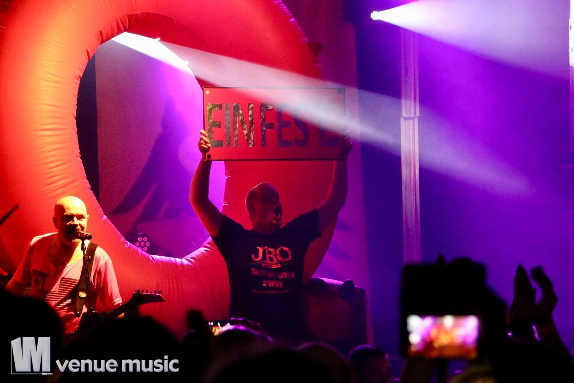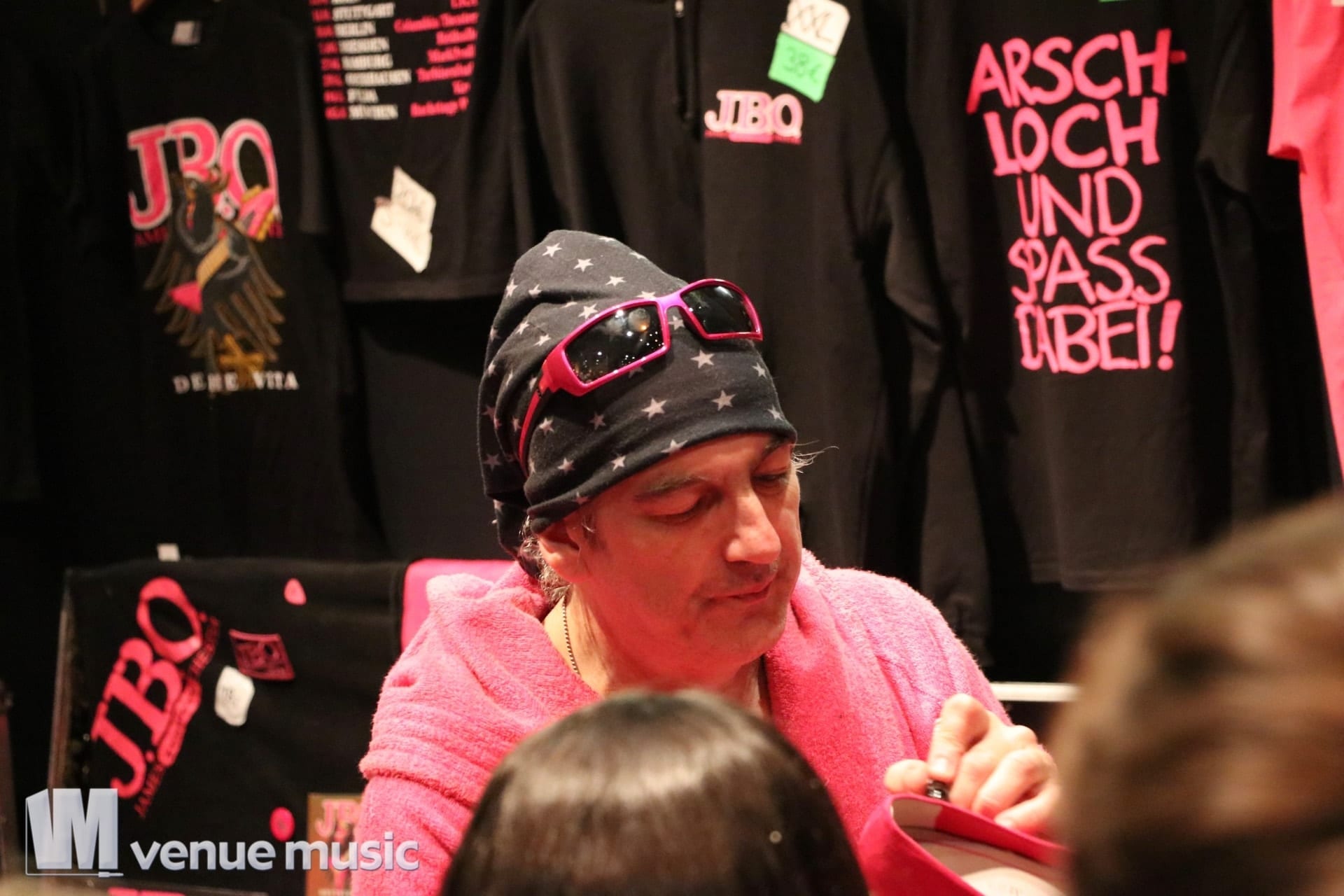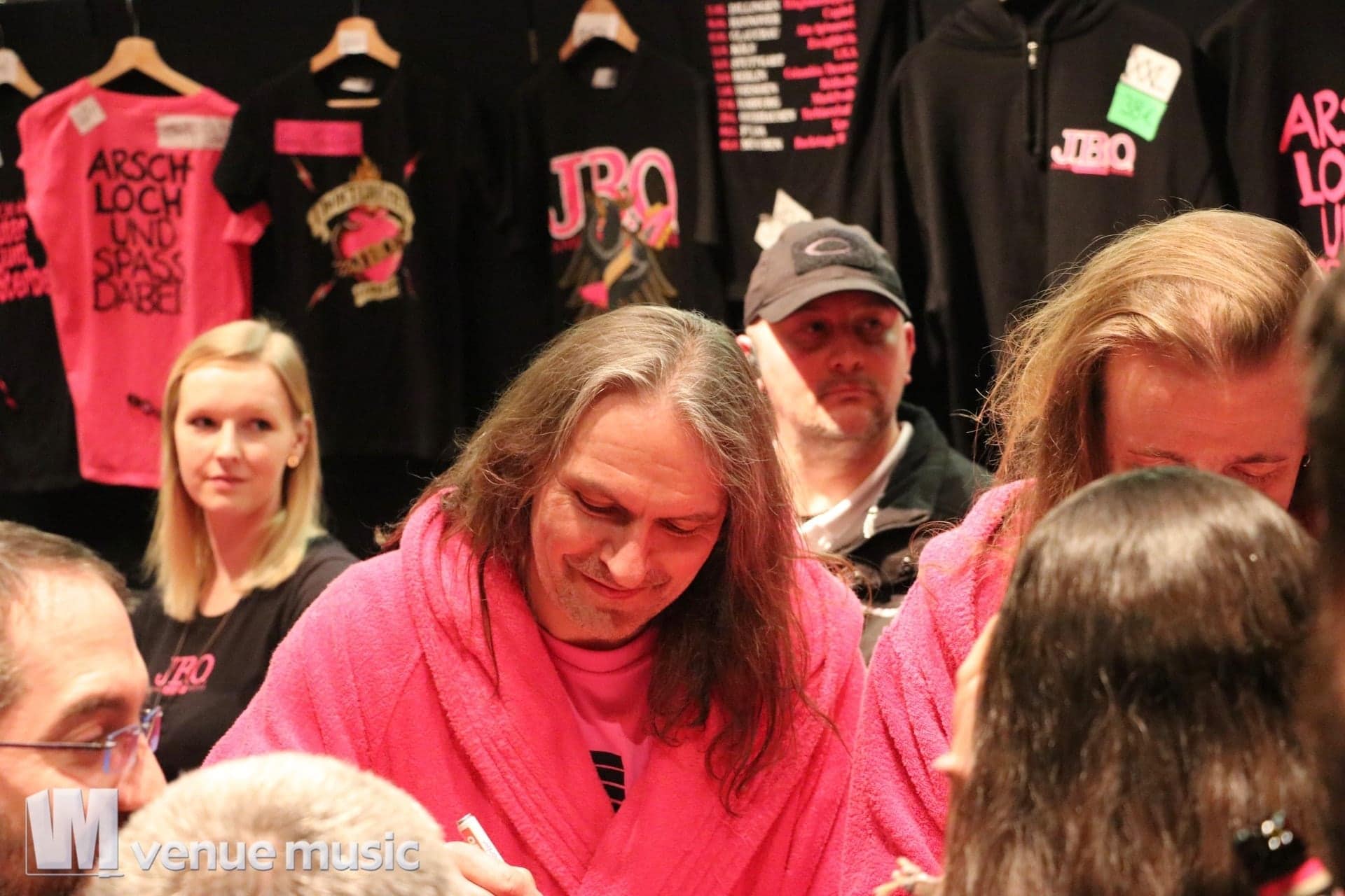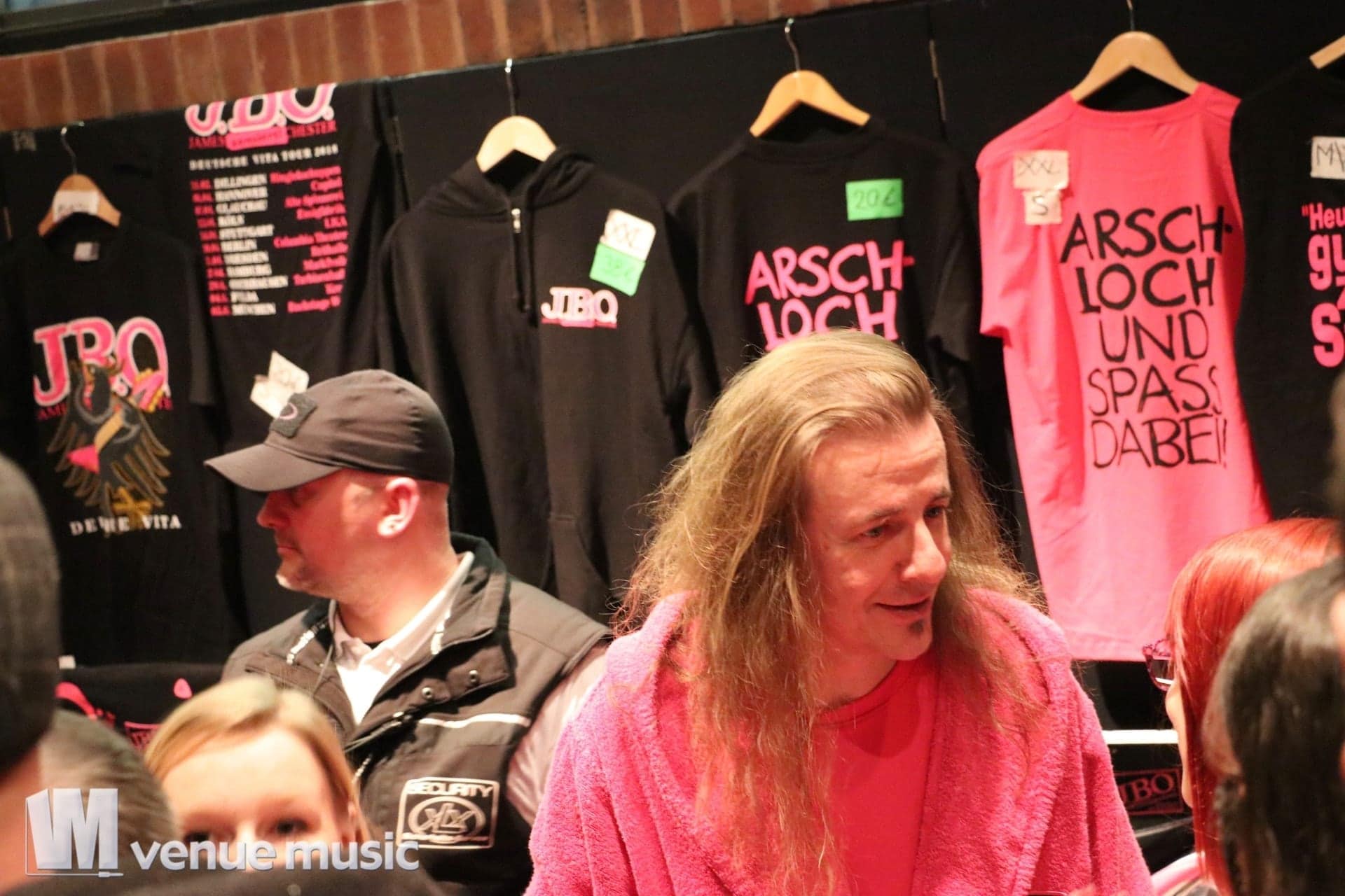 31.03.2018: „Deutsche Vita“-Tourauftakt von J.B.O. im Dillinger Lokschuppen. Ein Tag davor erschien das gleichnamige Album und die Veröffentlichung wurde in Dillingen natürlich anständig gefeiert. Neben Klassikern wie „Bolle“, „Ich sag J.B.O.“, „Kuschelmetal“, „Ein Fest“ und „Frauen“ waren auch neue Songs auf der Setlist zu finden und natürlich durfte „Alles nur geklaut“ nicht fehlen. Ein klug gewählter Opener, denn schon gleich zu Beginn war das Publikum kaum noch zu halten. Da hatten aber auch AC Angry als Support schon gute Arbeit geleistet, denn als die Jungs fertig waren, war die Halle schon anständig aufgeheizt. Eine runde Show, bei der auch die Fan-Action nicht zu kurz kam, aber da will ich nicht zu viel verraten. J.B.O. und das Publikum waren in Topform und nach der Show gab es wie gewohnt Autogramme am Merch. Was will man mehr? Wer J.B.O. live sehen und sich selbst von der Party überzeugen will, der hat am 06.04.2018 in Hannover die nächste Gelegenheit dazu und die Tour geht natürlich noch wesentlich länger. Einfach Termine checken und hingehen – es lohnt sich!