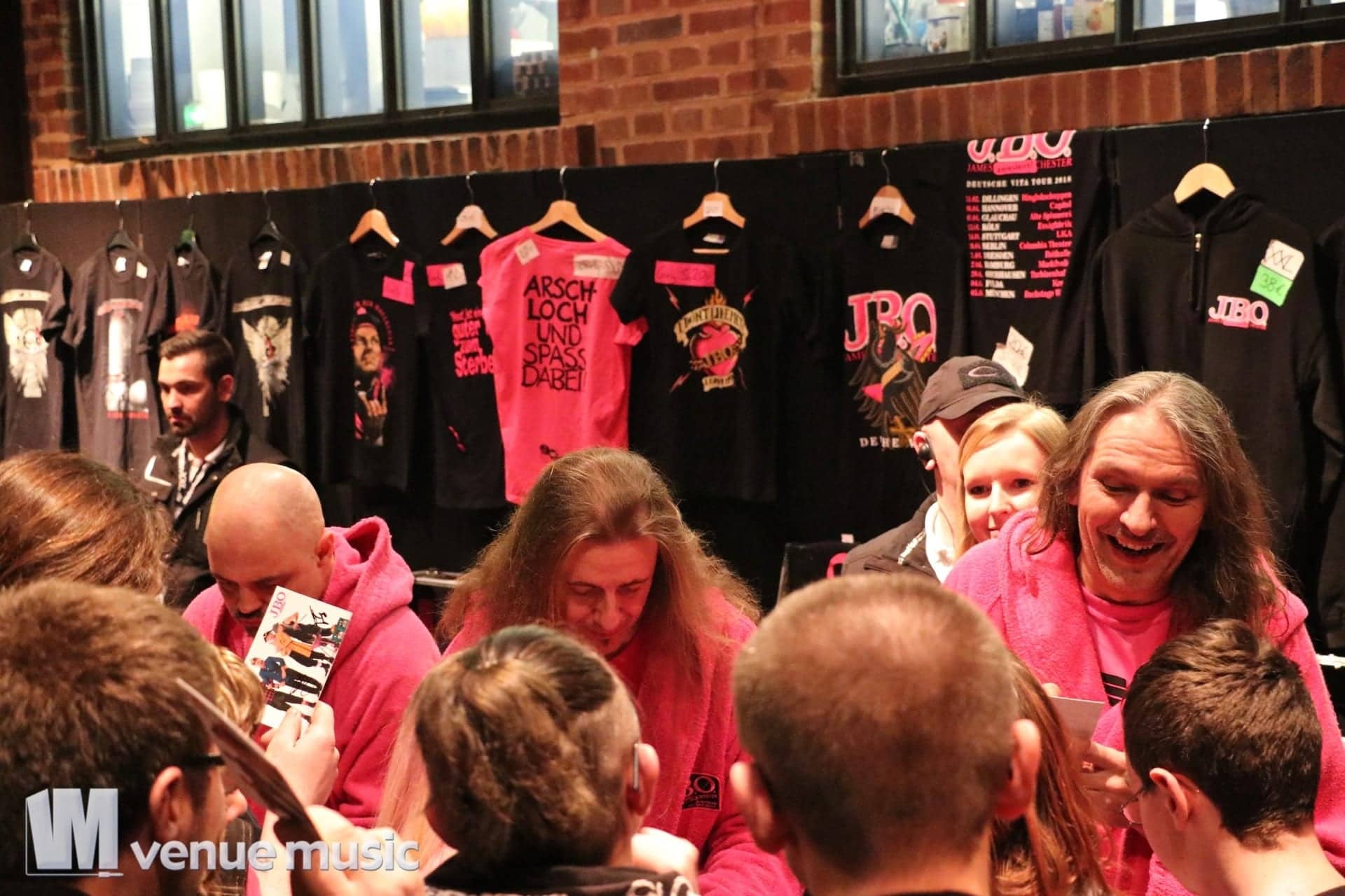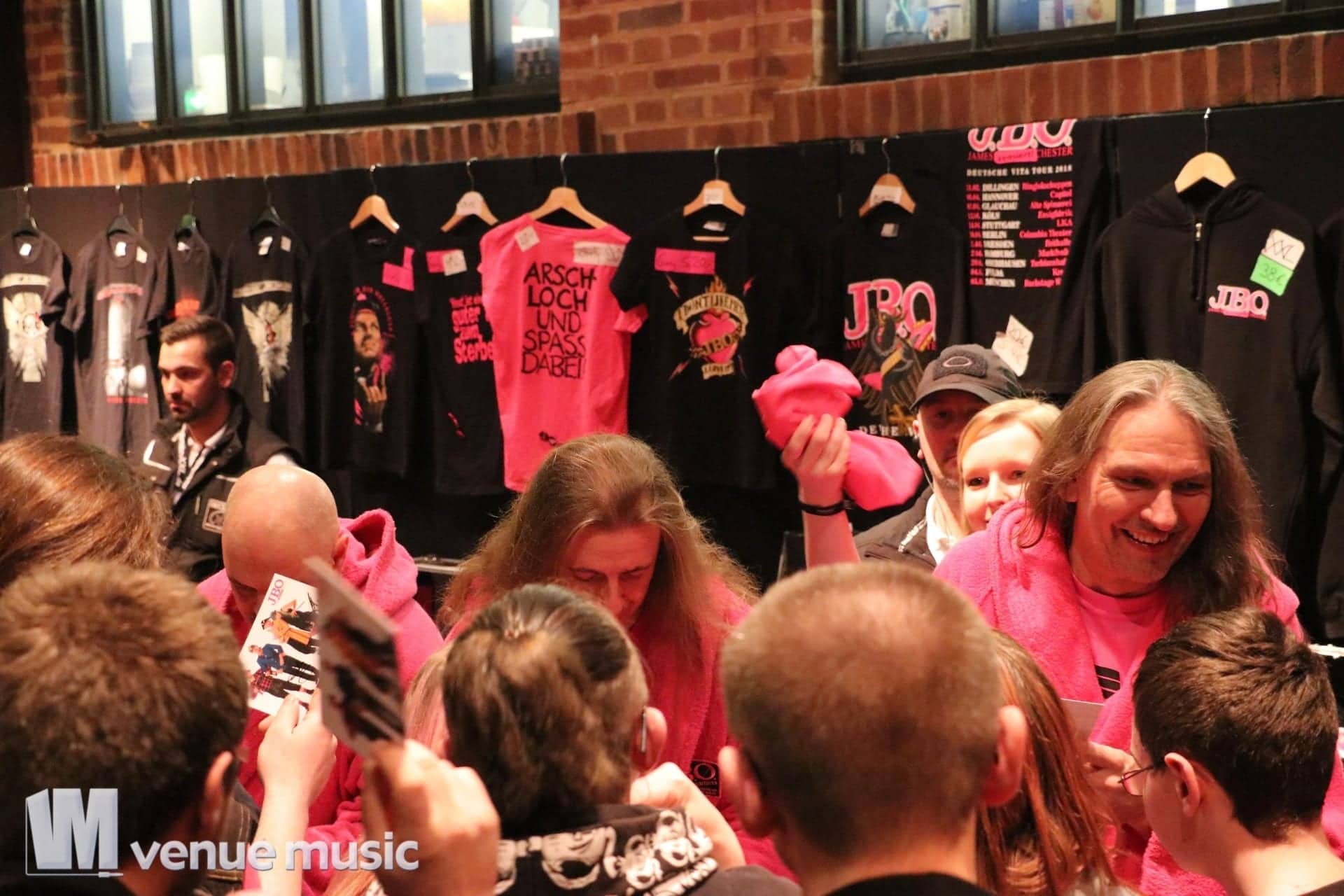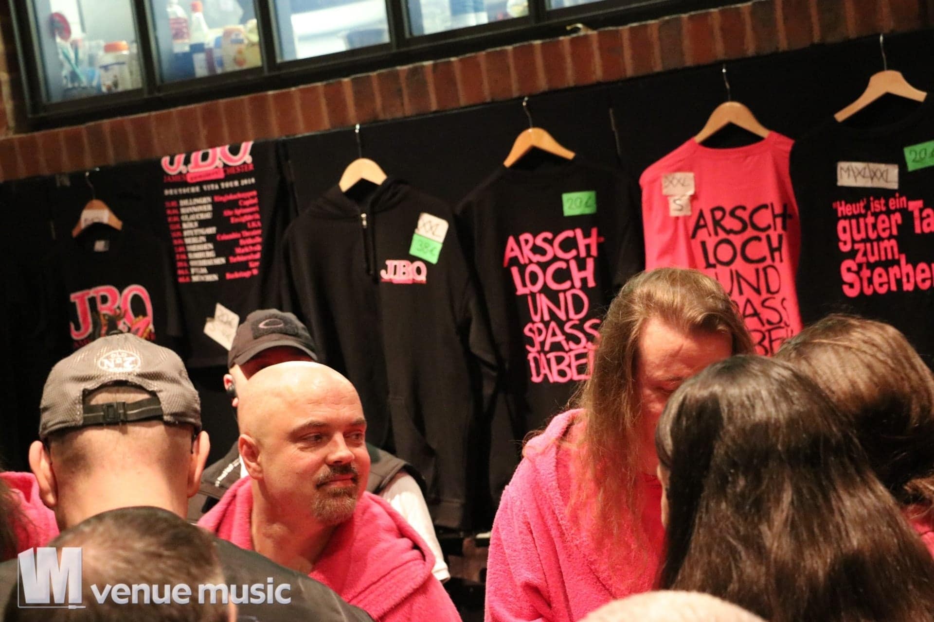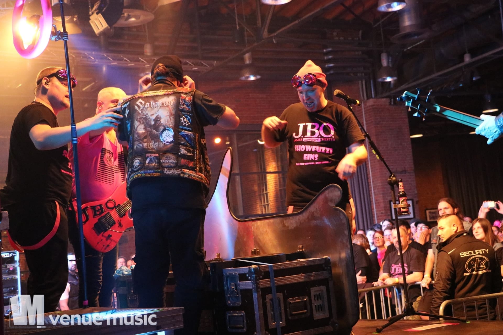 31.03.2018: „Deutsche Vita“-Tourauftakt von J.B.O. im Dillinger Lokschuppen. Ein Tag davor erschien das gleichnamige Album und die Veröffentlichung wurde in Dillingen natürlich anständig gefeiert. Neben Klassikern wie „Bolle“, „Ich sag J.B.O.“, „Kuschelmetal“, „Ein Fest“ und „Frauen“ waren auch neue Songs auf der Setlist zu finden und natürlich durfte „Alles nur geklaut“ nicht fehlen. Ein klug gewählter Opener, denn schon gleich zu Beginn war das Publikum kaum noch zu halten. Da hatten aber auch AC Angry als Support schon gute Arbeit geleistet, denn als die Jungs fertig waren, war die Halle schon anständig aufgeheizt. Eine runde Show, bei der auch die Fan-Action nicht zu kurz kam, aber da will ich nicht zu viel verraten. J.B.O. und das Publikum waren in Topform und nach der Show gab es wie gewohnt Autogramme am Merch. Was will man mehr? Wer J.B.O. live sehen und sich selbst von der Party überzeugen will, der hat am 06.04.2018 in Hannover die nächste Gelegenheit dazu und die Tour geht natürlich noch wesentlich länger. Einfach Termine checken und hingehen – es lohnt sich!