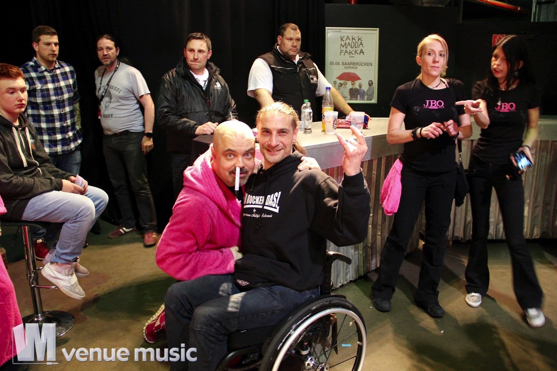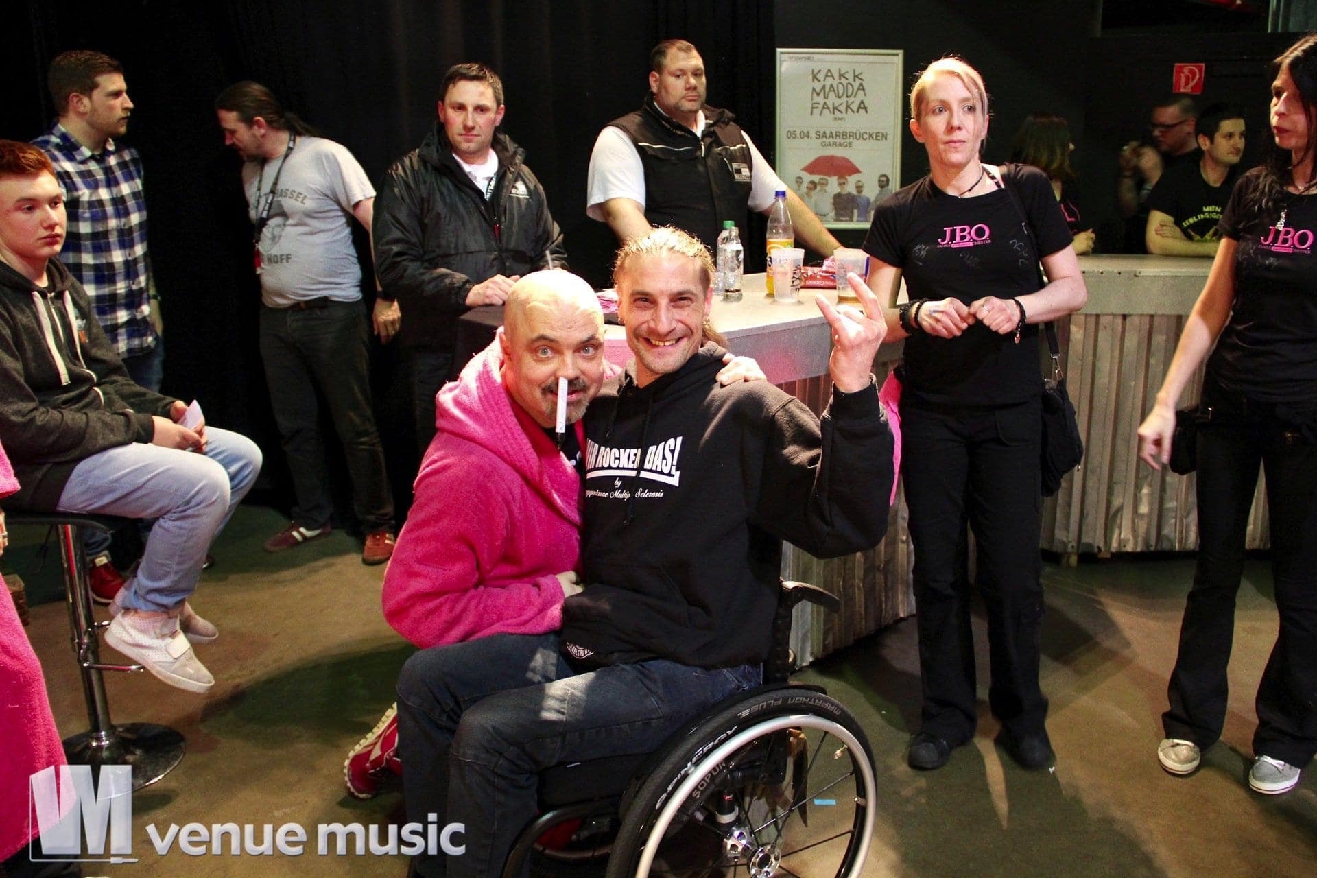 Das Finale des Osterwochenendes fand in Saarbrücken statt. Nachdem die Crew das Pech hatte, in Freiberg aufbrechen zu müssen bevor das Frühstücksbuffet im Hotel vollständig war, war ich ganz froh mit der Band etwas später fahren zu dürfen. Nach der Ankunft in Saarbrücken bin ich noch kurz heim gefahren, Wochenendgepäck abstellen, umziehen, Akkus laden und dann ab in die Garage. Was immer großartig ist hier: das Catering. Übrigens ganz ohne Maggi – so viel zum Vorurteil, dass es ohne Maggi im Saarland nicht ginge.
