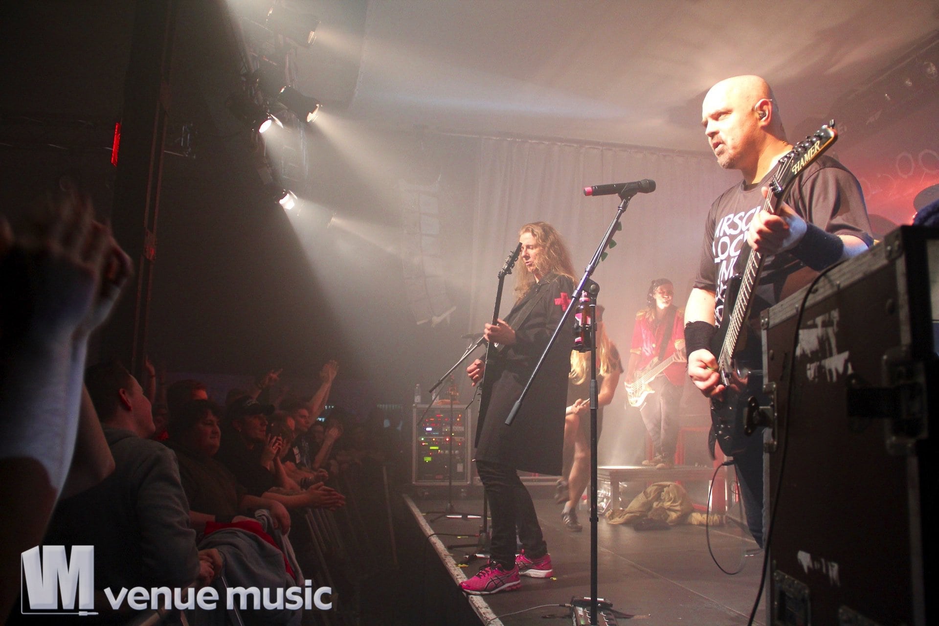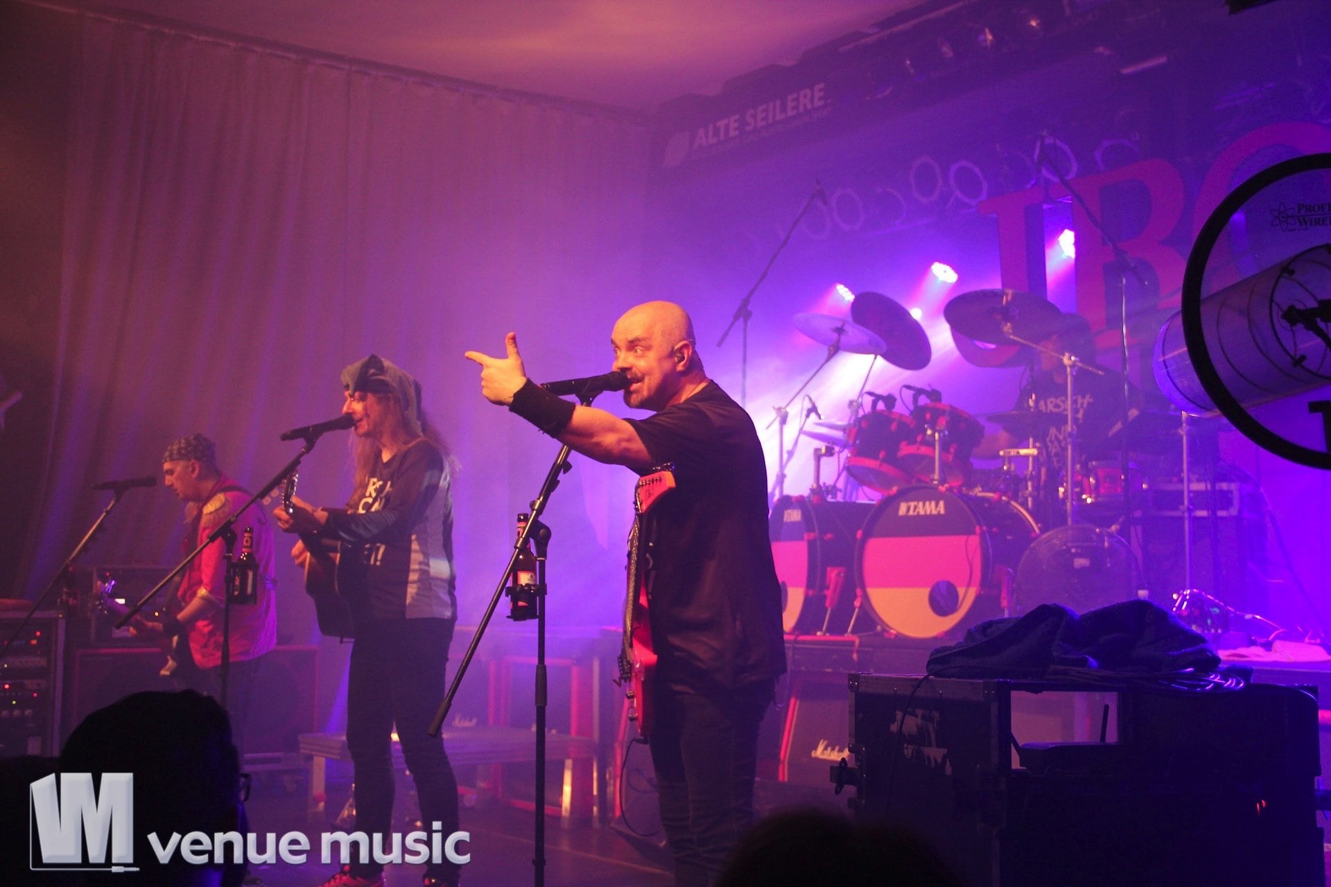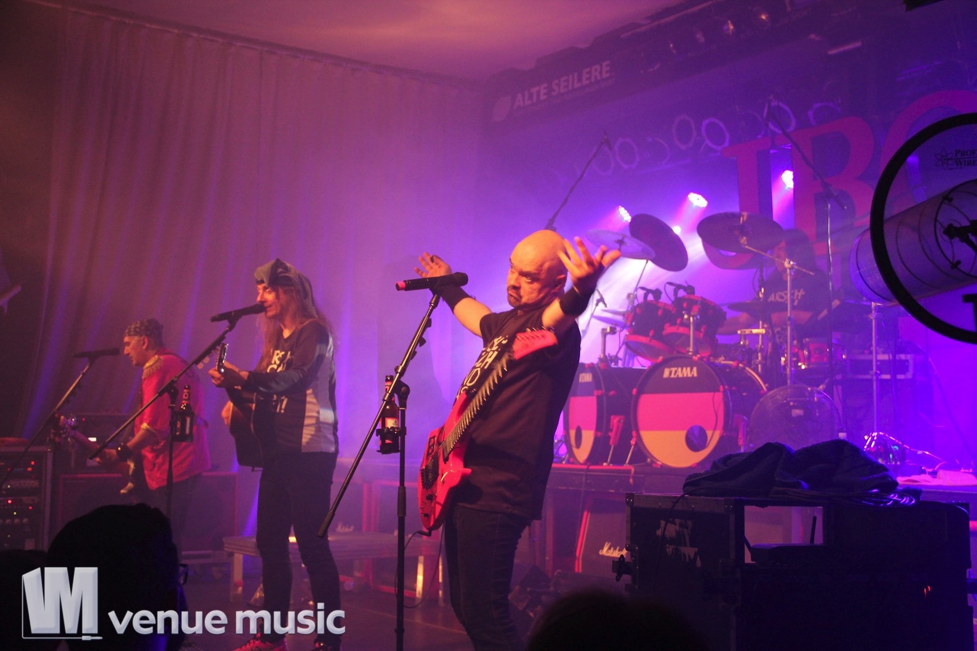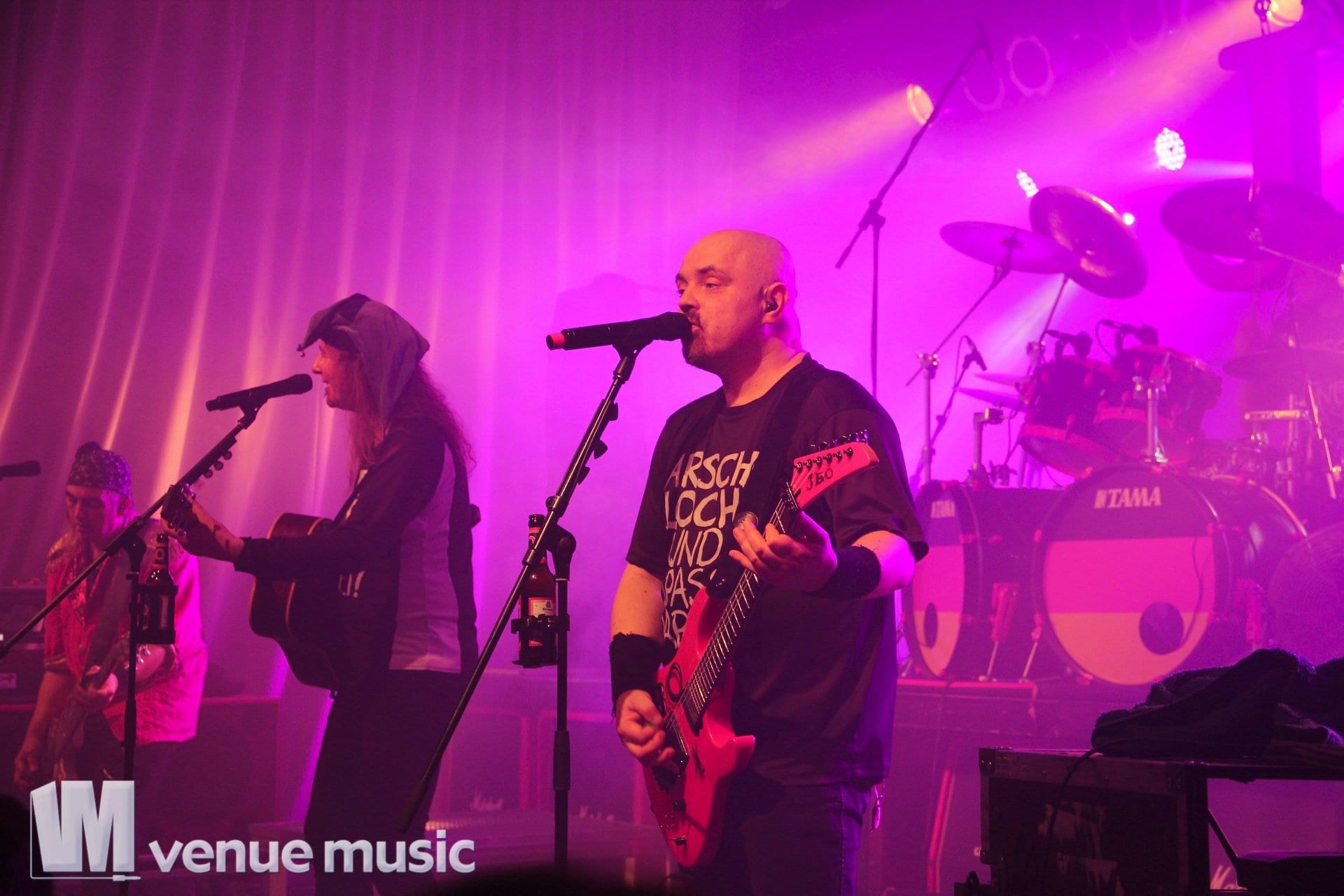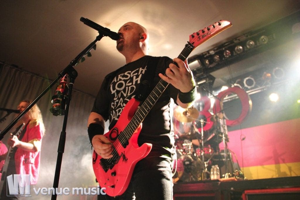 Das Konzert litt auch nicht unter dieser unfreiwilligen Zaubershoweinlage. Die Sicht war nach âGrimme Dope Joannaâ ein klein wenig getrĂźbt – die Nebelmaschinen waren offensichtlich stärker als die LĂźftung der Alten Seilerei. Das erschwerte ab diesem Zeitpunkt das Fotografieren – zumindest das Fotografieren von anderen Motiven als âSchatten im Nebelâ – ein wenig, tat der Stimmung im Publikum aber keinen Abbruch. Wirklich schade, dass die Explizite Lyrik Jubiläumstour inzwischen vorbei ist. NatĂźrlich kann man sich auf das neue Album und die kommenden Shows freuen und darauf hoffen, dass der ein oder andere Song vom alten ScheiĂ auch in Zukunft wieder auf der Setlist landet, aber das ganze Album am StĂźck⌠das war schon was besonderes.
