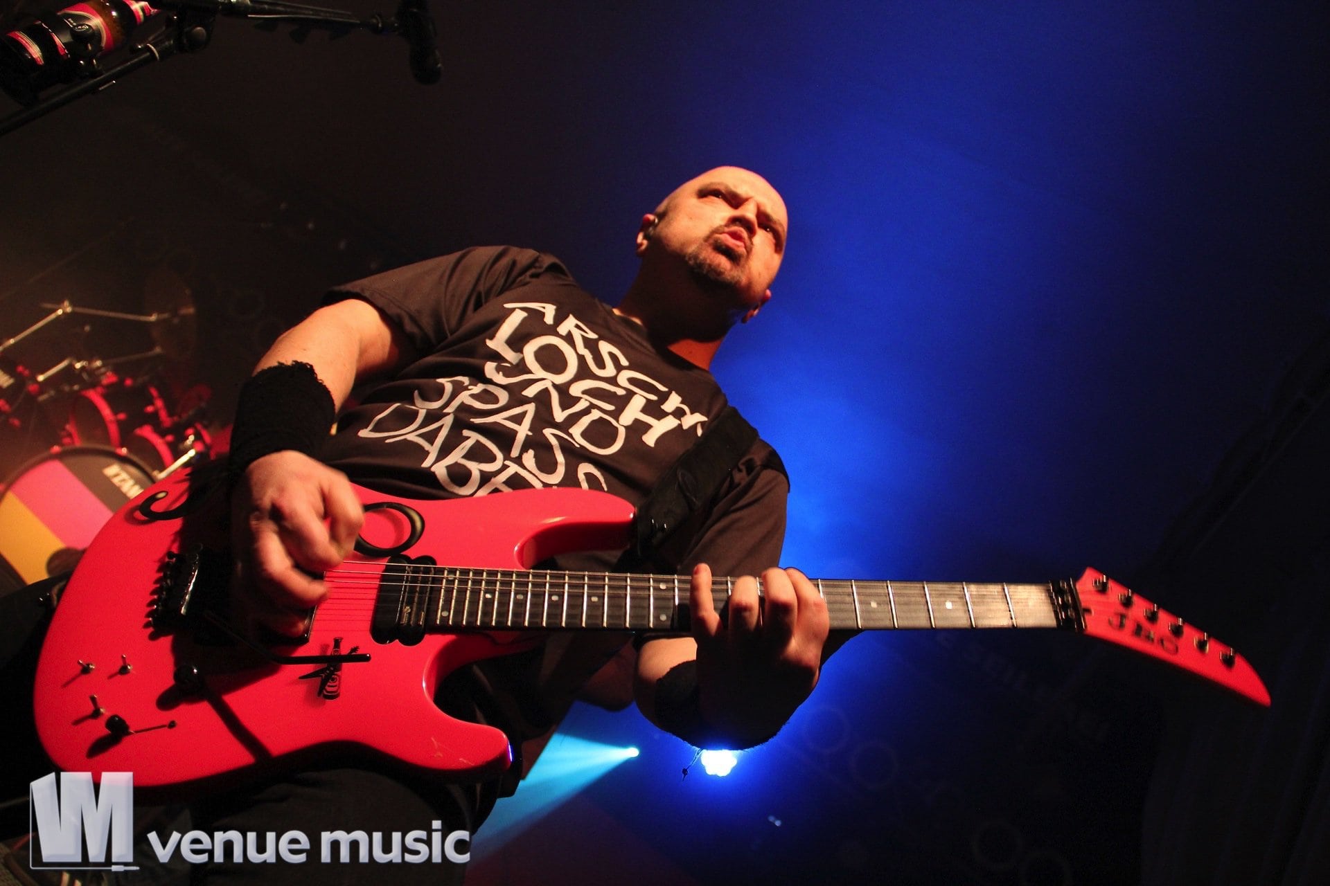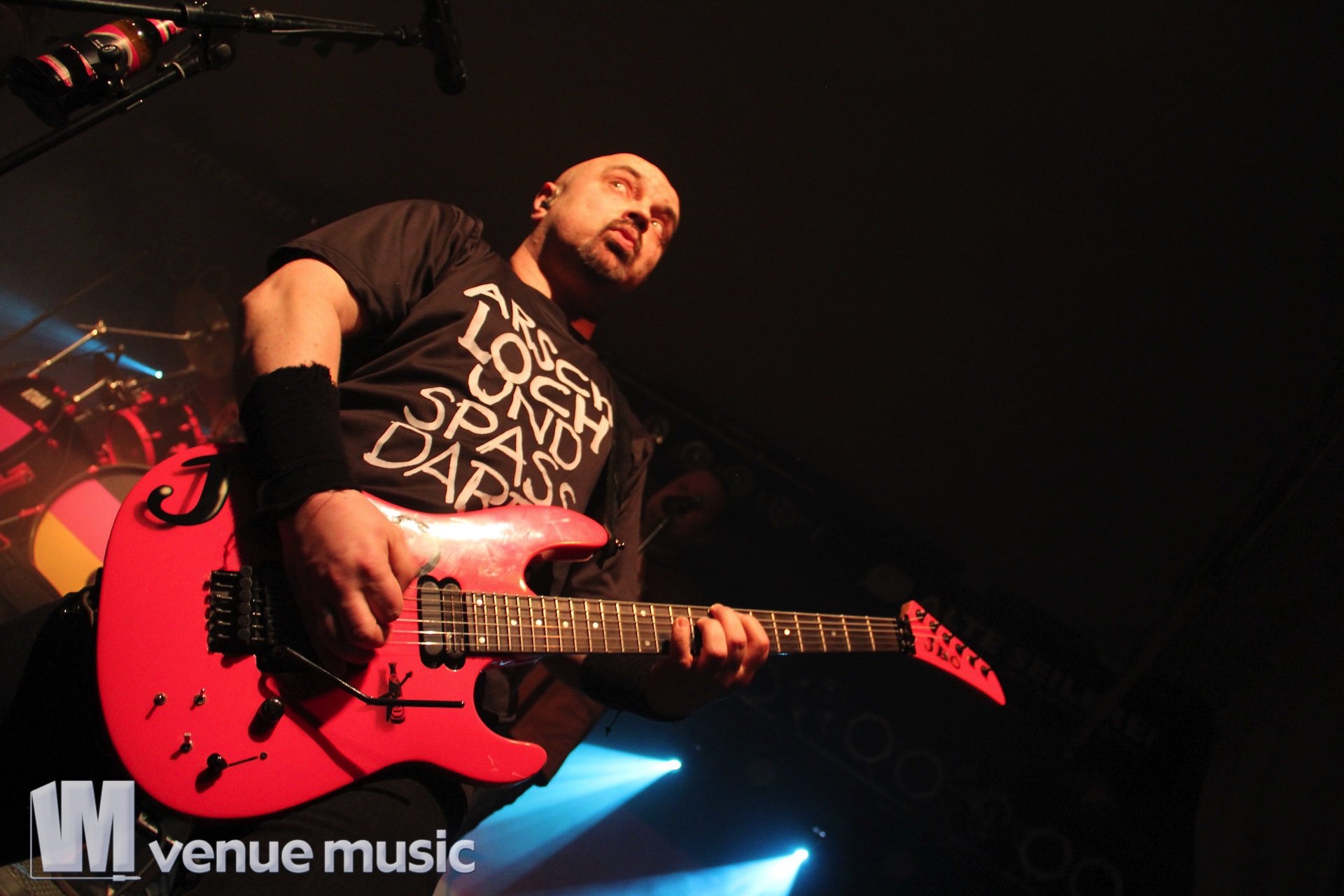 Bevor dann J.B.O. auf die Bühne kamen, hatten wir noch in kleines Meet’n’Greet Backstage: Michael Holtschulte – tot aber lustig! – kam vorbei und wir zelebrierten die offizielle Übergabe des Logos für das RAFT’16, das diesjährige Rosa Armee Fraktion Treffen in Erlangen im Juli.