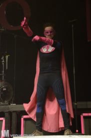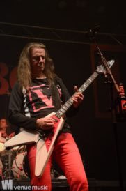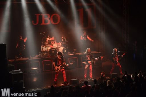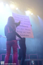 Den Abend eröffneten die Krieger in Schwarz-Rosa-Gold stilecht mit dem Glaubensbekenntnis – schließlich glauben wir alle an den Rock´n´Roll und waren zum rocken gekommen. Die alten Songs wie „Bolle“ oder „Im Verkehr“ sind immer noch Klassiker, doch auch die Titel vom neuen Album gehen auf der Bühne richtig gut ab. Wolfram hatte sich für sein Drum-Solo etwas besonderes ausgedacht, so kam er noch mit einem mobilen Schlagzeug auf dem Rücken mit auf die Bühne – und nicht nur er hatte dabei sichtlich Spaß. Ganz klassisch endete das Konzert mit dem riesen-J.B.O. und einem „Fest“.