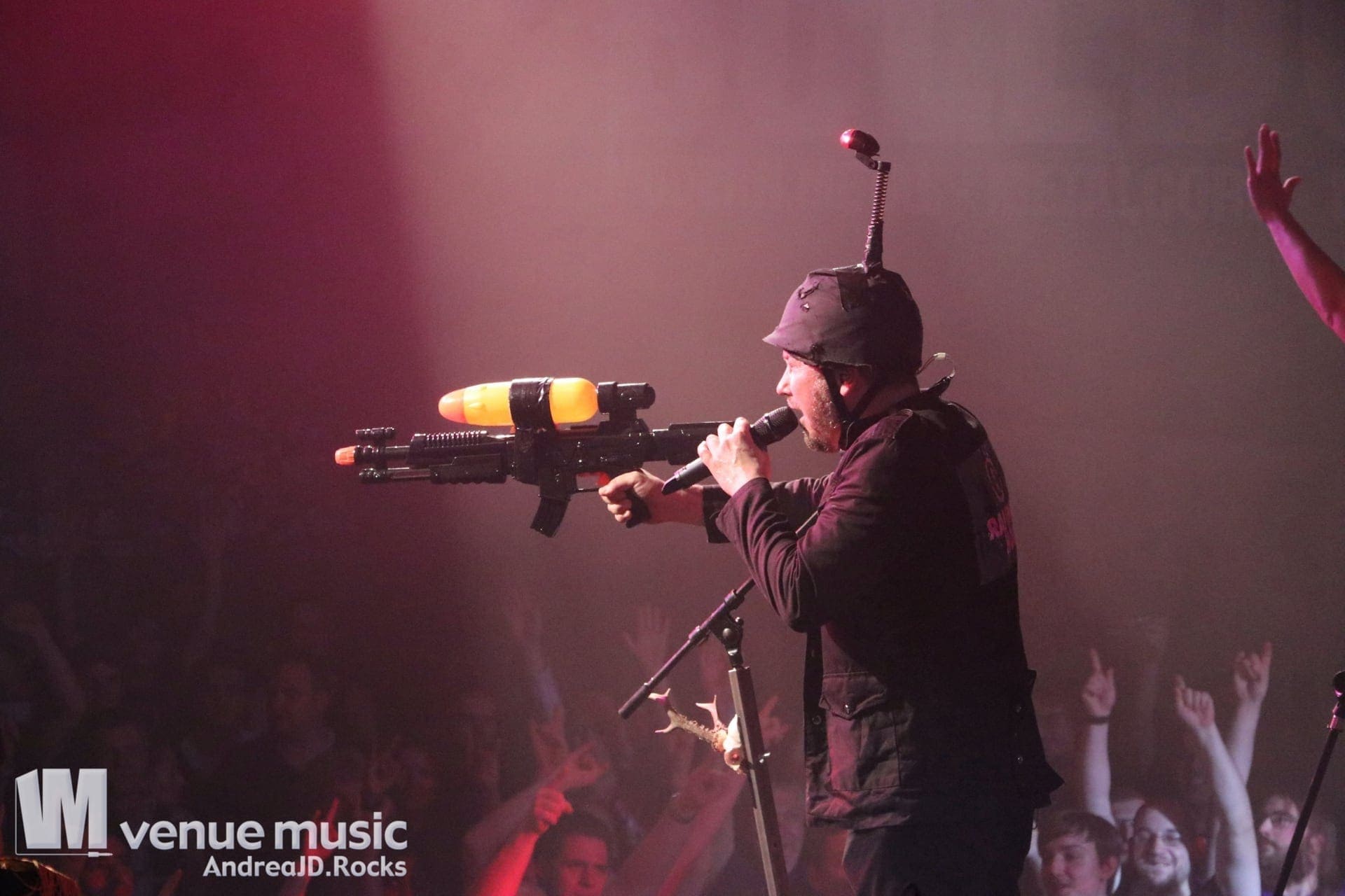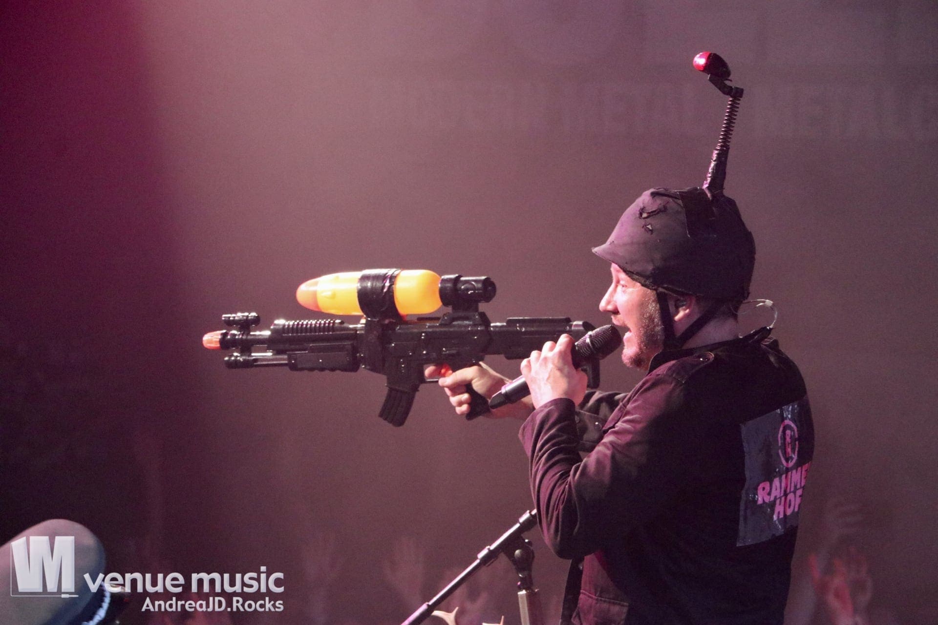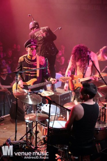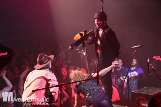 Rammelhof waren eine Vorband, deren Show für meinen Geschmack viel zu schnell zu Ende war. Aber nun sollte es ja recht schnell weitergehen mit J.B.O. und so gaben Rammelhof den rosa Fun-Metallern das Zepter in die Hand. Und die stiegen gleich mit der Knaller-Coverversion von „Alles nur geklaut“ ein. Das Publikum war schon fast am Kochen. Und das nach dem ersten Song! Von der neuen Platte „Deutsche Vita“ waren noch drei weitere Songs dabei: „Du hast Dein Smartphone vergessen“ (mit den Selfies der Showfuzzies), „Wer ist der Fahrer“ und „Ich will Spaß“. Der Rest war „Alter Scheiss“ und der wurde von den Fans mächtig abgefeiert. Was für eine Party! Fan-Gesänge, Jubel, eine tobende Halle…und am Ende gab es wie immer Autogramme am Merch. Bei J.B.O. weiss man, was einen erwartet: Fun, Party und einfach eine geile Zeit. Danke dafür!