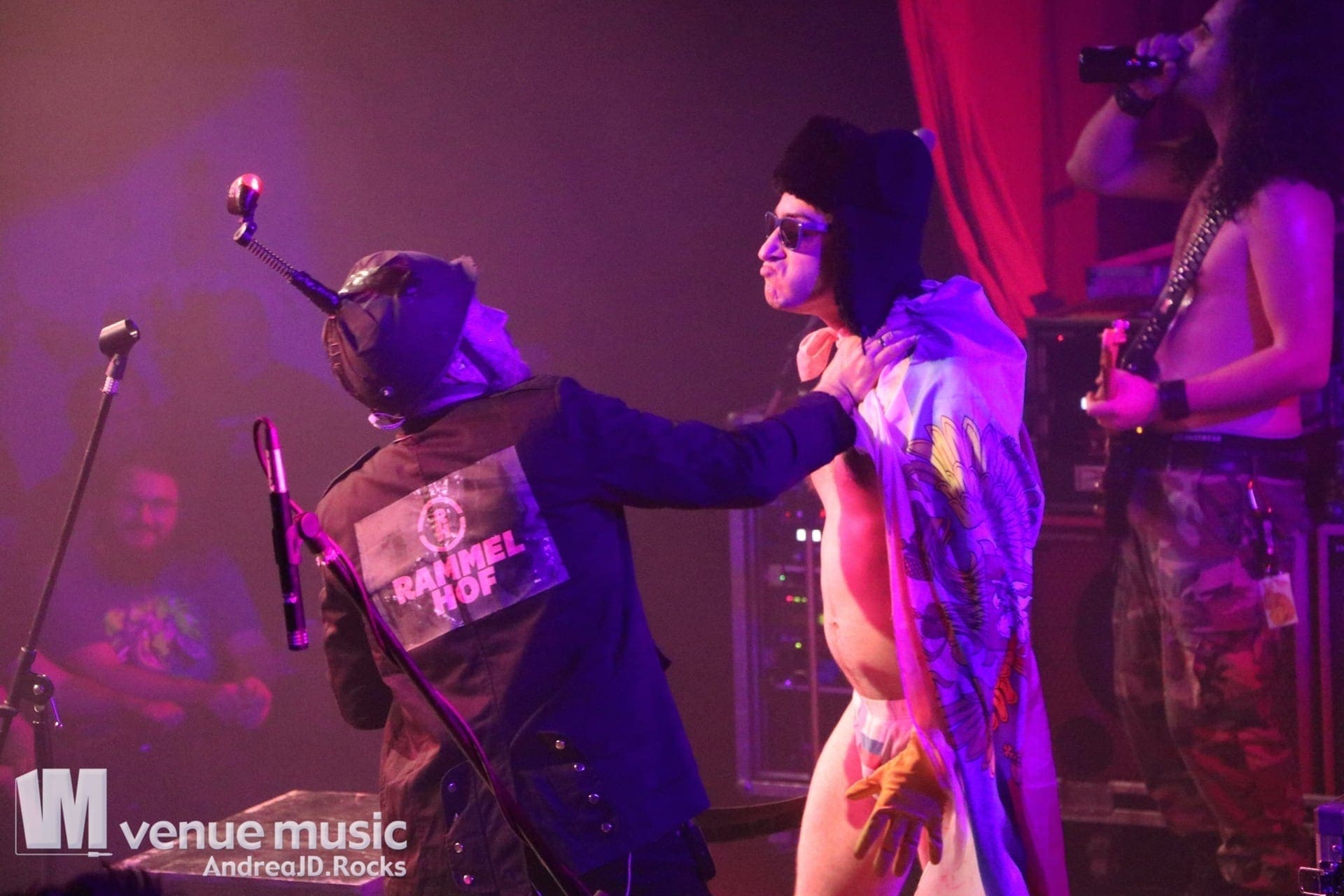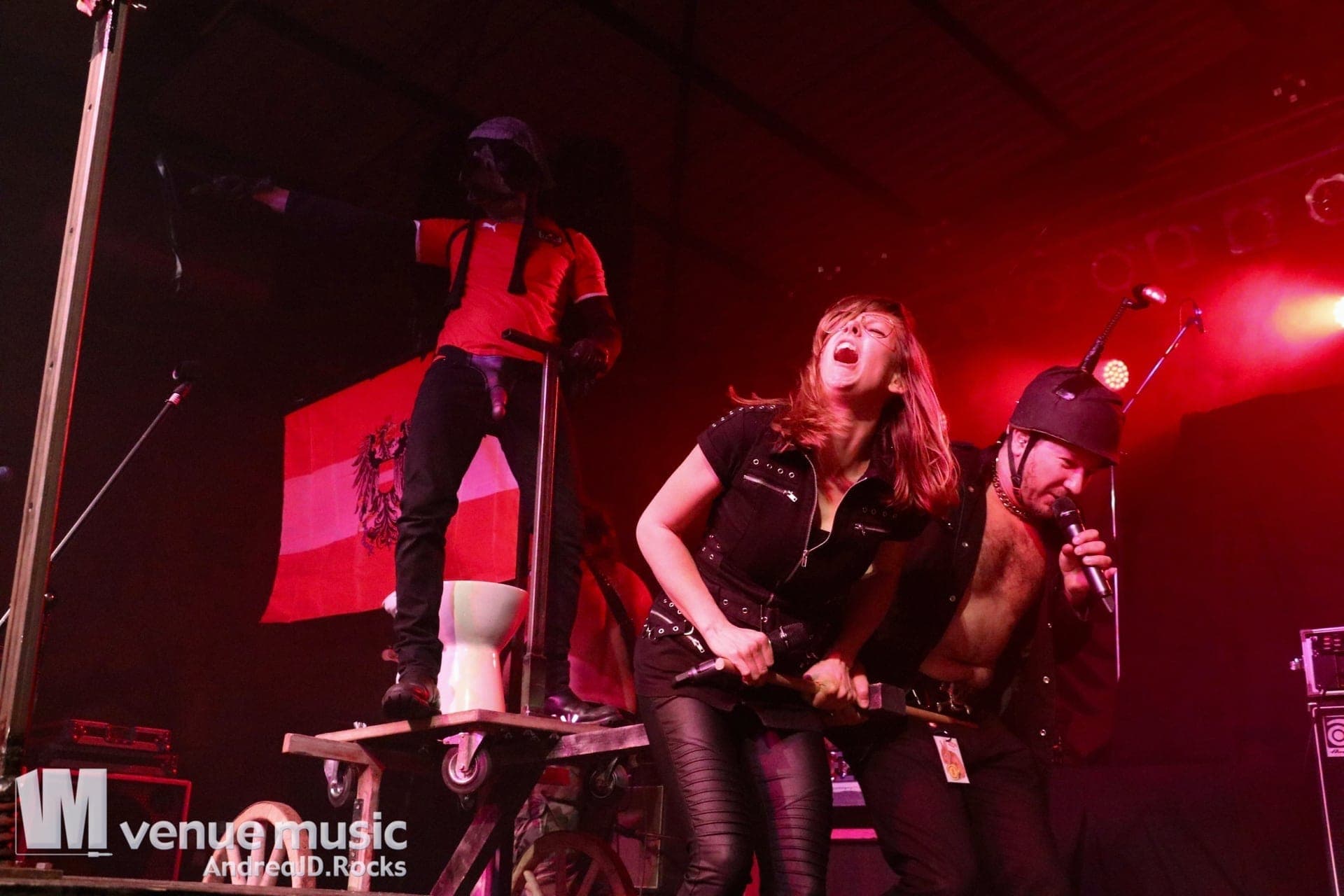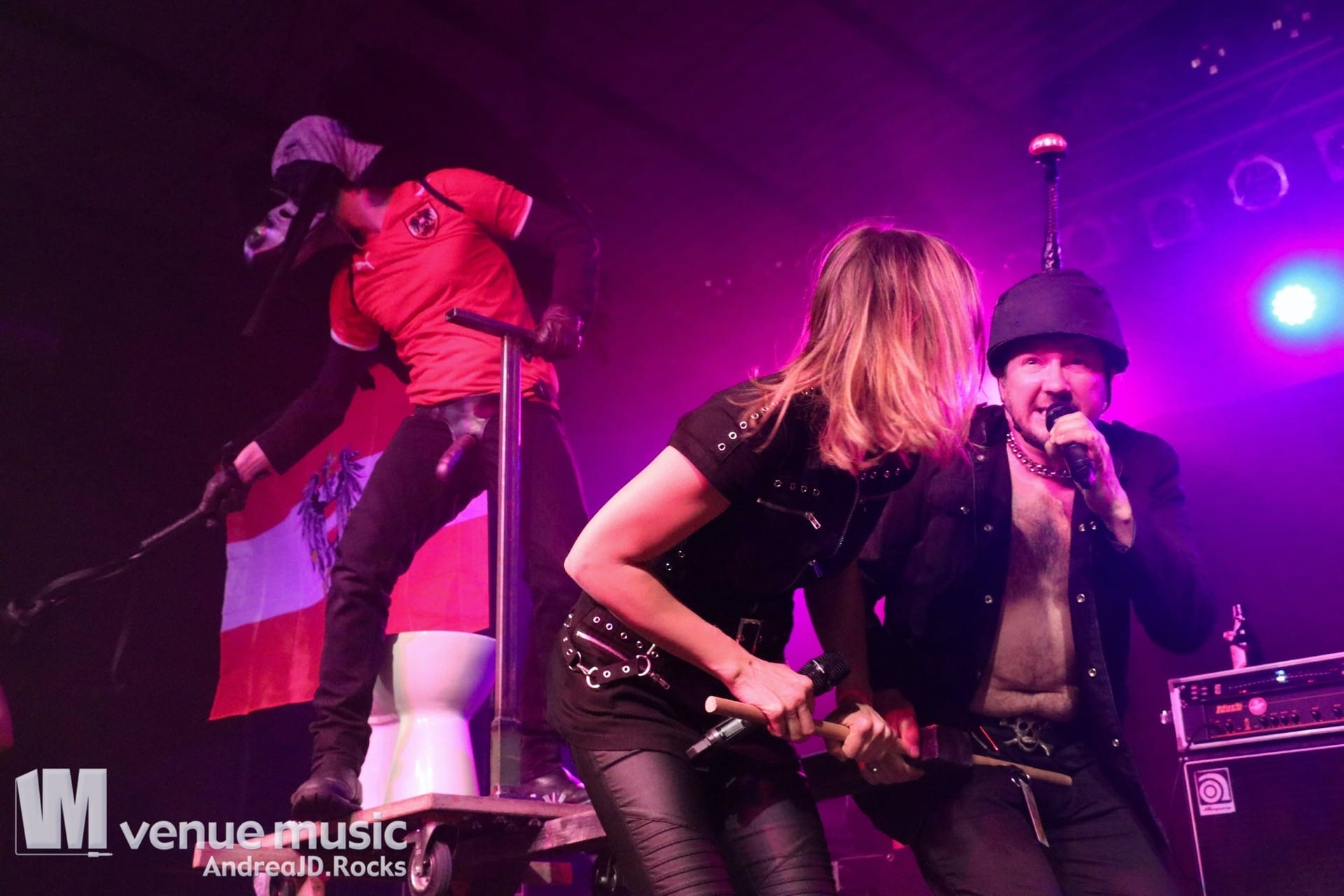 Und dann ging es auch schon los und war leider schneller vorbei, als man schauen konnte. Danach fragte man sich „Was zur Hölle war das denn?!“. Eine bunte Mischung aus Musik, Comedy, politischen Botschaften und WTF-Momenten – immer haarscharf an der Grenze des guten Geschmacks. Und das ist keine negative Kritik. Klar, man muss die Texte verstehen, um zu kapieren, was da oben auf der Bühne abgeht, aber Rammelhof lieferten eine Show ab, die sich gewaschen hatte. Songs wie „Digital“, „Hackln“ und „Wladimir Put Put Putin“ standen ebenso auf der Setlist wie „Fesche Ski“ und „Pumpgun“. Ich will nicht zu viel verraten, lasst Euch einfach überraschen, denn die Show lebt von Überraschungen.