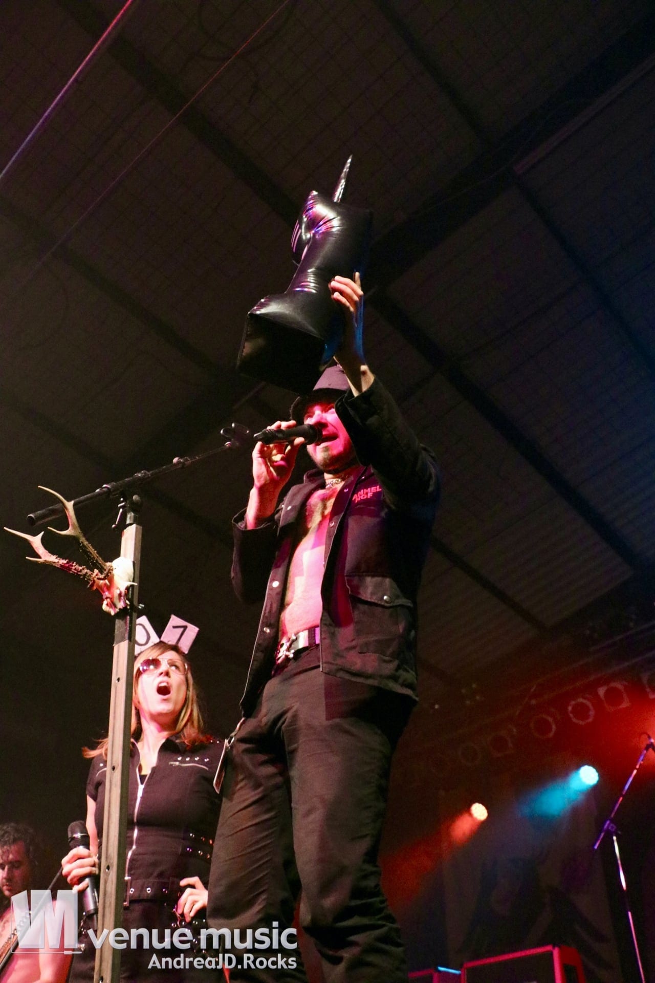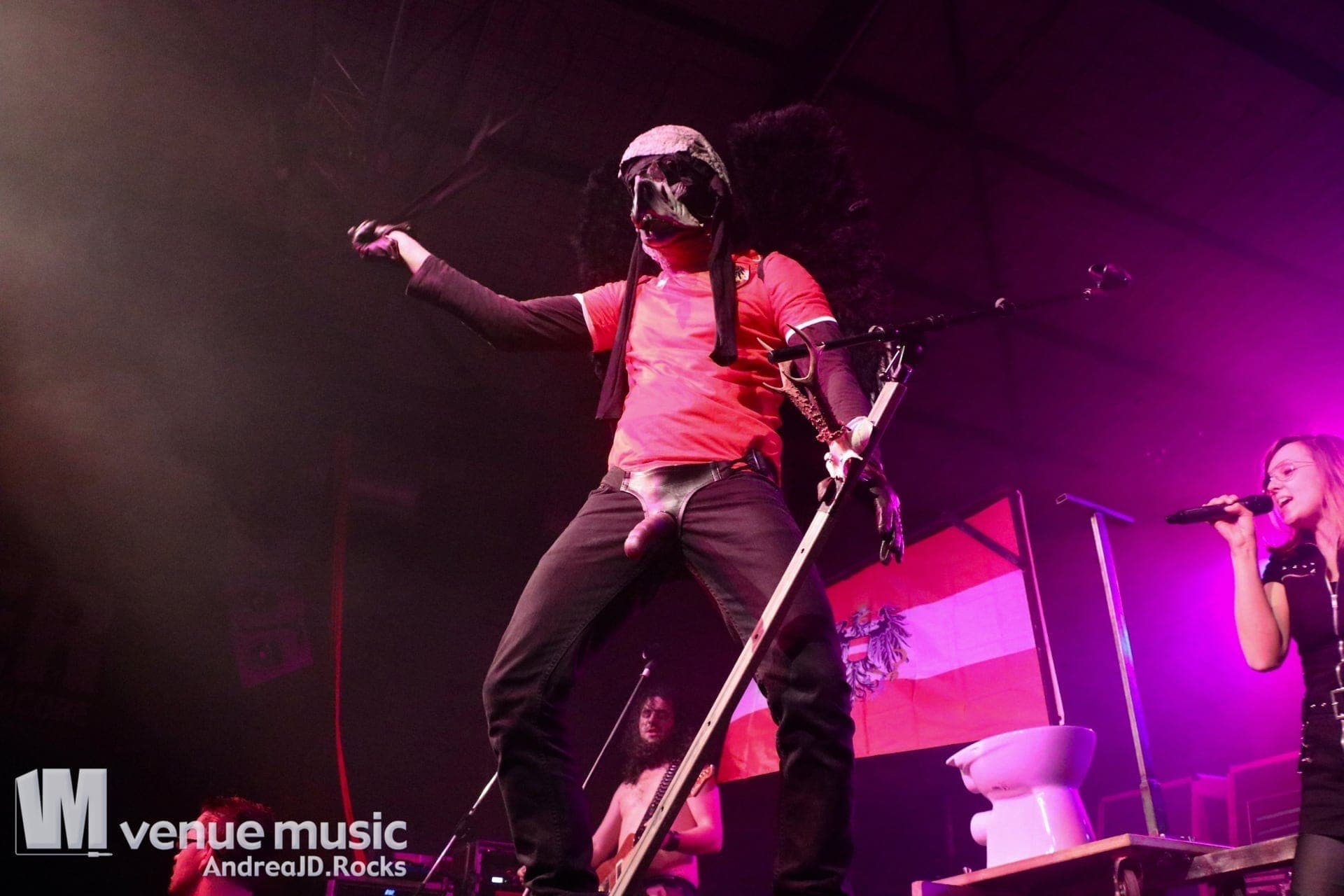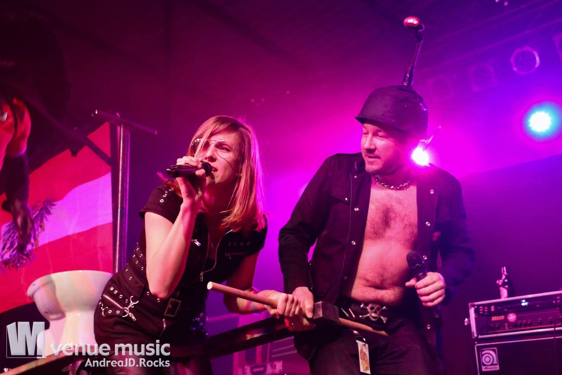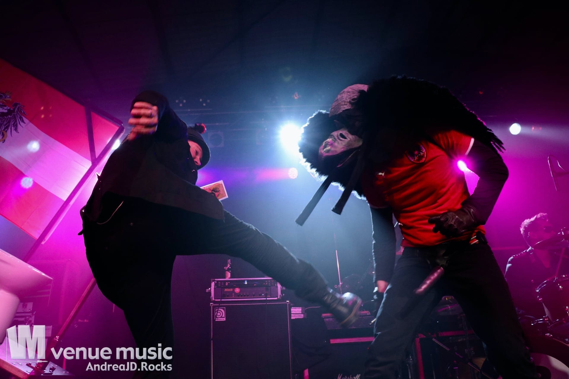 Und dann ging es auch schon los und war leider schneller vorbei, als man schauen konnte. Danach fragte man sich „Was zur Hölle war das denn?!“. Eine bunte Mischung aus Musik, Comedy, politischen Botschaften und WTF-Momenten – immer haarscharf an der Grenze des guten Geschmacks. Und das ist keine negative Kritik. Klar, man muss die Texte verstehen, um zu kapieren, was da oben auf der Bühne abgeht, aber Rammelhof lieferten eine Show ab, die sich gewaschen hatte. Songs wie „Digital“, „Hackln“ und „Wladimir Put Put Putin“ standen ebenso auf der Setlist wie „Fesche Ski“ und „Pumpgun“. Ich will nicht zu viel verraten, lasst Euch einfach überraschen, denn die Show lebt von Überraschungen.