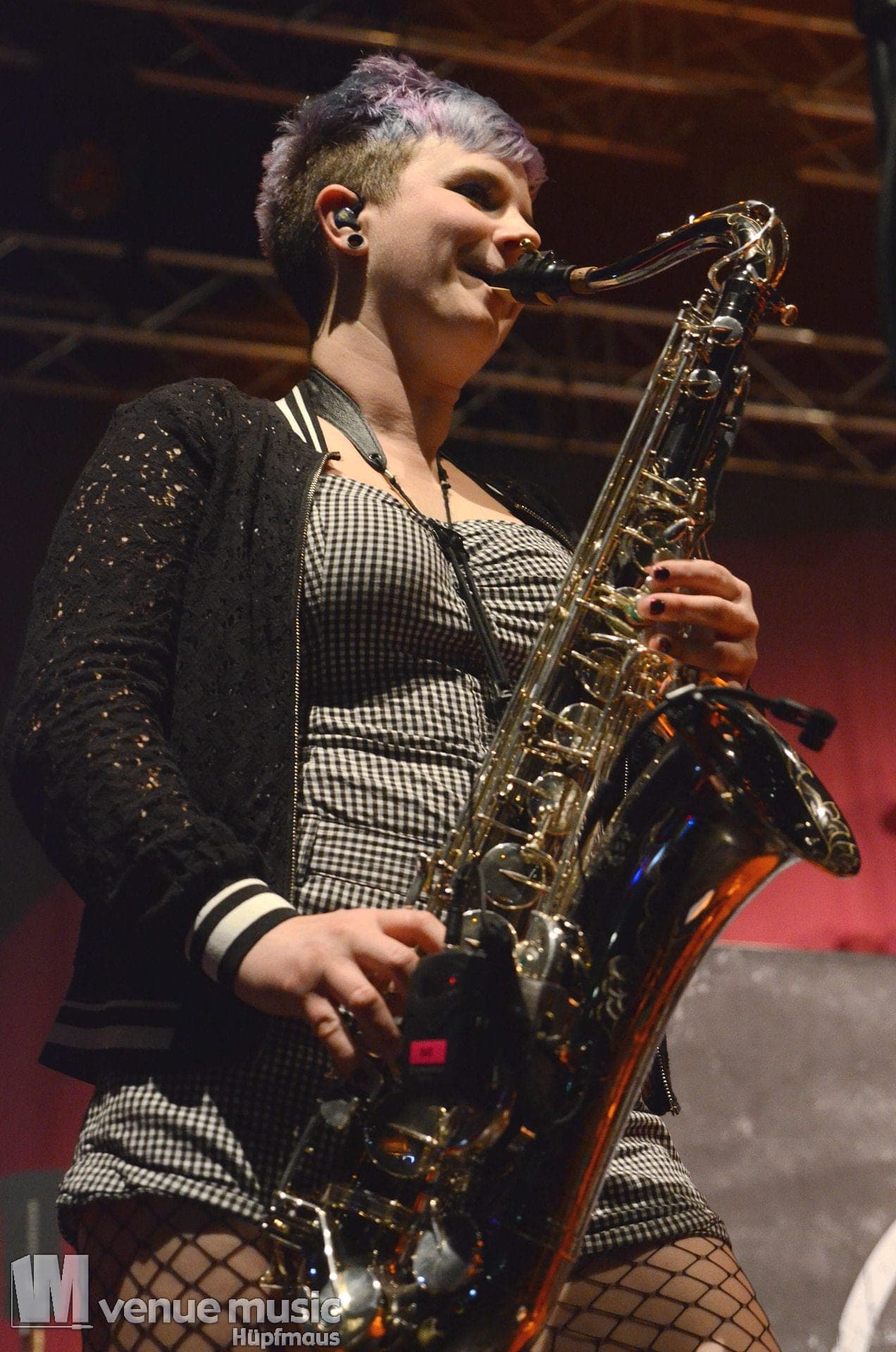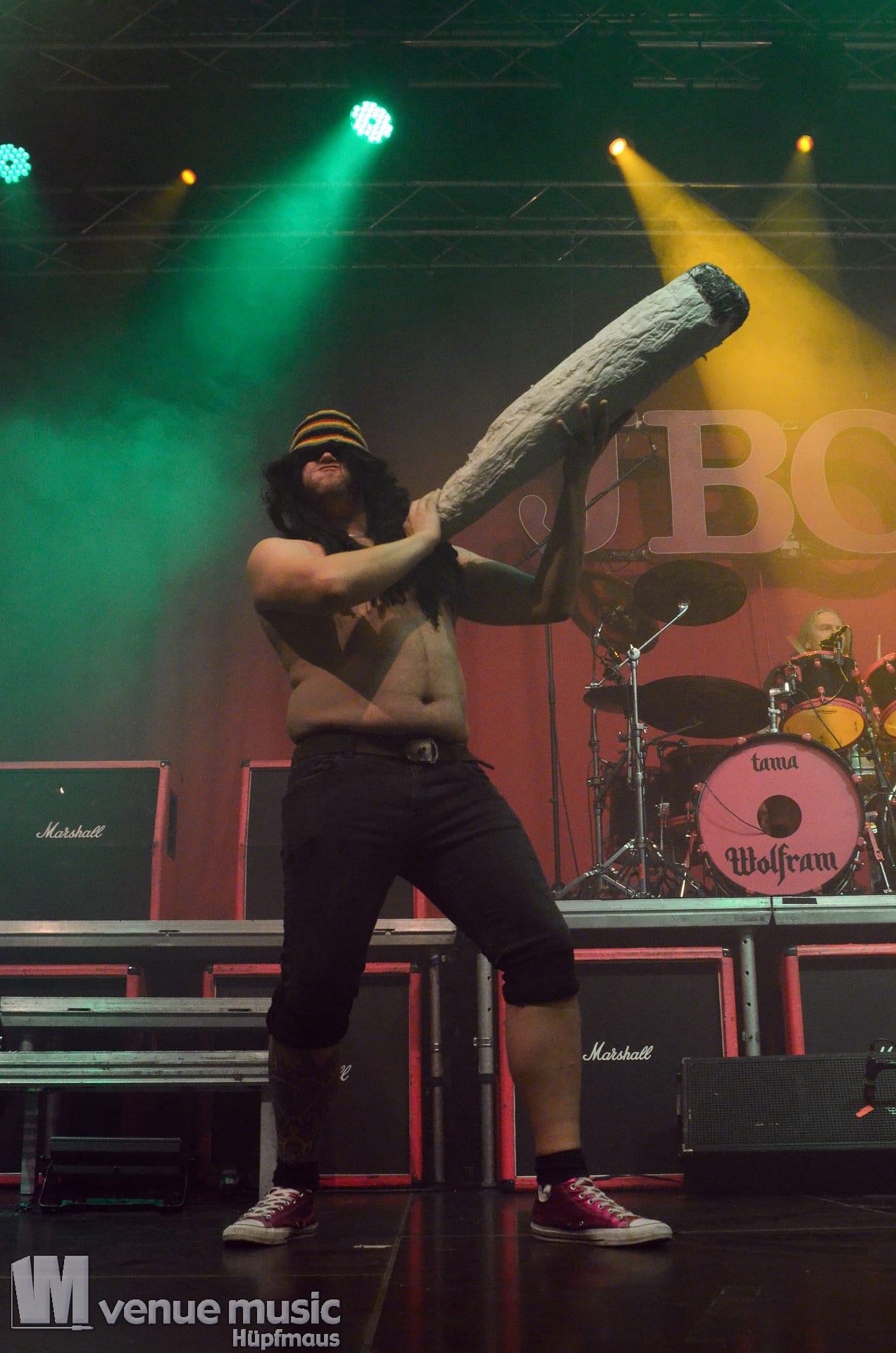 Kurz vor Weihnachten hieß es „Lasst die Sau raus!“, denn J.B.O.: waren auf Sau-Tour mit ihrem neuen Album „Wer lässt die Sau raus?!“ und dem Sausi im Gepäck. Mit als Support dabei waren „Die Grüne Welle“ aus Ludwigsburg, deren Stil man gar nicht so ganz genau beschreiben kann. Eine Mischung aus Punk, Ska, Reggae gemischt mit Rap. Am besten einfach mal selber reinhören ;) Auf jeden Fall eine frische und freche Mischung, die auf der Bühne richtig Spaß macht. Meins sind zwar die Rap-Elemente nicht, aber der bunte Mix macht es hier aus. Die Texte sind durchaus sozialkritisch und politisch, wie sich das für eine Punk-Band gehört. Im Publikum ging auch schon ordenlich die Post ab, es gab Moshpit und viel Spaß. Dass man Bier aber vielleicht doch lieber trinken sollte als es mit ins Moshpit zu nehmen, das sahen einige irgendwie anders – und so wurde es durchaus immer mal feucht vorne ;) Das Publikum war also bestens aufgewärmt für J.B.O.