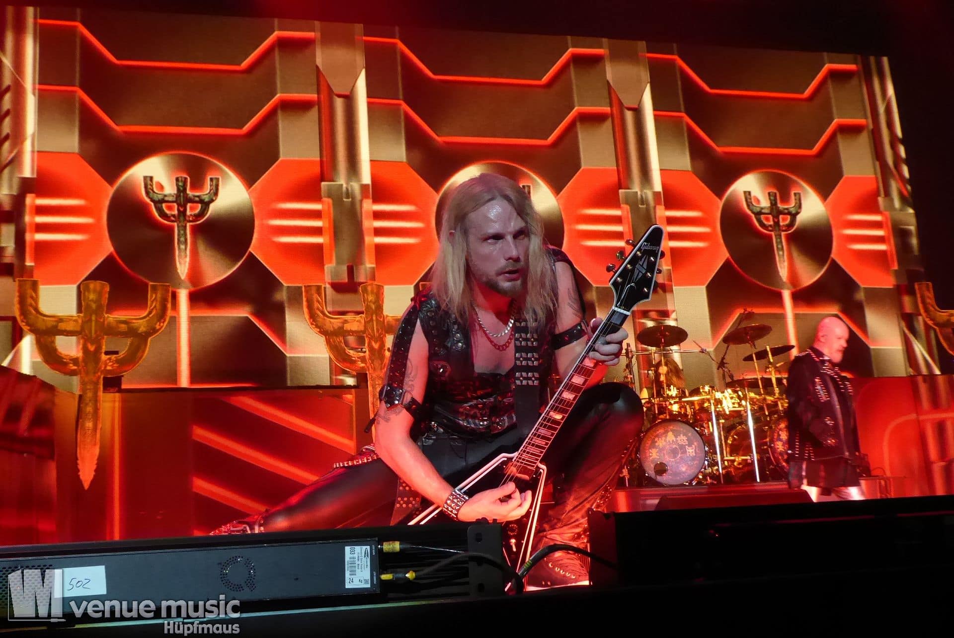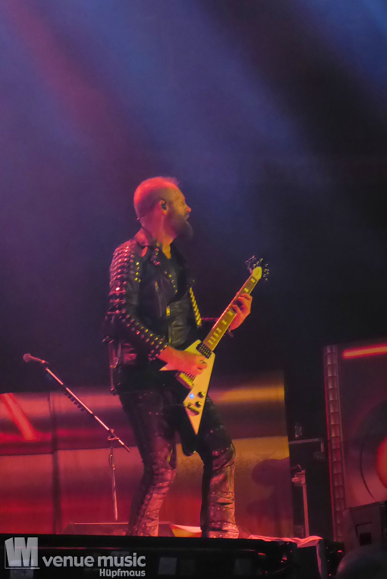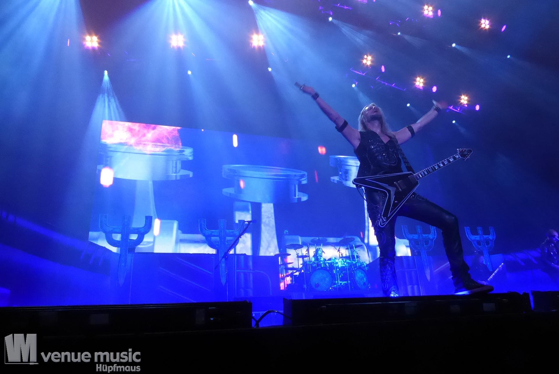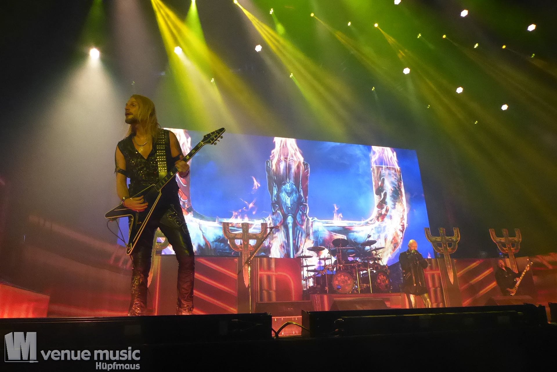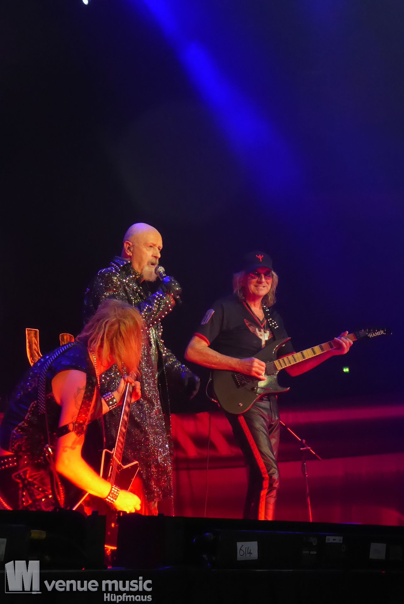 Die Bühnenshow war klasse, klaro, dass auch ein Motorrad mit dabei sein musste. Allerdings hatte man das Gefühl, dass Rob Halford nicht alle Texte gleichermaßen gut auf dem Schirm hatte und in der Bühnenmitte ein Monitor stand, von dessen Seite er vor allem bei den ganz bekannten Klassikern wich. Denn da kam er auch schon mal zum vorderen Rand der Bühne. Aber was solls, das tat der Stimmung keinen Abbruch und verzeihen wir im die – vermeintliche – Gedächtnisstütze. Die brauchen weitaus jüngere Musiker auch schon mal.