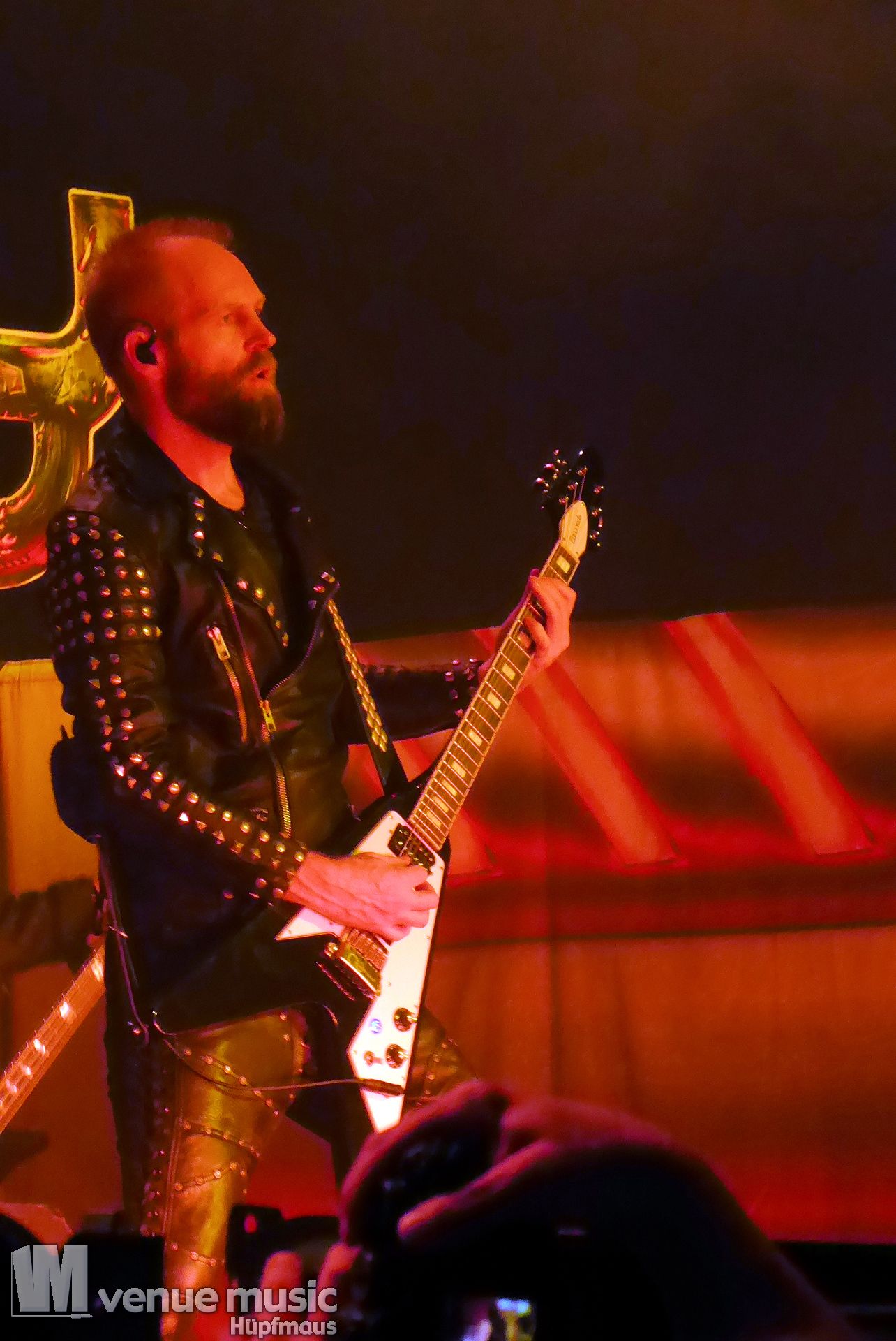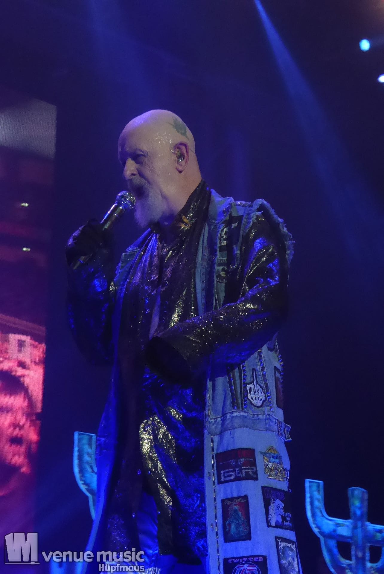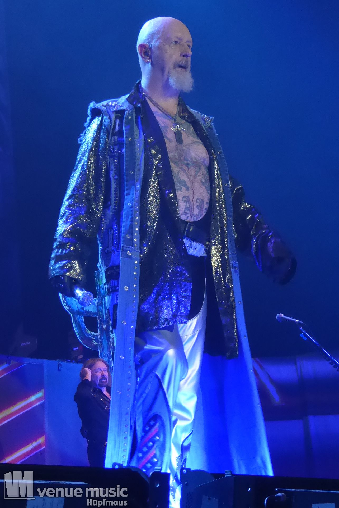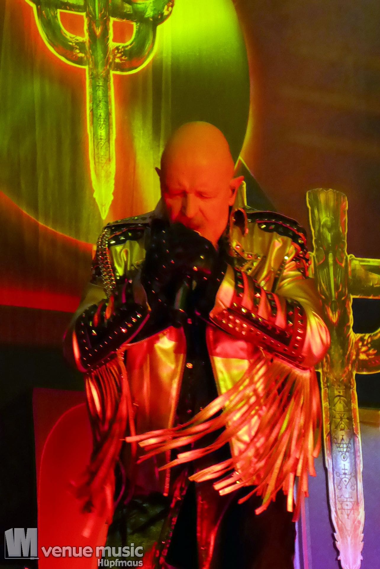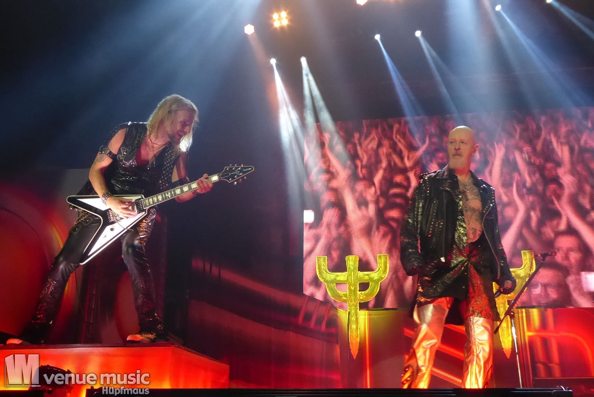 Die Bühnenshow war klasse, klaro, dass auch ein Motorrad mit dabei sein musste. Allerdings hatte man das Gefühl, dass Rob Halford nicht alle Texte gleichermaßen gut auf dem Schirm hatte und in der Bühnenmitte ein Monitor stand, von dessen Seite er vor allem bei den ganz bekannten Klassikern wich. Denn da kam er auch schon mal zum vorderen Rand der Bühne. Aber was solls, das tat der Stimmung keinen Abbruch und verzeihen wir im die – vermeintliche – Gedächtnisstütze. Die brauchen weitaus jüngere Musiker auch schon mal.