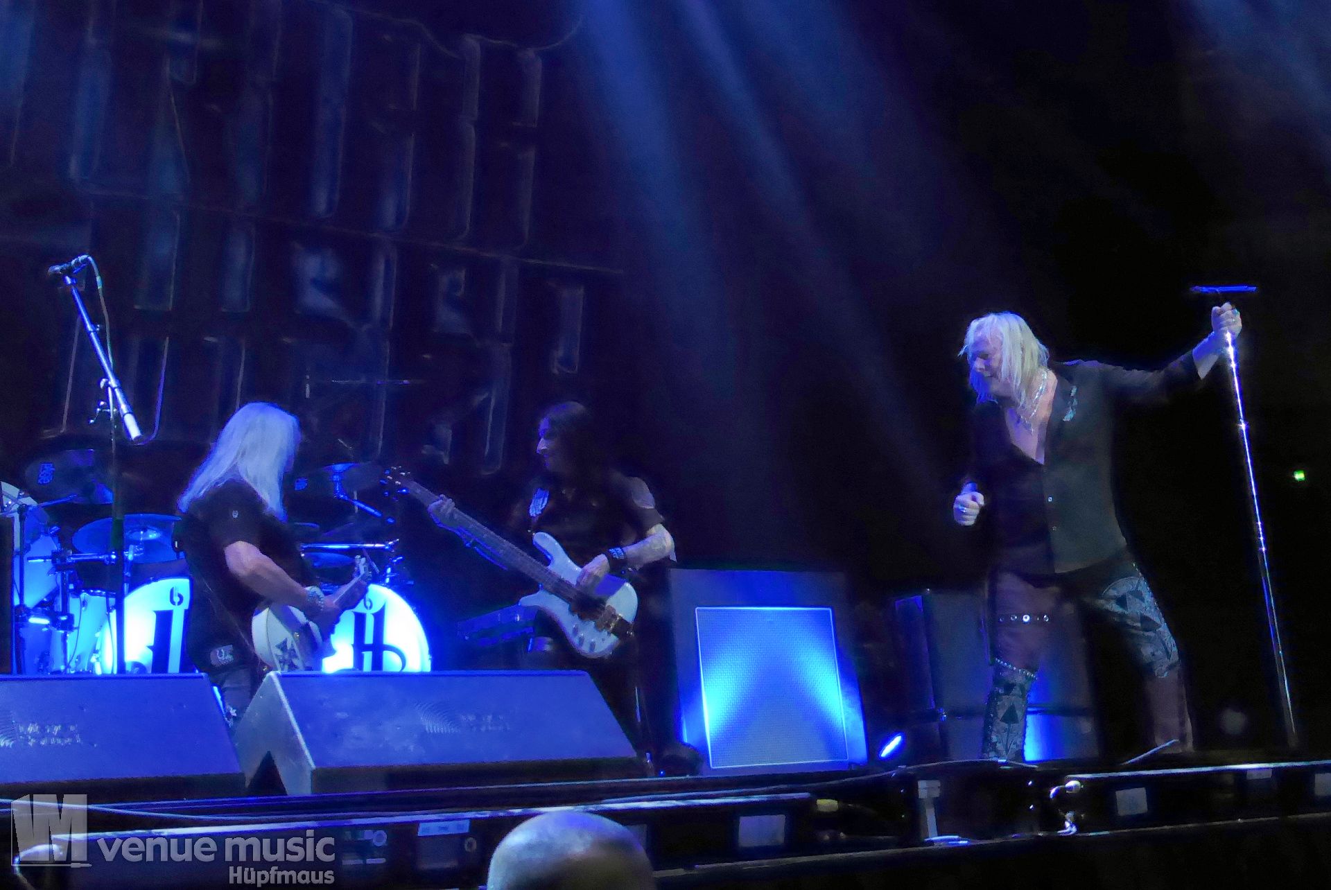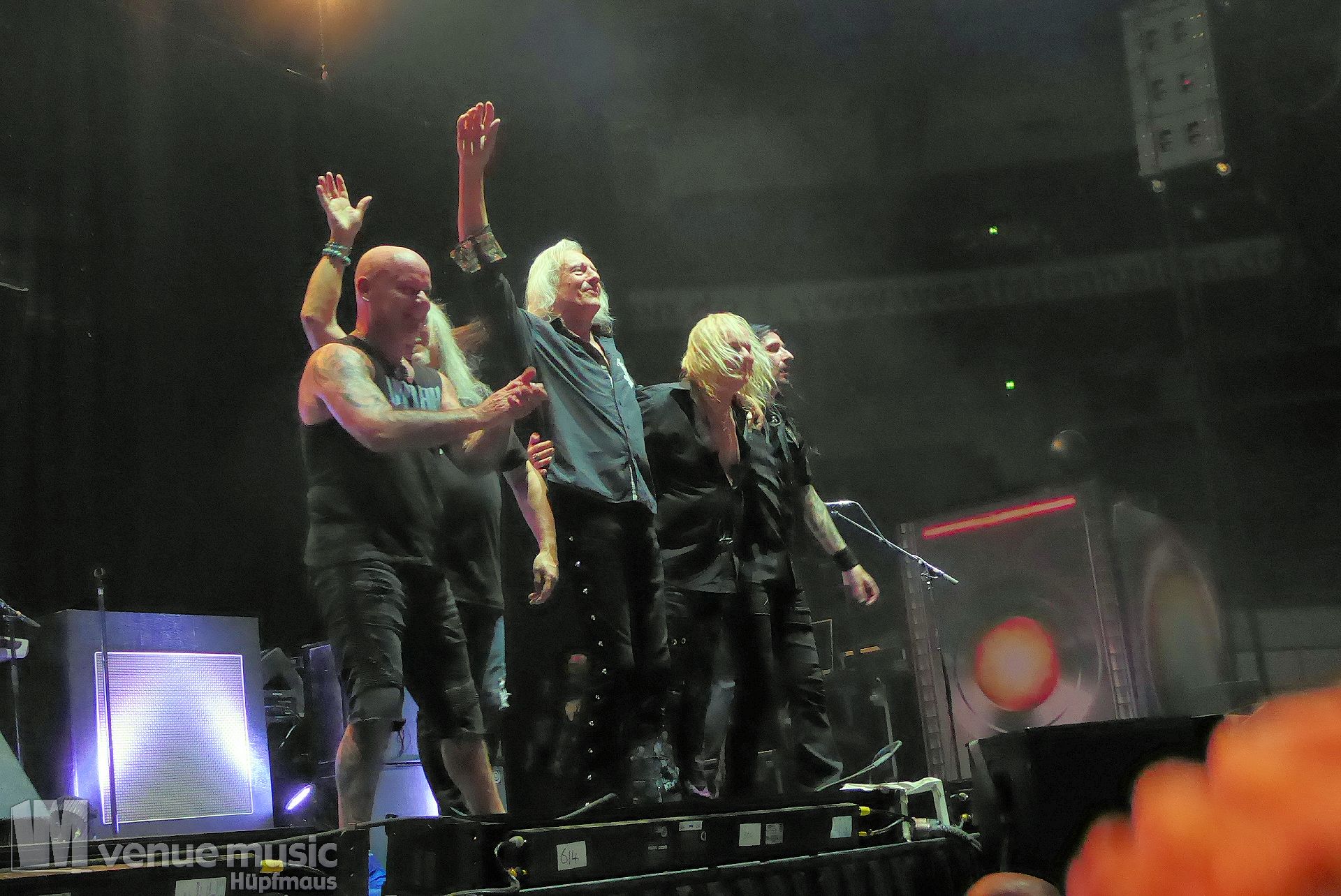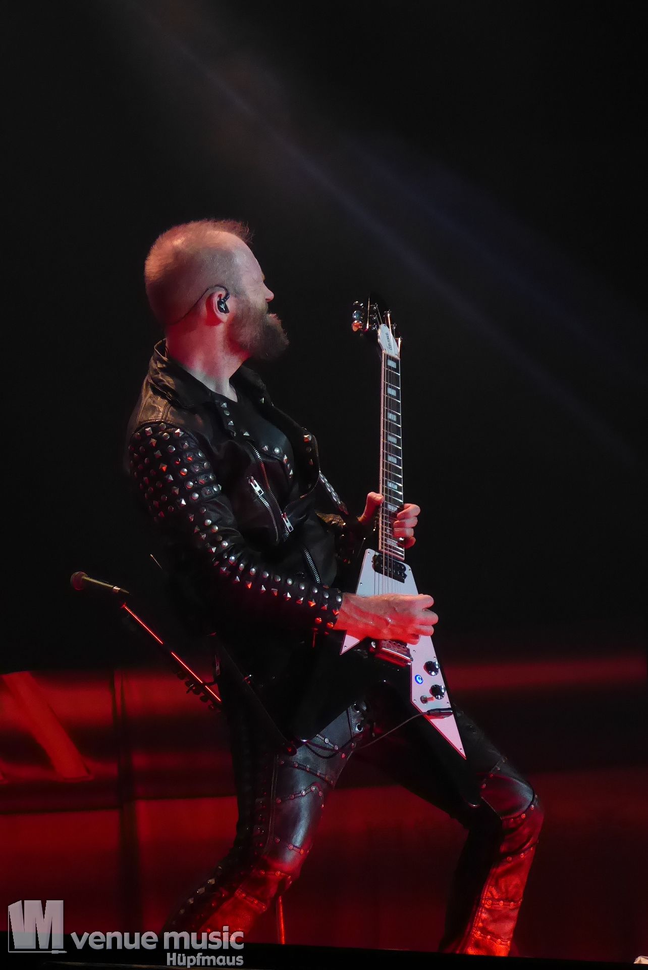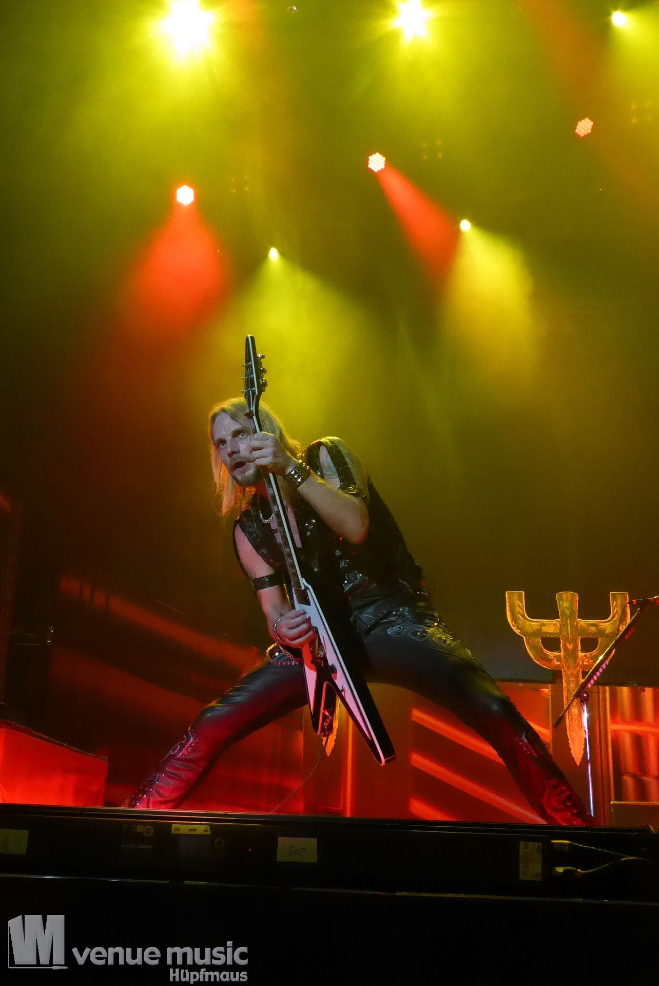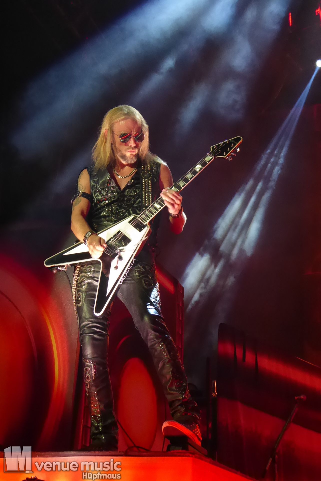 Die Bühnenshow war klasse, klaro, dass auch ein Motorrad mit dabei sein musste. Allerdings hatte man das Gefühl, dass Rob Halford nicht alle Texte gleichermaßen gut auf dem Schirm hatte und in der Bühnenmitte ein Monitor stand, von dessen Seite er vor allem bei den ganz bekannten Klassikern wich. Denn da kam er auch schon mal zum vorderen Rand der Bühne. Aber was solls, das tat der Stimmung keinen Abbruch und verzeihen wir im die – vermeintliche – Gedächtnisstütze. Die brauchen weitaus jüngere Musiker auch schon mal.