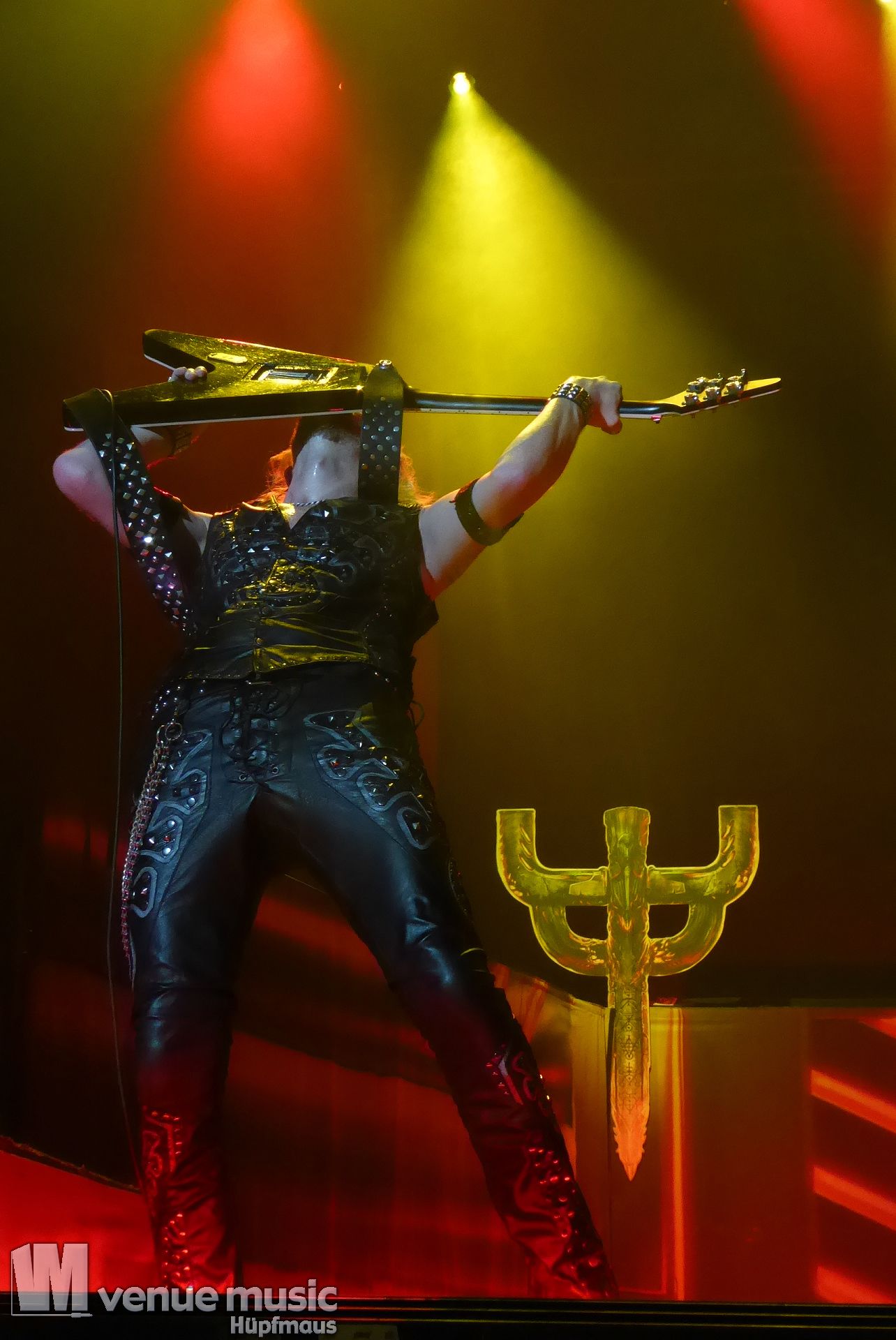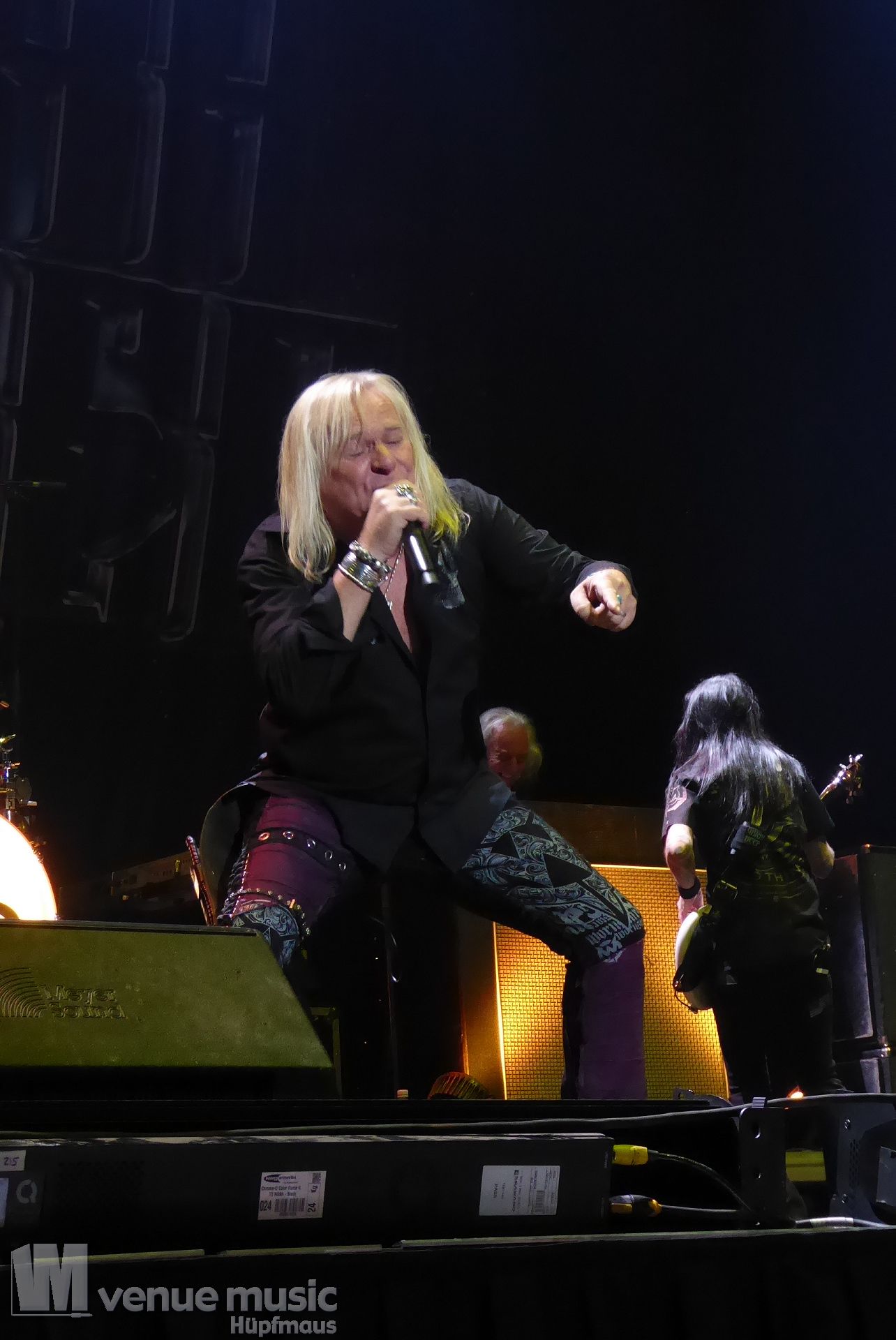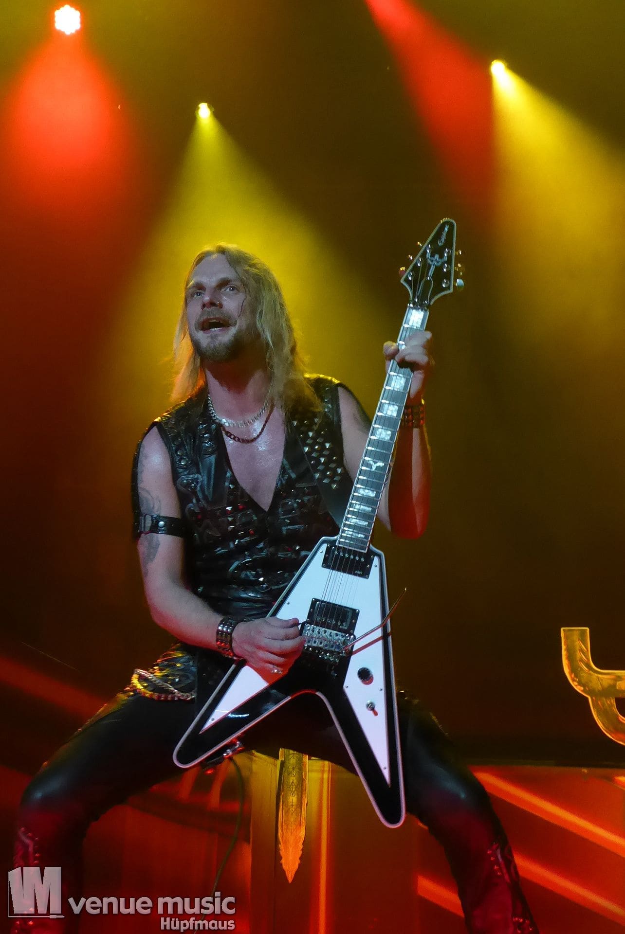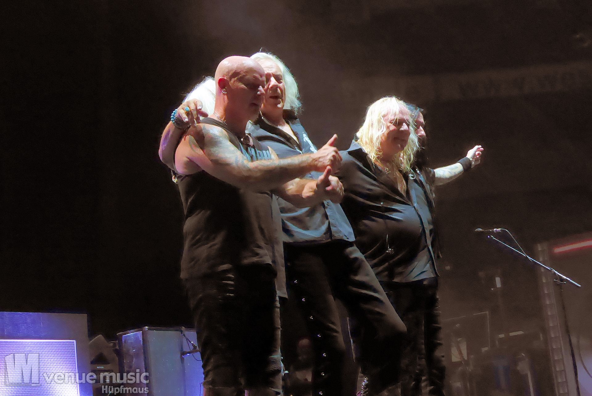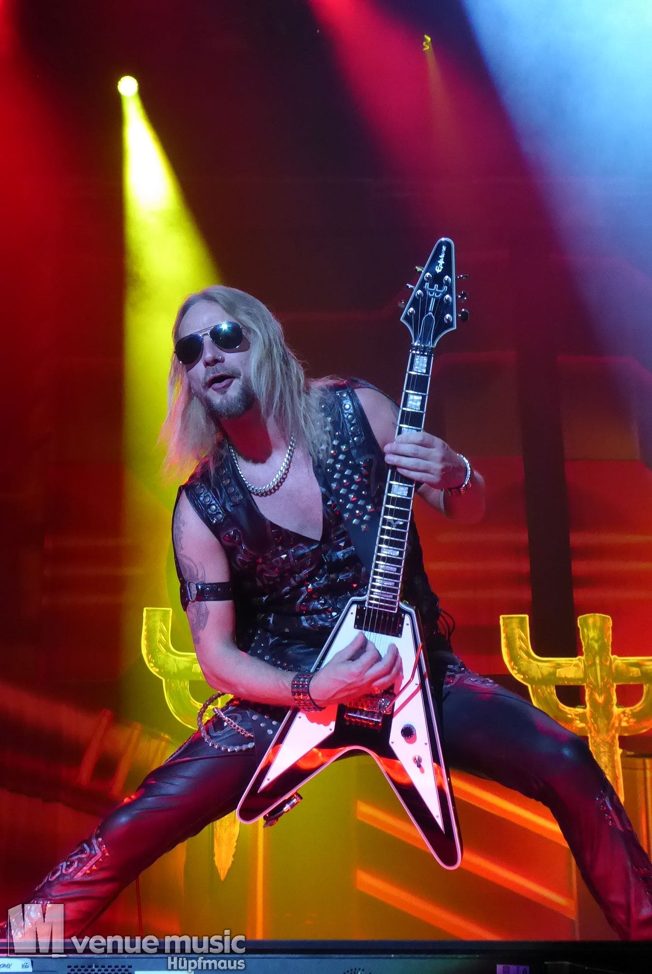 Die Bühnenshow war klasse, klaro, dass auch ein Motorrad mit dabei sein musste. Allerdings hatte man das Gefühl, dass Rob Halford nicht alle Texte gleichermaßen gut auf dem Schirm hatte und in der Bühnenmitte ein Monitor stand, von dessen Seite er vor allem bei den ganz bekannten Klassikern wich. Denn da kam er auch schon mal zum vorderen Rand der Bühne. Aber was solls, das tat der Stimmung keinen Abbruch und verzeihen wir im die – vermeintliche – Gedächtnisstütze. Die brauchen weitaus jüngere Musiker auch schon mal.