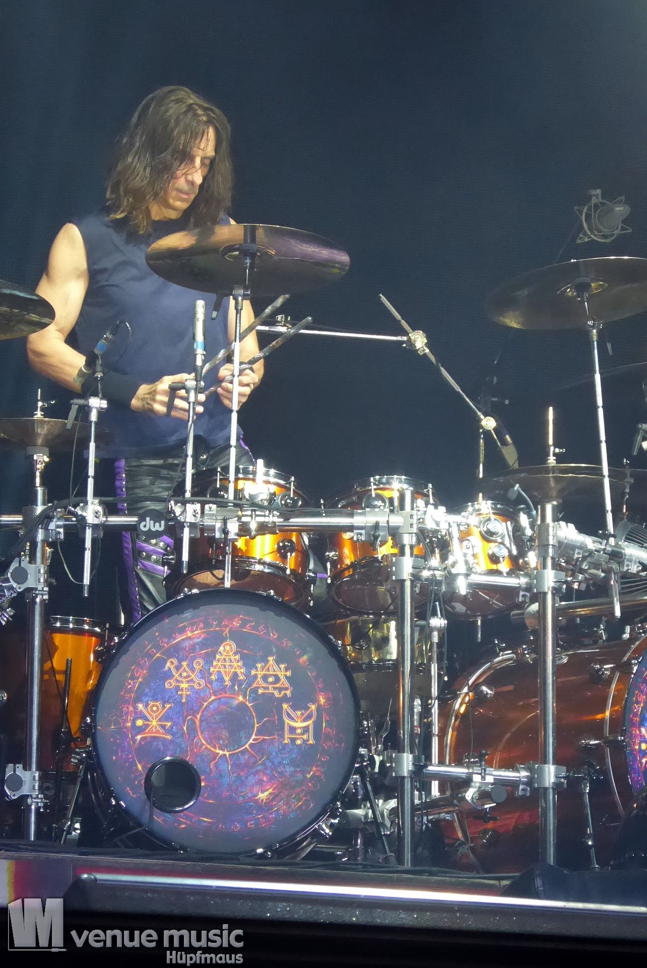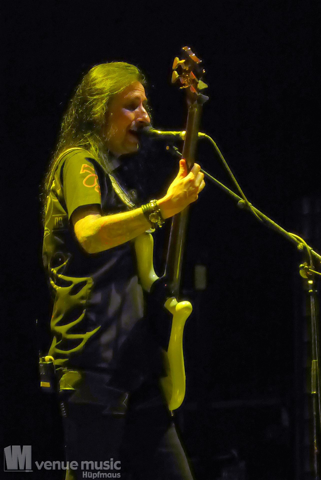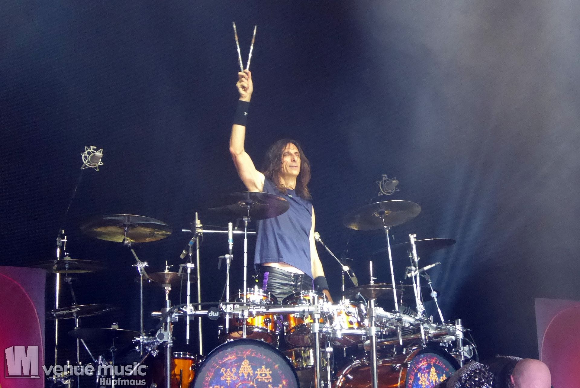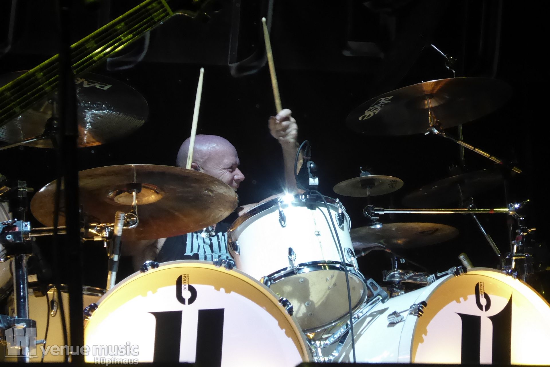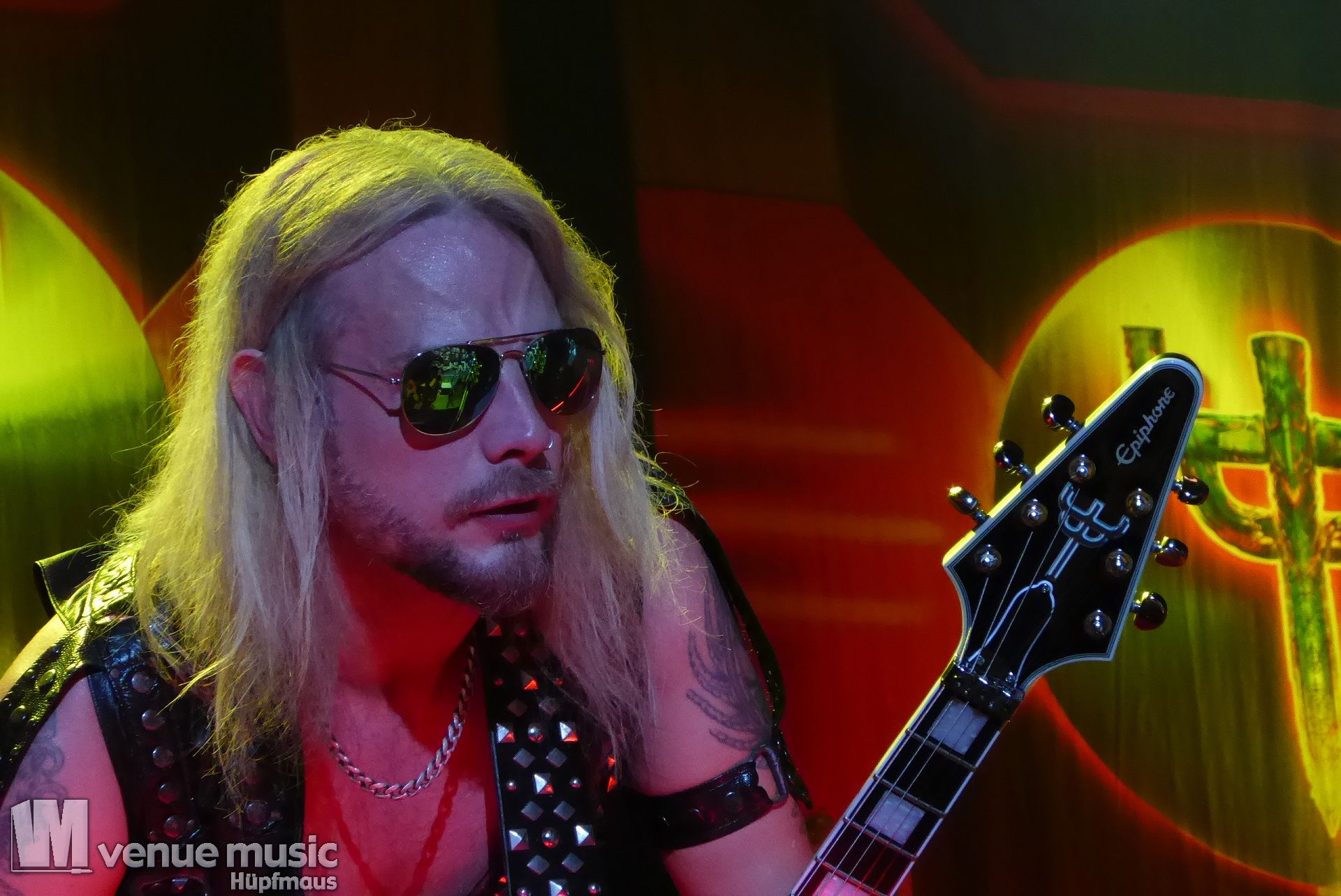 Die Bühnenshow war klasse, klaro, dass auch ein Motorrad mit dabei sein musste. Allerdings hatte man das Gefühl, dass Rob Halford nicht alle Texte gleichermaßen gut auf dem Schirm hatte und in der Bühnenmitte ein Monitor stand, von dessen Seite er vor allem bei den ganz bekannten Klassikern wich. Denn da kam er auch schon mal zum vorderen Rand der Bühne. Aber was solls, das tat der Stimmung keinen Abbruch und verzeihen wir im die – vermeintliche – Gedächtnisstütze. Die brauchen weitaus jüngere Musiker auch schon mal.