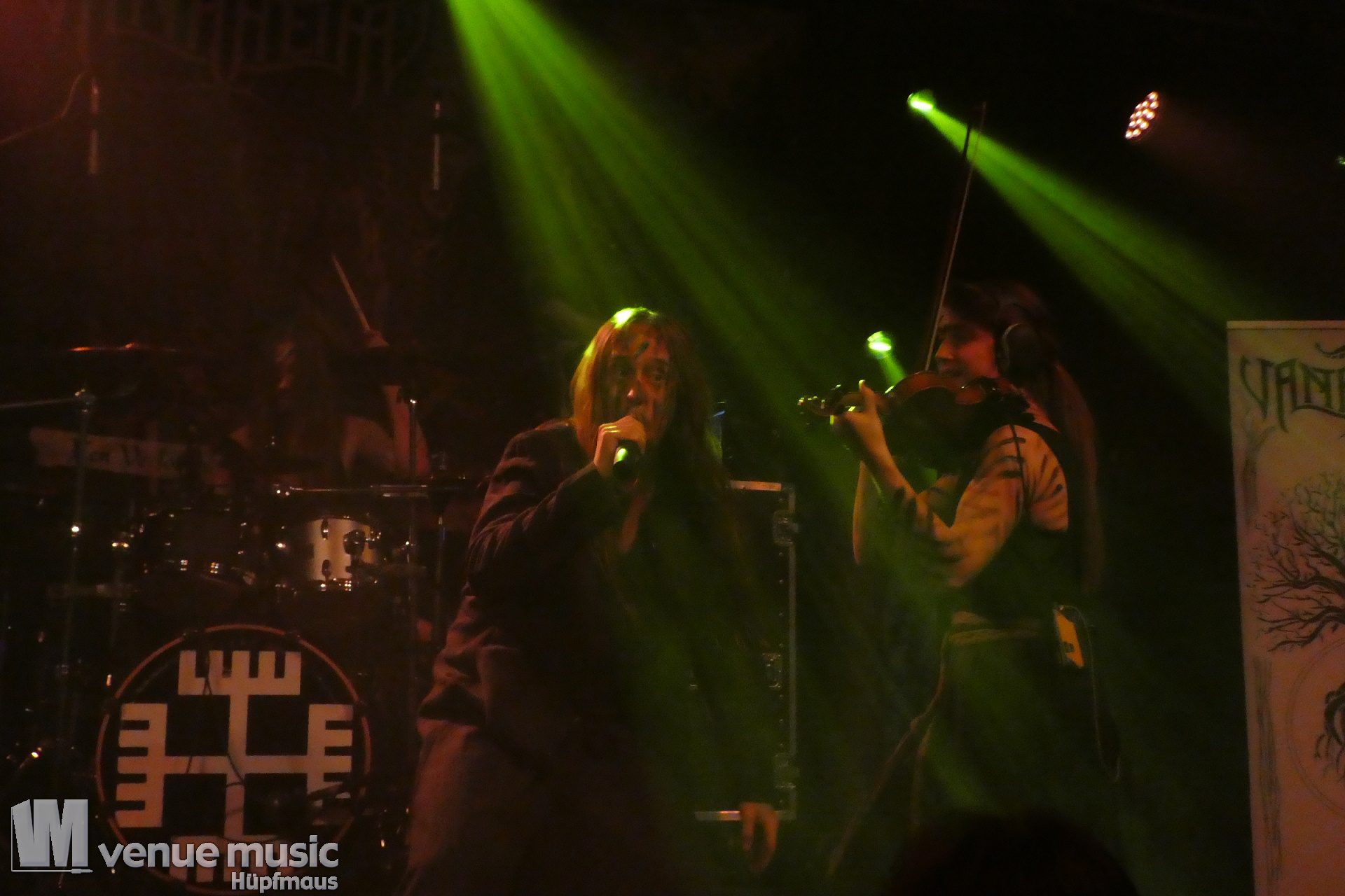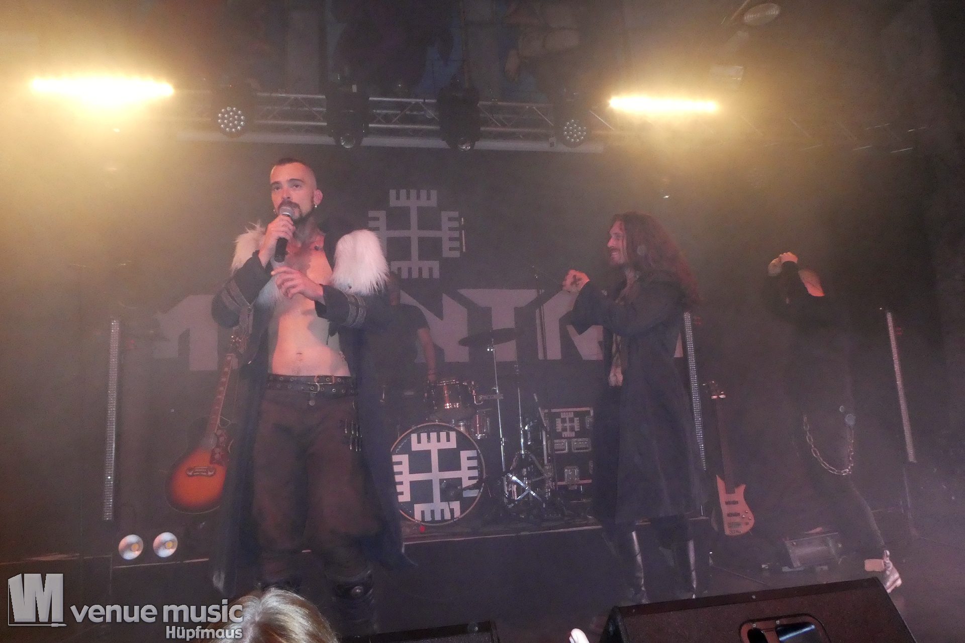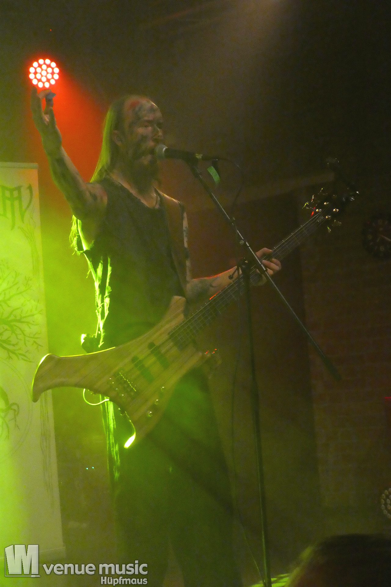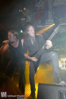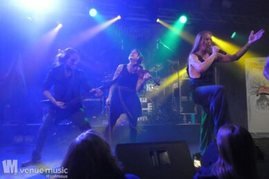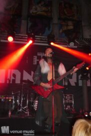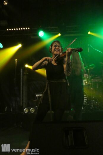 Vanaheim kommen aus den Niederlanden und machen epischen Pagan (Death-) Metal. Von sanften verspielten Melodien, den typischen Folk-Instrumenten bis zum harten Growling ist in den Songs alles dabei. Die gehen dann auch schon mal mehr als 7 Minuten, so dass sie grade mal 4 Songs performen konnten. Aber das war total egal, denn die Zeit verging eh im Flug und die vier auf der Bühne hatten so richtig Spaß. Da wurde gelacht, gealbert, mit dem Publikum interagiert – kurzerhand war dann schon mal die Fläche vor der Bühne auch mit bespielt. Und was soll ich sagen: auch wir hatten mega Spaß! Klar: mitsingen war schwierig… erstens kannten wir ja keinen Song, zweitens versteht man bei den Growling Parts eh nicht so viel und drittens waren die Texte auf Niederländisch ;) Die Ansagen dafür auf Englisch (und ein bisschen Deutsch), aber man muss ja nicht jeden Texte kennen, um Spaß bei einem Konzert zu haben (auch wenn Mitsingen schon immer noch geil ist). Wieder eine tolle Band kennen gelernt!