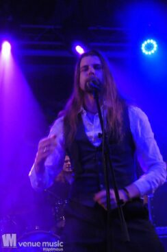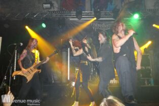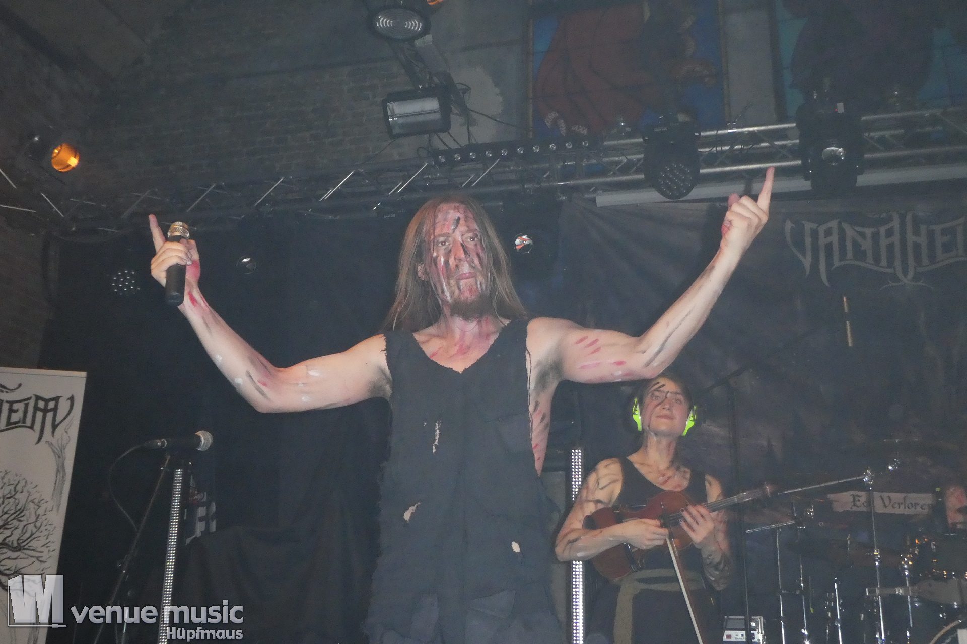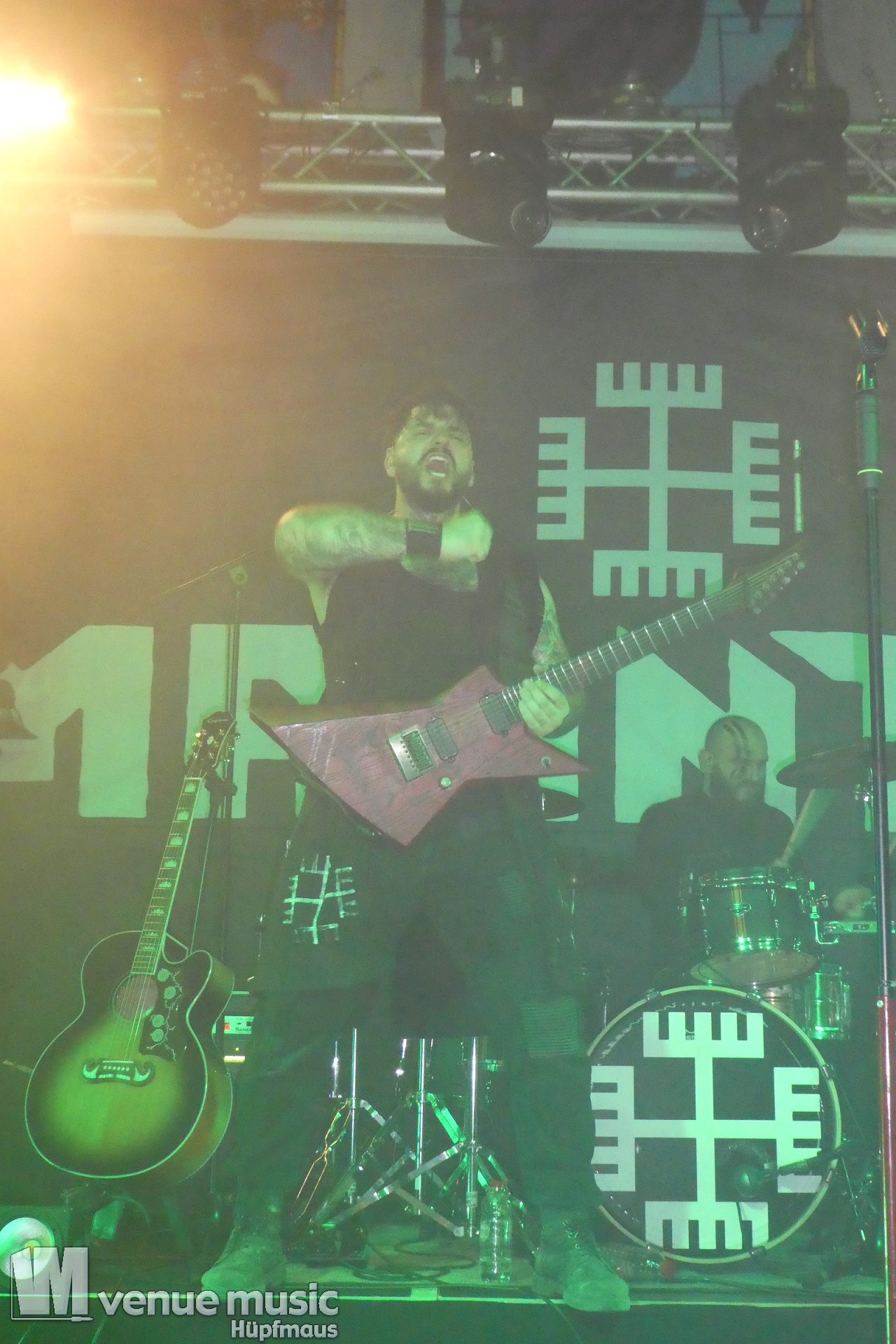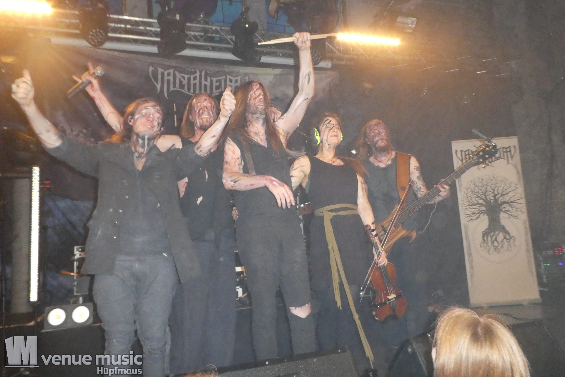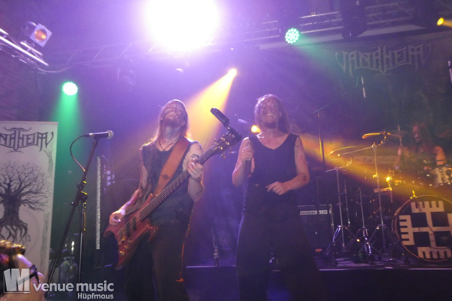 Vanaheim kommen aus den Niederlanden und machen epischen Pagan (Death-) Metal. Von sanften verspielten Melodien, den typischen Folk-Instrumenten bis zum harten Growling ist in den Songs alles dabei. Die gehen dann auch schon mal mehr als 7 Minuten, so dass sie grade mal 4 Songs performen konnten. Aber das war total egal, denn die Zeit verging eh im Flug und die vier auf der Bühne hatten so richtig Spaß. Da wurde gelacht, gealbert, mit dem Publikum interagiert – kurzerhand war dann schon mal die Fläche vor der Bühne auch mit bespielt. Und was soll ich sagen: auch wir hatten mega Spaß! Klar: mitsingen war schwierig… erstens kannten wir ja keinen Song, zweitens versteht man bei den Growling Parts eh nicht so viel und drittens waren die Texte auf Niederländisch ;) Die Ansagen dafür auf Englisch (und ein bisschen Deutsch), aber man muss ja nicht jeden Texte kennen, um Spaß bei einem Konzert zu haben (auch wenn Mitsingen schon immer noch geil ist). Wieder eine tolle Band kennen gelernt!