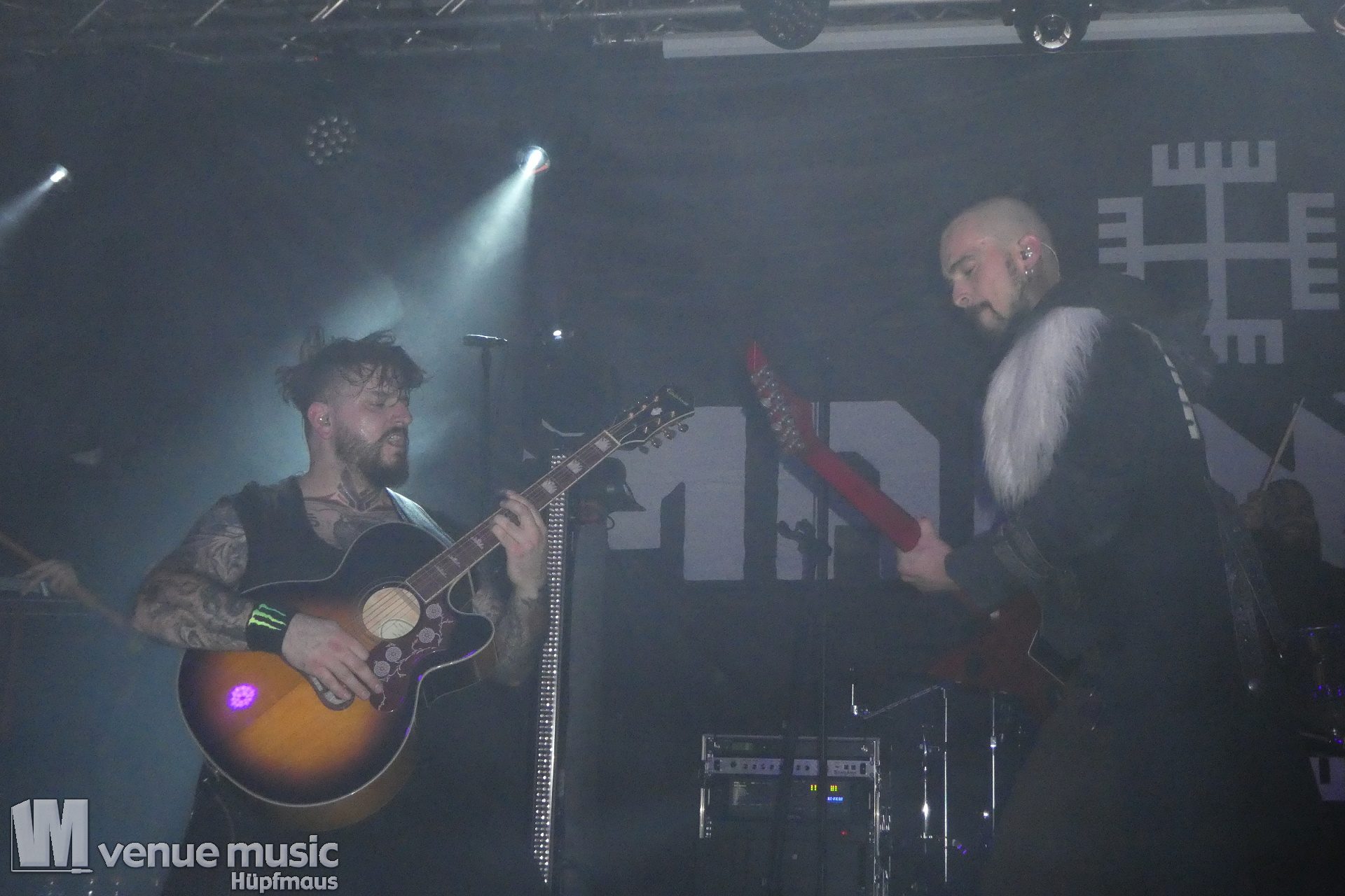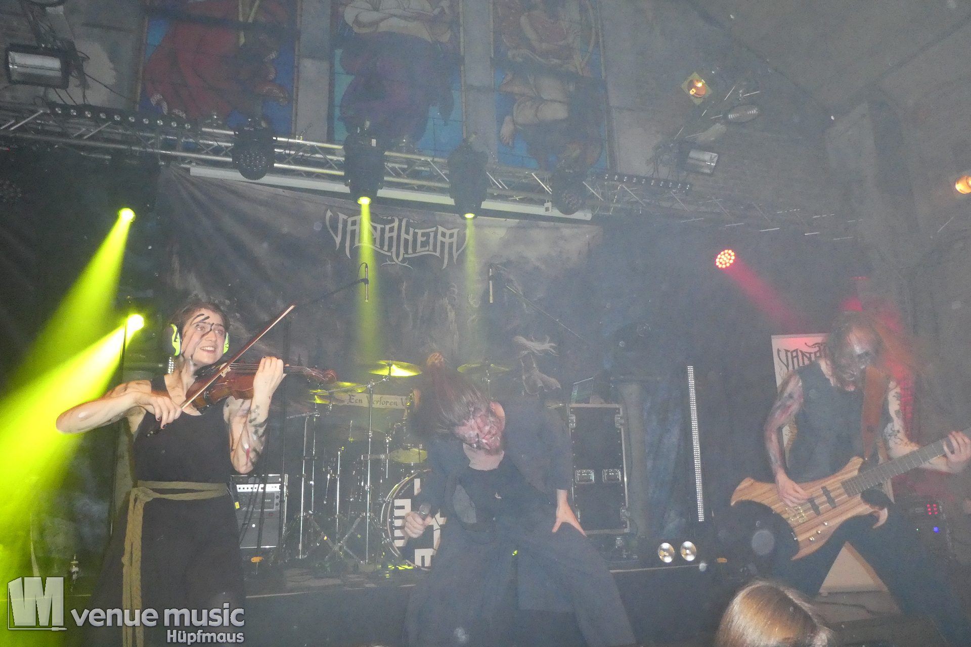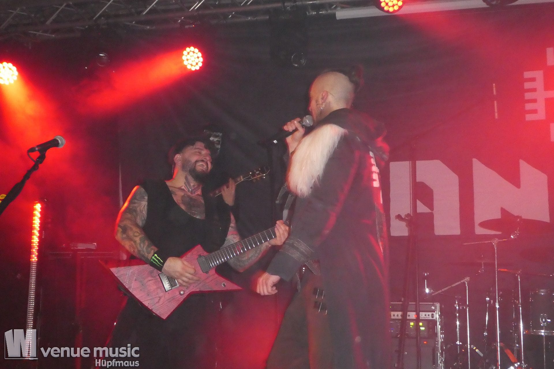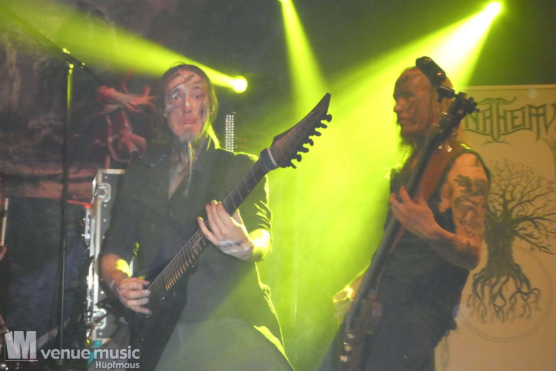 Vanaheim kommen aus den Niederlanden und machen epischen Pagan (Death-) Metal. Von sanften verspielten Melodien, den typischen Folk-Instrumenten bis zum harten Growling ist in den Songs alles dabei. Die gehen dann auch schon mal mehr als 7 Minuten, so dass sie grade mal 4 Songs performen konnten. Aber das war total egal, denn die Zeit verging eh im Flug und die vier auf der Bühne hatten so richtig Spaß. Da wurde gelacht, gealbert, mit dem Publikum interagiert – kurzerhand war dann schon mal die Fläche vor der Bühne auch mit bespielt. Und was soll ich sagen: auch wir hatten mega Spaß! Klar: mitsingen war schwierig… erstens kannten wir ja keinen Song, zweitens versteht man bei den Growling Parts eh nicht so viel und drittens waren die Texte auf Niederländisch ;) Die Ansagen dafür auf Englisch (und ein bisschen Deutsch), aber man muss ja nicht jeden Texte kennen, um Spaß bei einem Konzert zu haben (auch wenn Mitsingen schon immer noch geil ist). Wieder eine tolle Band kennen gelernt!