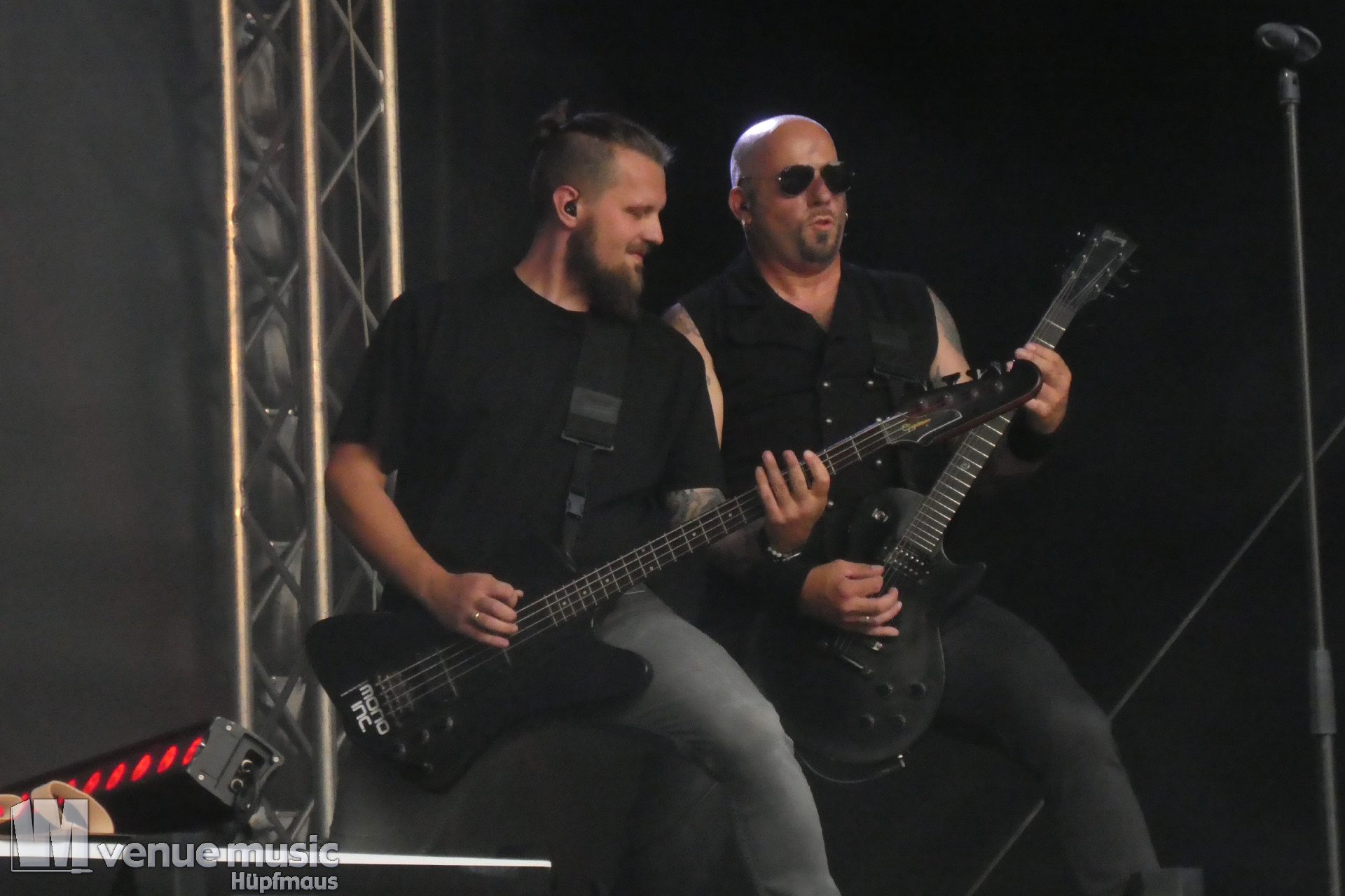 Das ging aber so weit, dass Martin dann sagte, dass er es zwar eigentlich viel geiler findet, wenn alle aufstehen und mitmachen und hüpfen und tanzen – auch wenn man das auf der Stelle tun muss – doch wenn der Preis sei, dass er nicht in unsere Gesichter blicken könne, dann mögen wir doch ruhig lieber sitzen bleiben. (Sorry Martin – kann ich nicht, ich war die Hüpfmaus in der ersten Reihe, von mir haste aber meist eh Haare gesehen beim Headbangen ;) ) Und sagte dann auch dem Security, der darauf aufpassen musste, dass jeder der steht sich auch alles befolgt, dass er sich auch setzen könne, die Band hätte alles im Griff ;)