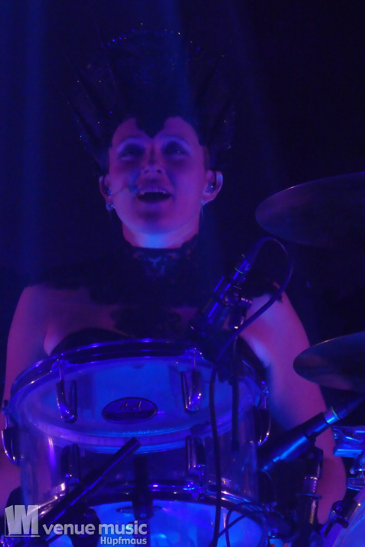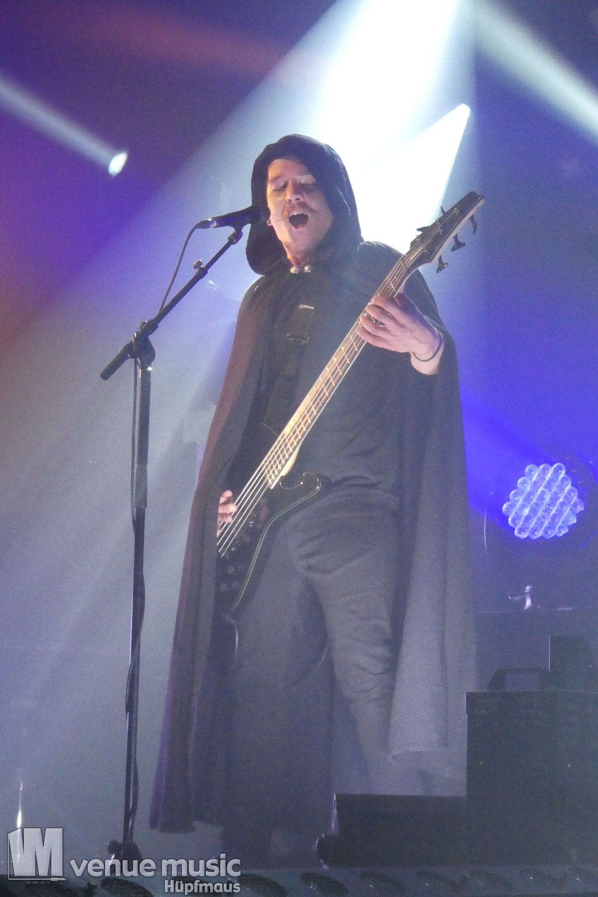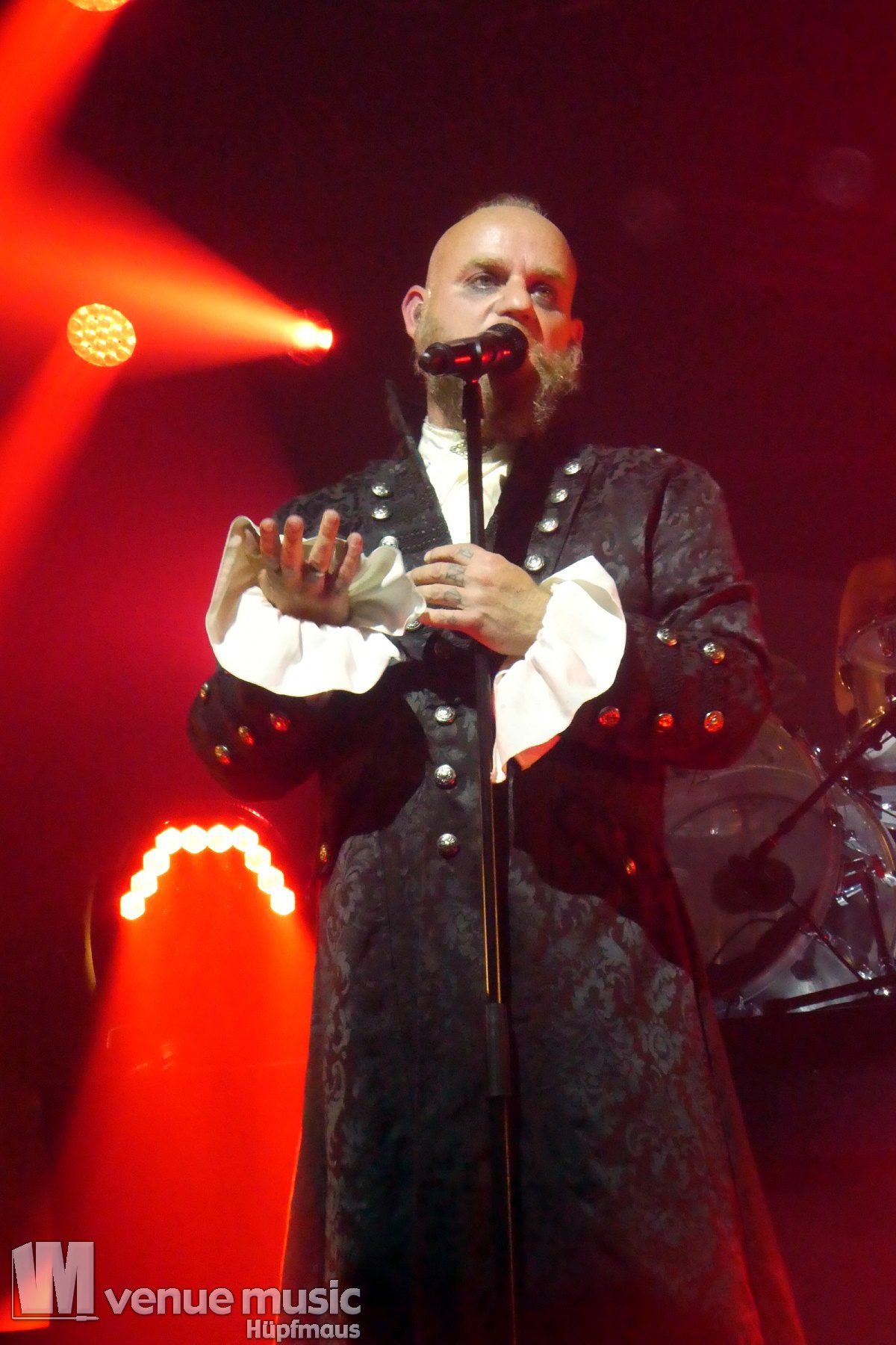Doch zunächst waren Lacrimas Profundere an der Reihe. Hatte ich die schon mal gesehen? Ich glaube ja, kann mich aber nicht mehr erinnern. Sänger Julian war mit seinen Kontaktlinsen doch recht auffällig, ein bisschen Vampir-like. Seine Fans und alle die es noch werden wollten konnten ihn auch ganz nah sehen, denn er kam noch von der Bühne mit ins Publikum.
