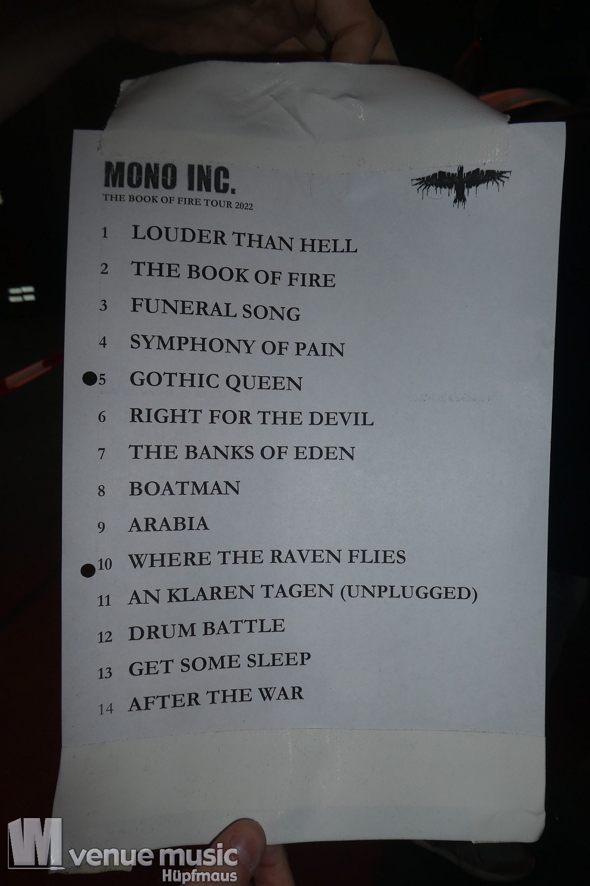 Endlich endlich: Mono Inc. auf ihrer „Book of Fire“-Tour sehen! Nach dem ich ja dämlicherweise 2020 meine Karten für Köln weggegeben hatte, weil wir doch nur nach Oberhausen gehen wollten, hatte ich mir dann für den neuen Köln Termin WIEDER Karten geholt ;) Und dieses Mal bin ich auch hin – komme was wolle. Das erste richtige Konzert nach Blind Guardian, Nockrock und Destruction im September-November letzten Jahres. Da konnte mich auch eine fiese Zahnfleischentzündung nicht davon abhalten.