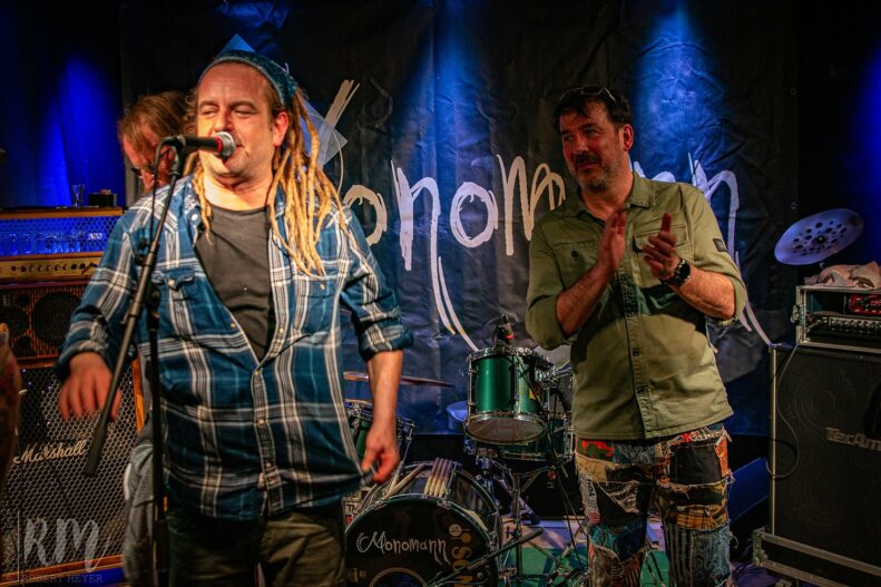 Am 26. Januar entführte die Band Monomann das Publikum im gemütlichen Ambiente des Paradiescafes in Jena auf eine musikalische Zeitreise in die wilden 80er der ehemaligen DDR. Inspiriert von der fiktiven Gruppe „Monomann“aus dem Buch „Bluessommer“ von Autor und Gründungsmitglied der Band Monomann – Kay Lutter, der gleichzeitig Bassist bei der Mittelalter-Rock-Band „In Extremo“ ist, präsentierten Monomann ein einzigartiges Blues-Konzert. Weitere Mitglieder sind Brian Bosse (Gitarre und Gesang), sowie Albrecht Steinfort (Schlagzeug) und Michael Robert Rhein ebenfalls Mitglied von „In Extremo“ (Gesang und Mundharmonika).