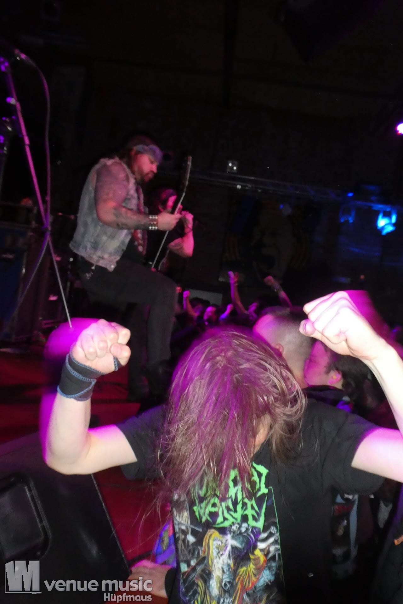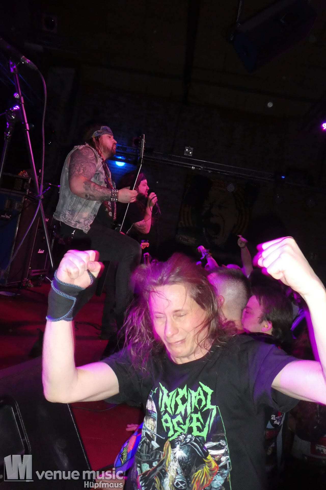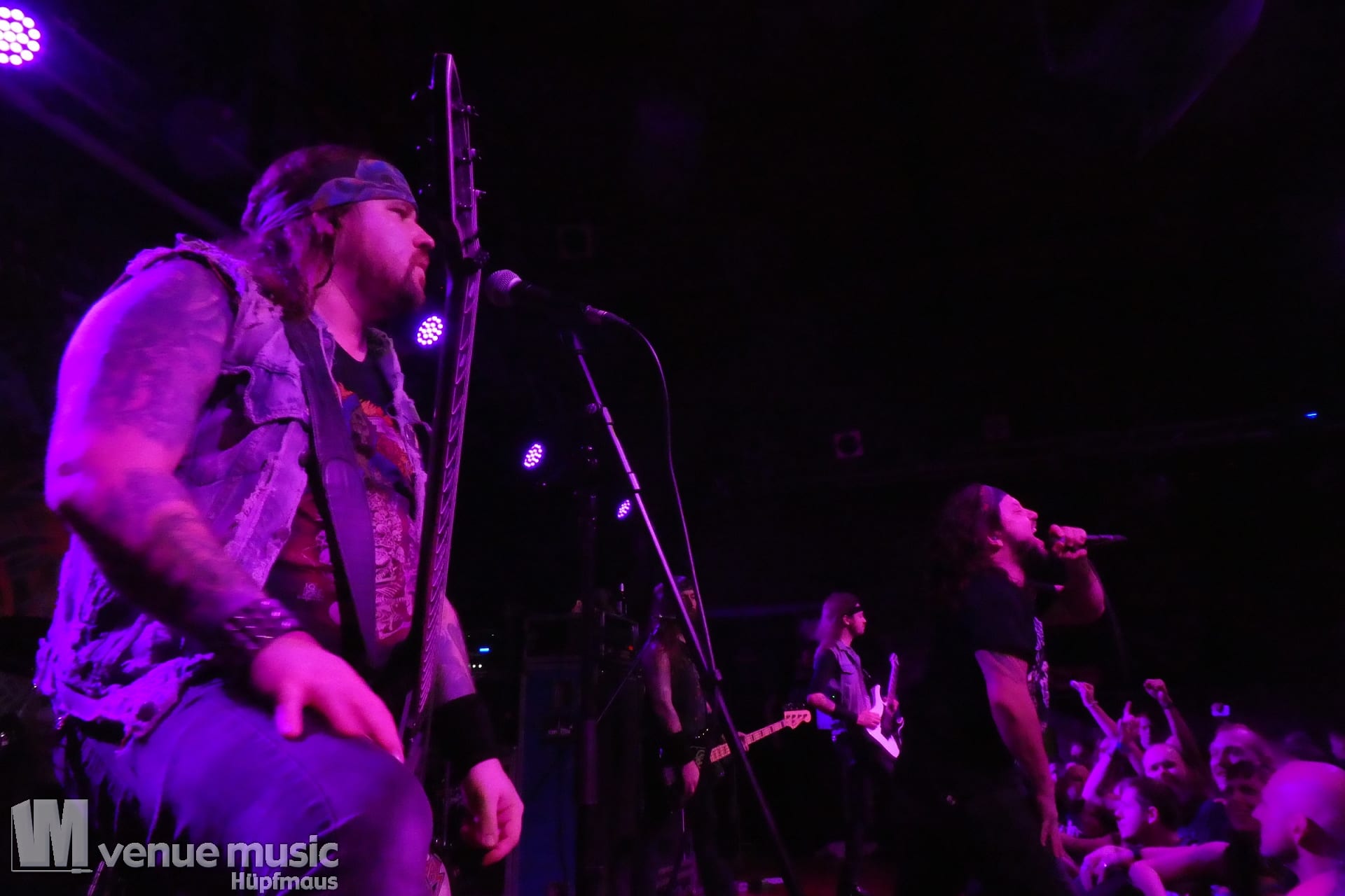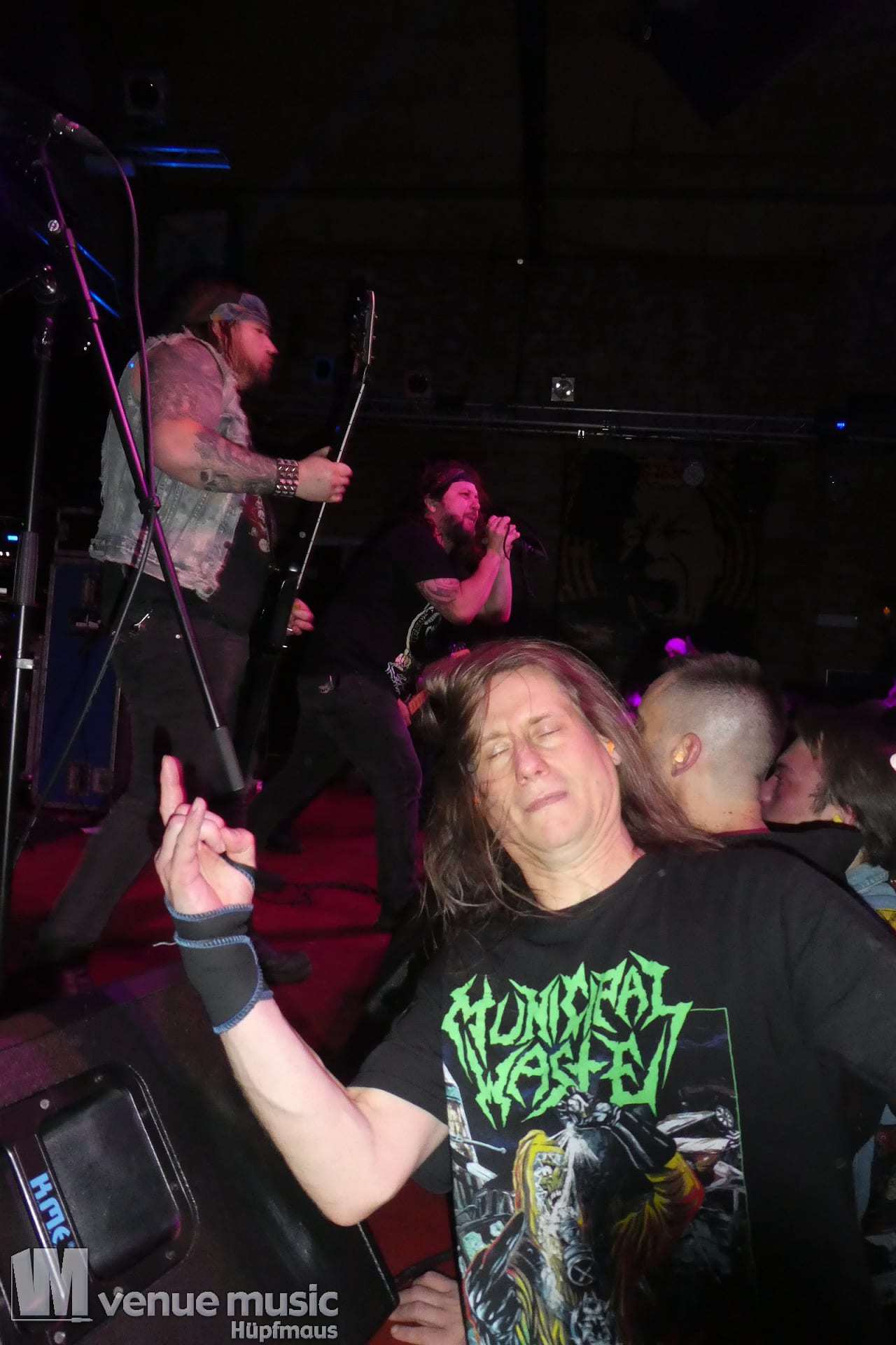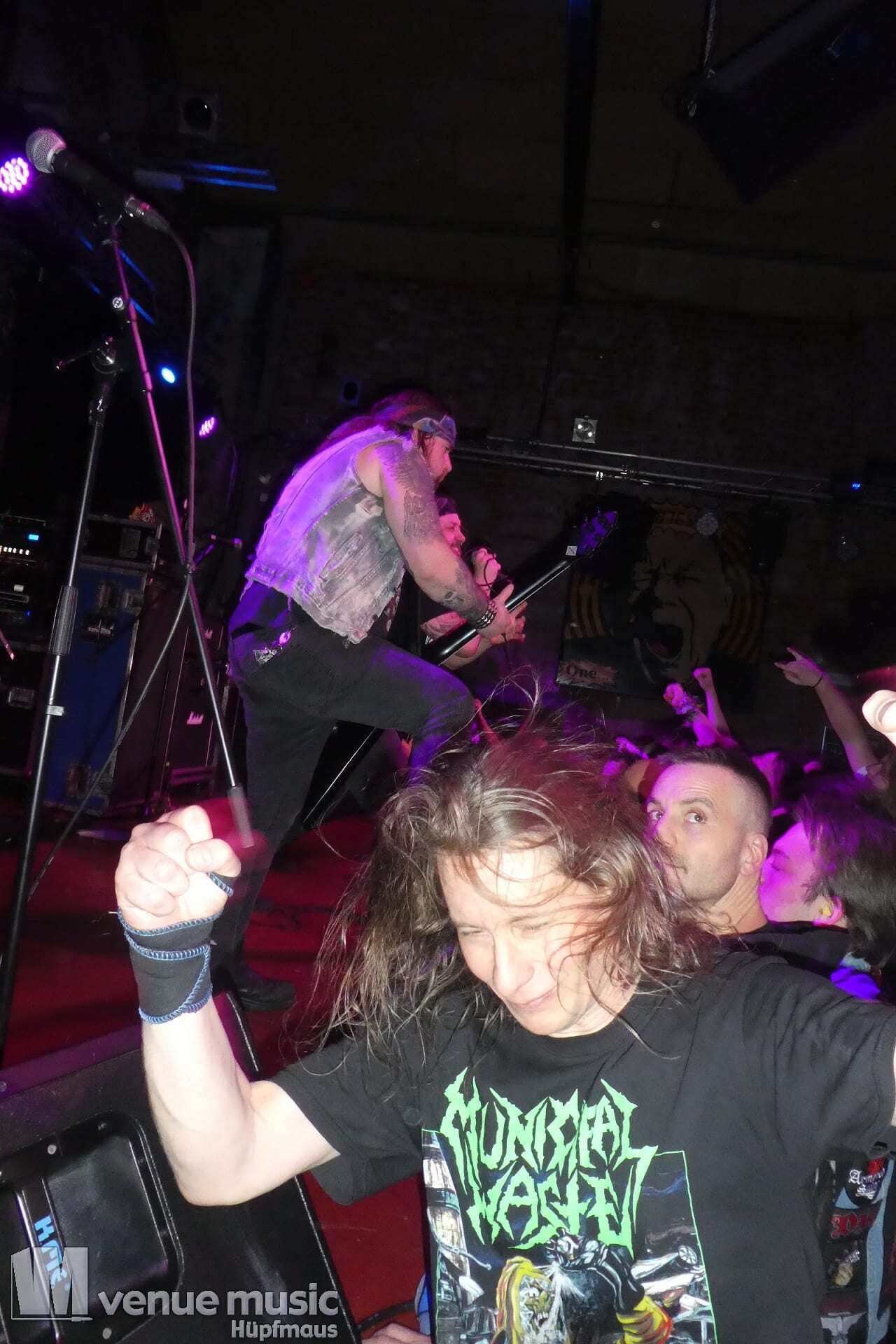 Municipal Waste haben am 10.Dezember 2019 den Kulttempel in Oberhausen mal so richtig abgerissen. Im Publikum hieß es „mittendrin statt nur dabei“: es gab so viel Moshpit und Stagediver, dass wir uns freiwillig (!) ganz an den Rand gestellt haben. Das passiert mir selten ;) Wobei ich ja persönlich nicht gesprungen wäre, dafür war es mir dann doch vor der Bühne nicht ganz voll genug. Das hinderte aber die anderen nicht daran, teils mit ner Rolle einfach von der Bühne zu springen. Es war so richtig gut was los. Cool war auch, dass die Security richtig ruhig blieb und den Stagedivern ihren Spaß ließen. Wobei man auch sagen muss, dass diese wiederum die Band (meist) komplett in Ruhe ließen – sie wollten halt einfach ein bisschen stagediven… Die Stimmung war also prächtig und das spezielle Trump-Shirt, was sie damals schon dabei hatten, ist derzeit aktuell wie nie ;)