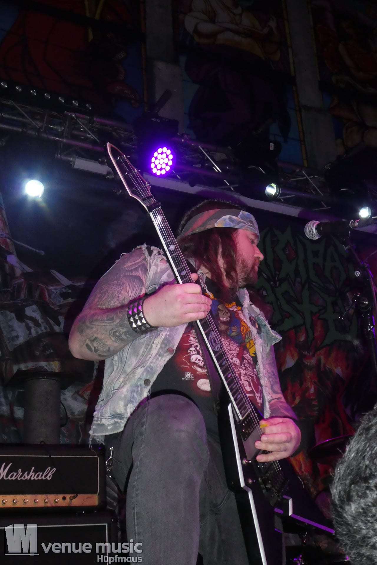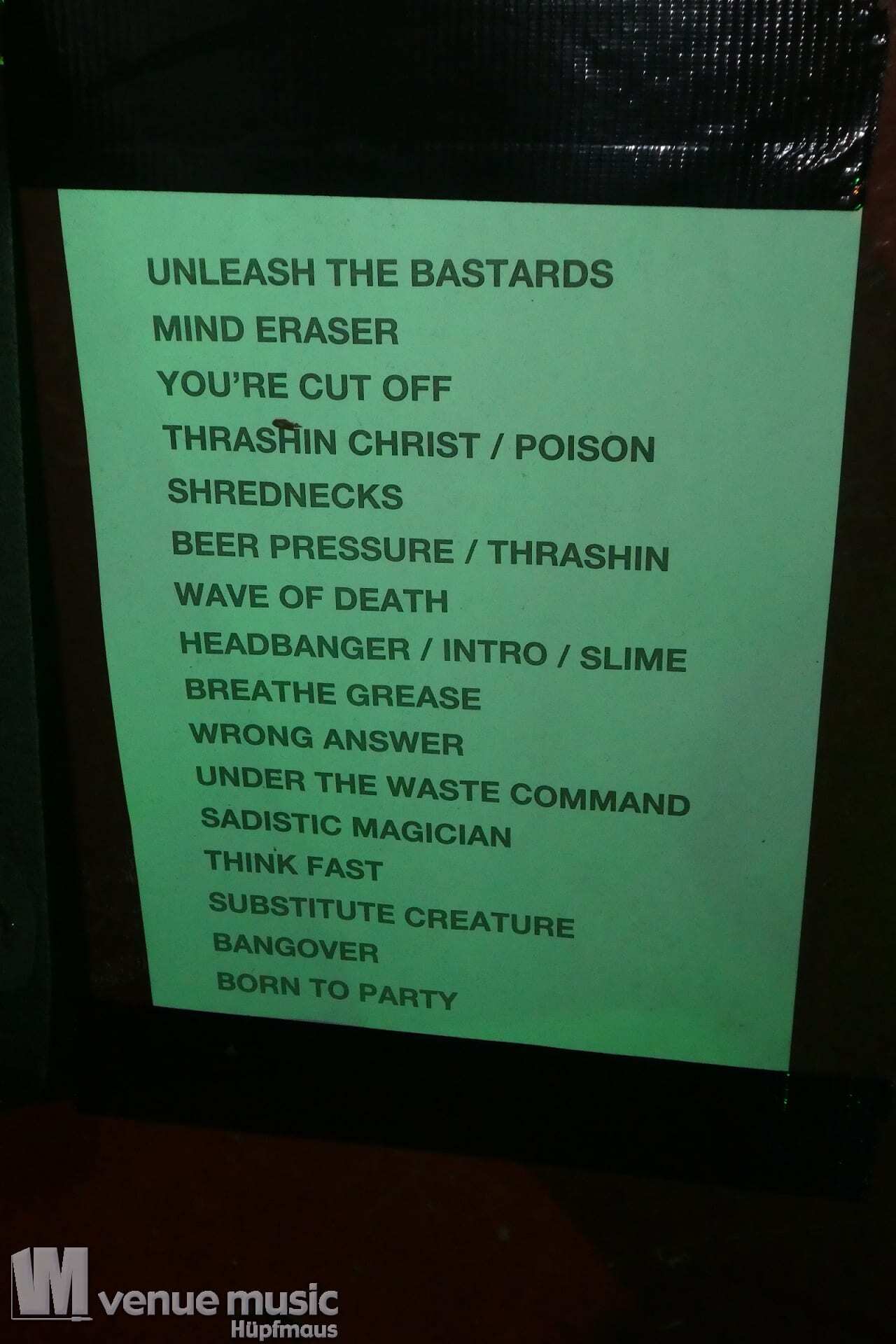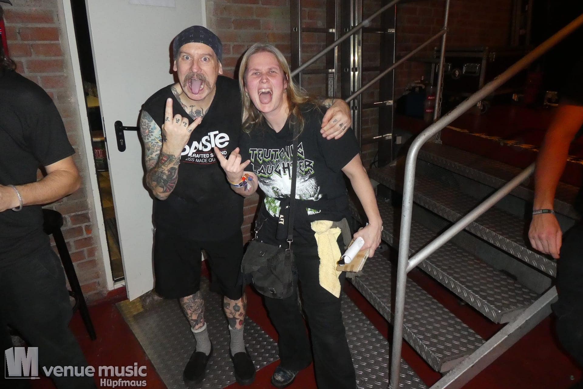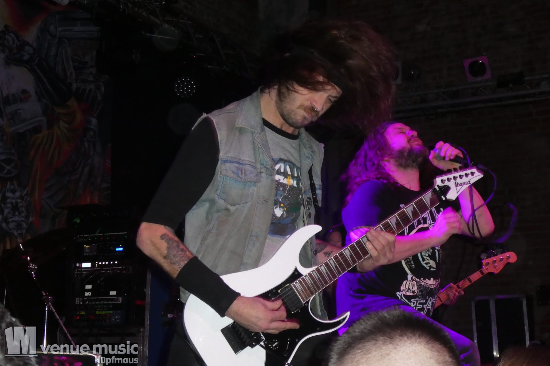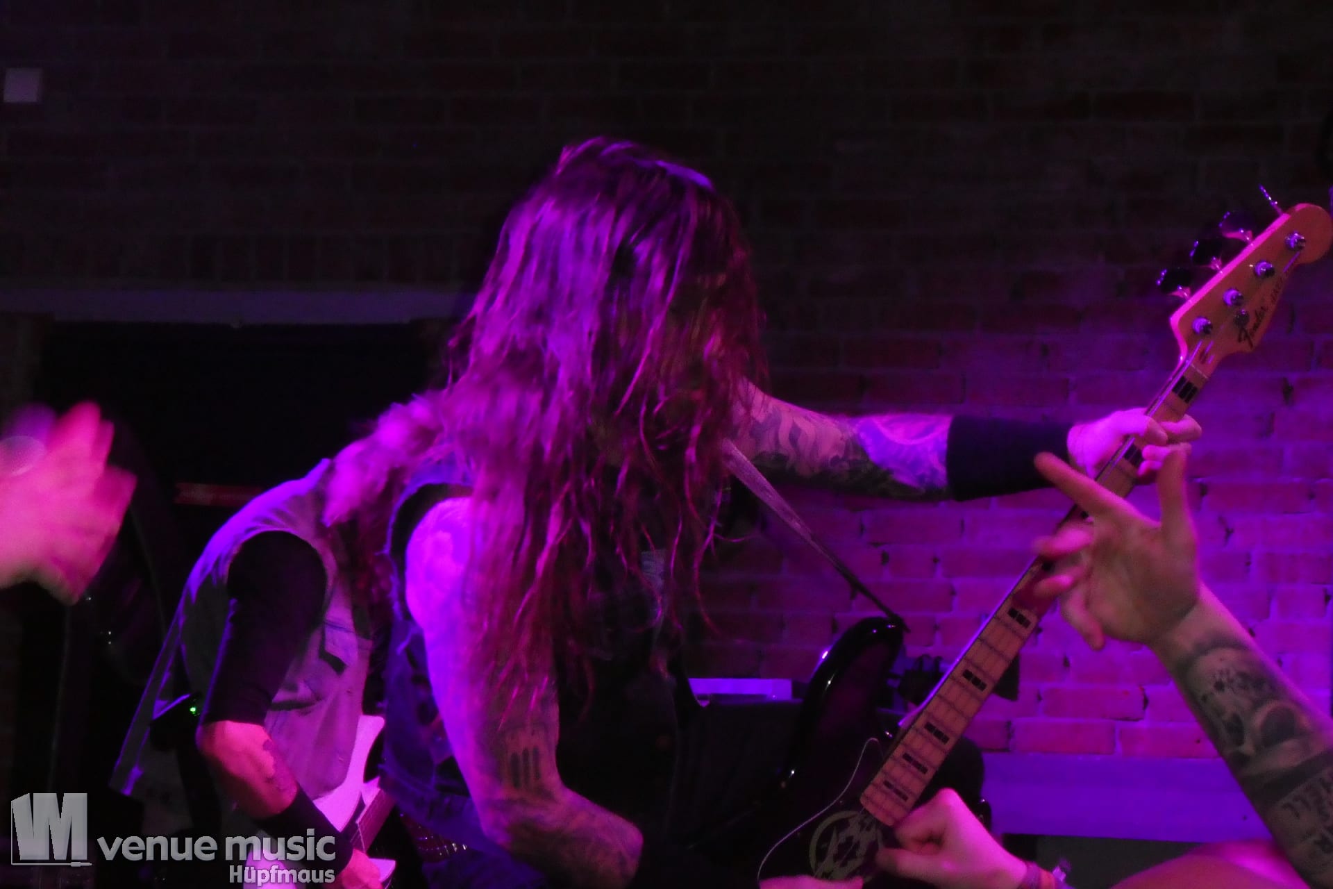 Municipal Waste haben am 10.Dezember 2019 den Kulttempel in Oberhausen mal so richtig abgerissen. Im Publikum hieß es „mittendrin statt nur dabei“: es gab so viel Moshpit und Stagediver, dass wir uns freiwillig (!) ganz an den Rand gestellt haben. Das passiert mir selten ;) Wobei ich ja persönlich nicht gesprungen wäre, dafür war es mir dann doch vor der Bühne nicht ganz voll genug. Das hinderte aber die anderen nicht daran, teils mit ner Rolle einfach von der Bühne zu springen. Es war so richtig gut was los. Cool war auch, dass die Security richtig ruhig blieb und den Stagedivern ihren Spaß ließen. Wobei man auch sagen muss, dass diese wiederum die Band (meist) komplett in Ruhe ließen – sie wollten halt einfach ein bisschen stagediven… Die Stimmung war also prächtig und das spezielle Trump-Shirt, was sie damals schon dabei hatten, ist derzeit aktuell wie nie ;)