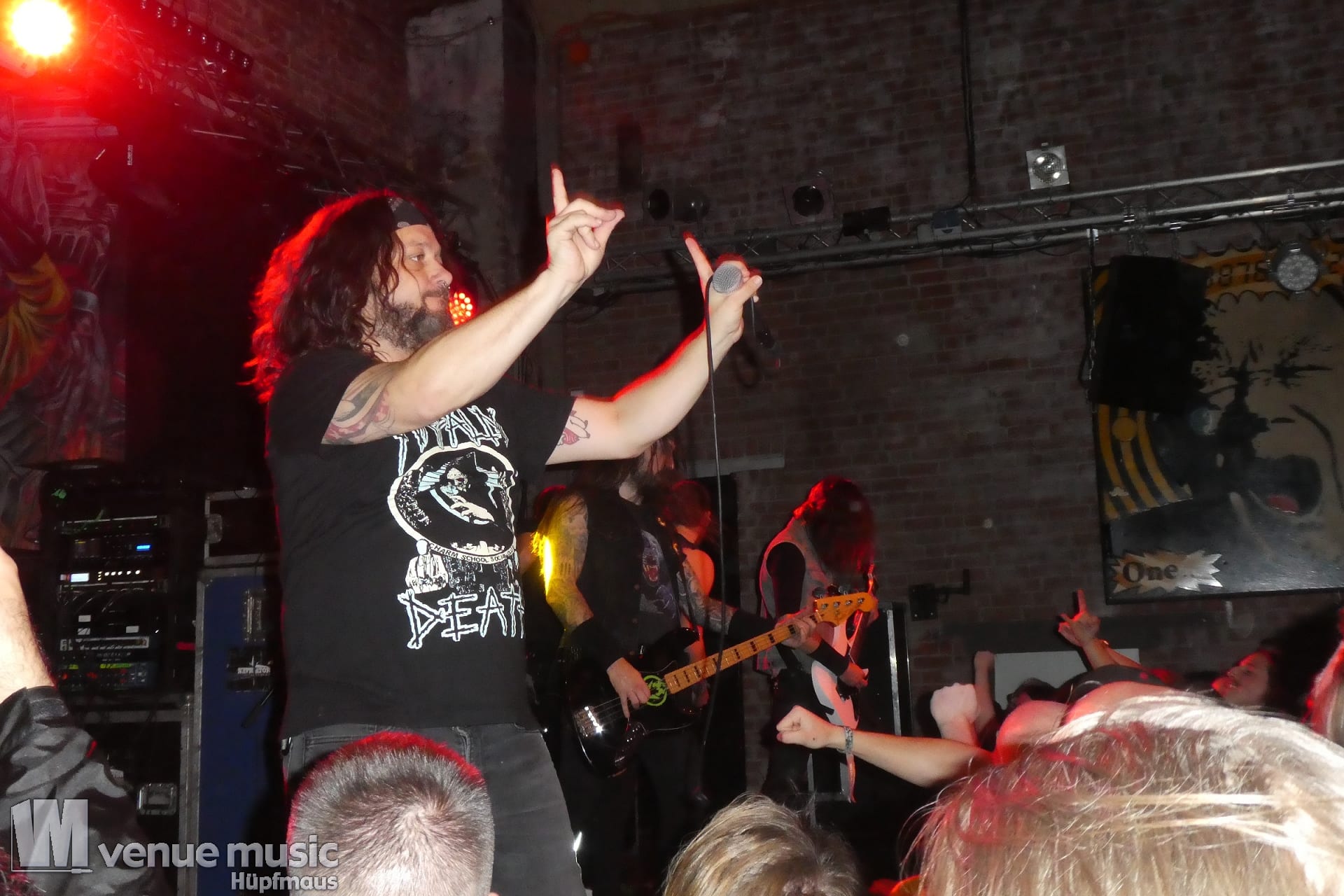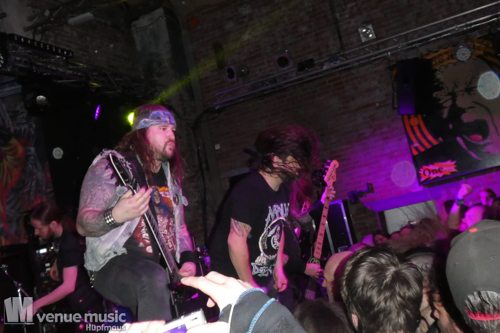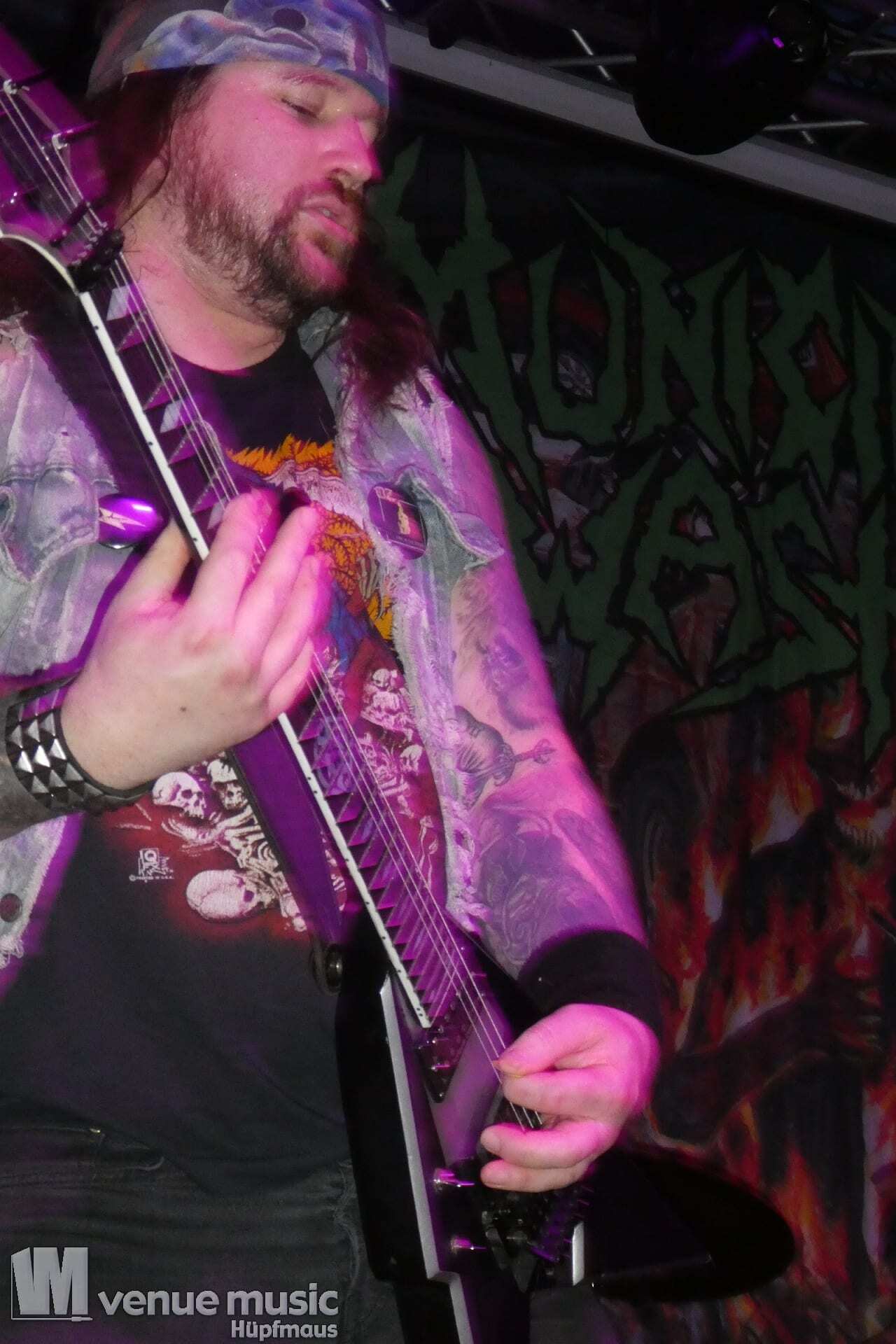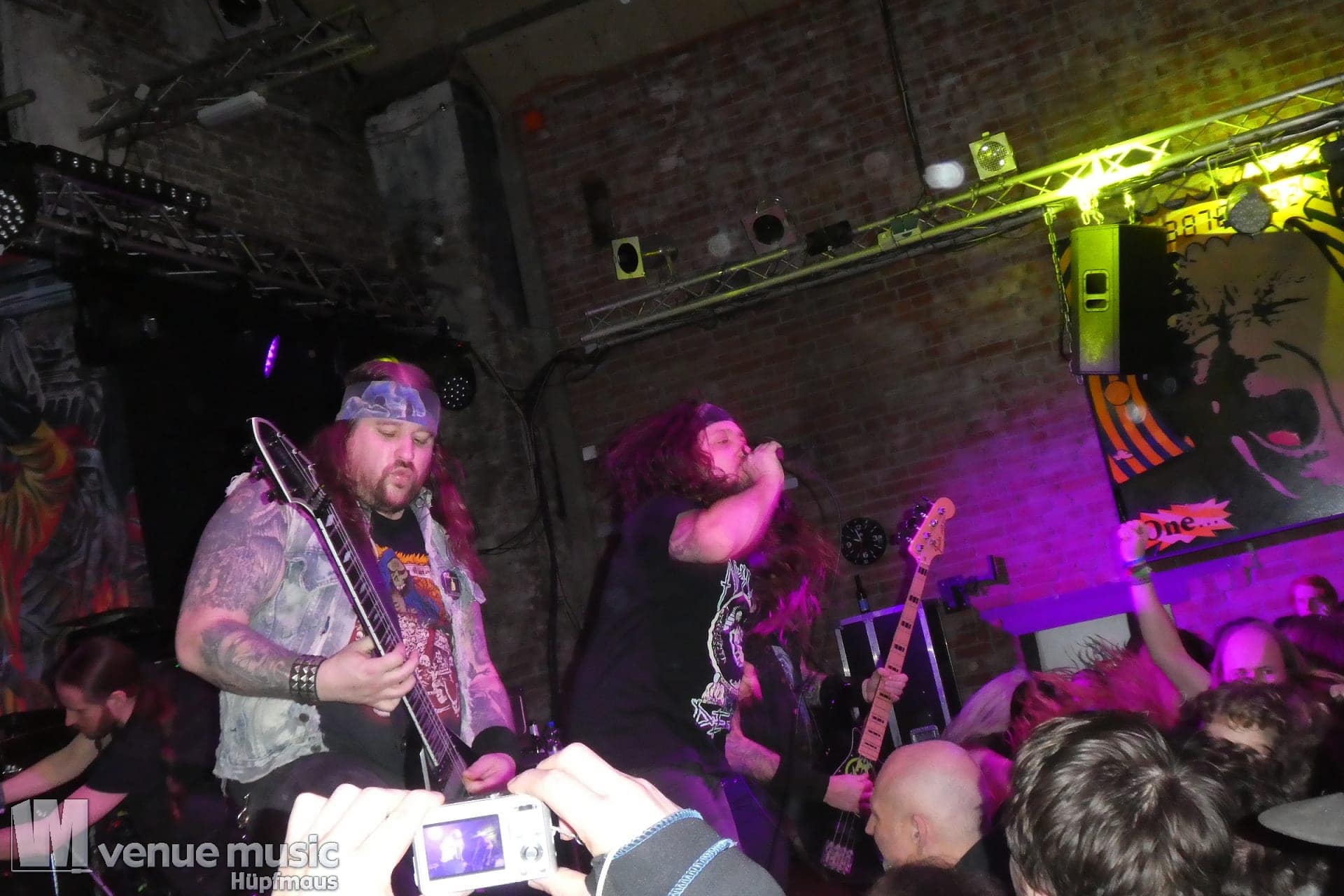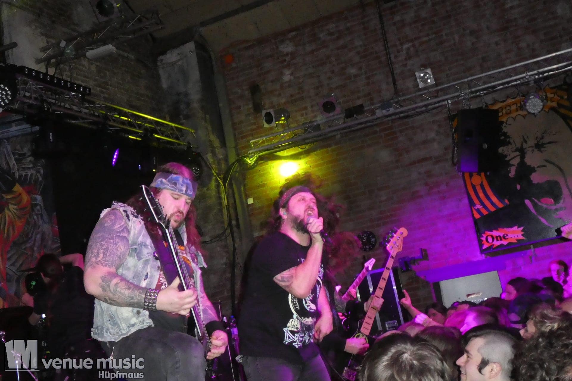 Municipal Waste haben am 10.Dezember 2019 den Kulttempel in Oberhausen mal so richtig abgerissen. Im Publikum hieß es „mittendrin statt nur dabei“: es gab so viel Moshpit und Stagediver, dass wir uns freiwillig (!) ganz an den Rand gestellt haben. Das passiert mir selten ;) Wobei ich ja persönlich nicht gesprungen wäre, dafür war es mir dann doch vor der Bühne nicht ganz voll genug. Das hinderte aber die anderen nicht daran, teils mit ner Rolle einfach von der Bühne zu springen. Es war so richtig gut was los. Cool war auch, dass die Security richtig ruhig blieb und den Stagedivern ihren Spaß ließen. Wobei man auch sagen muss, dass diese wiederum die Band (meist) komplett in Ruhe ließen – sie wollten halt einfach ein bisschen stagediven… Die Stimmung war also prächtig und das spezielle Trump-Shirt, was sie damals schon dabei hatten, ist derzeit aktuell wie nie ;)