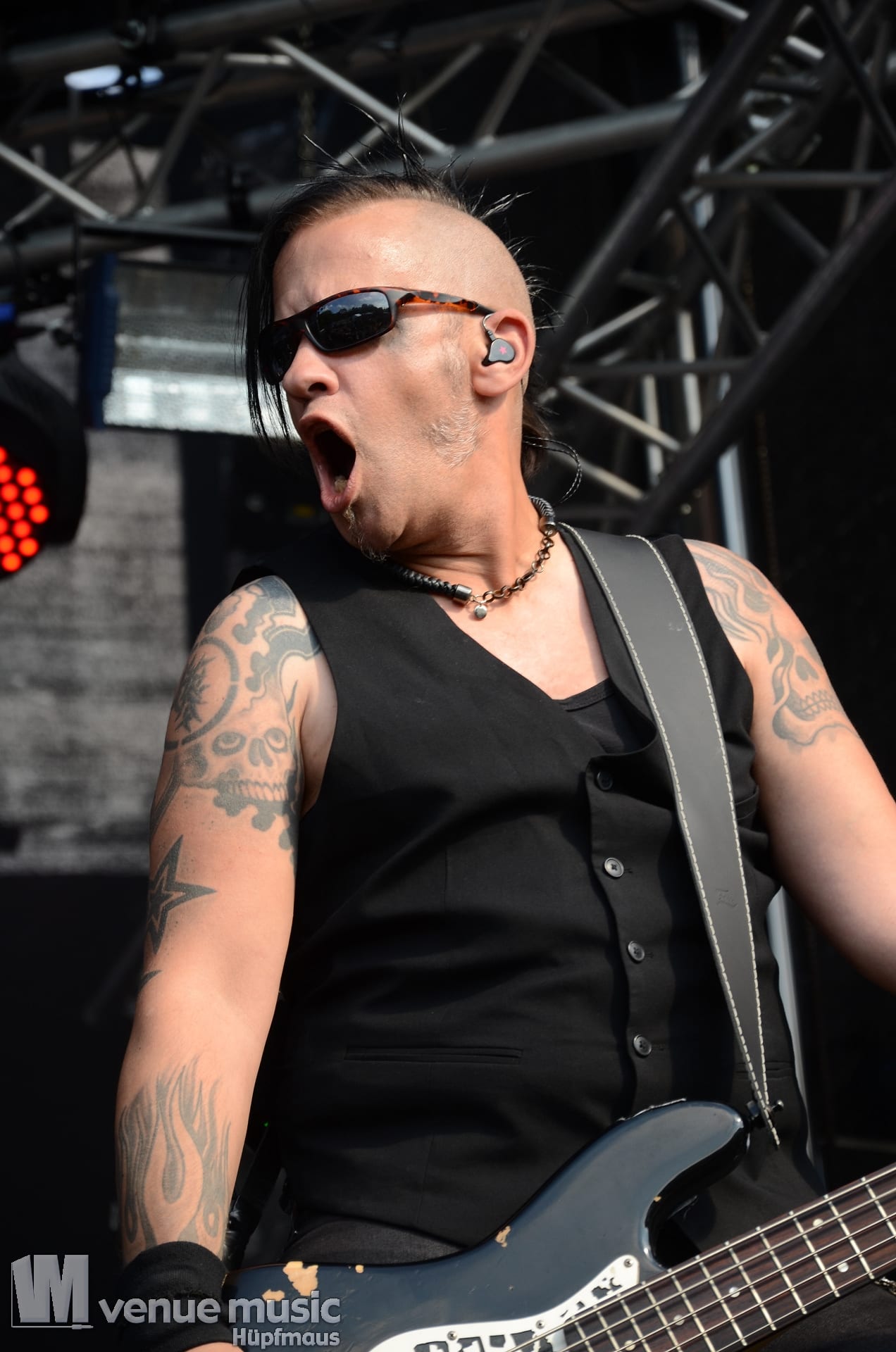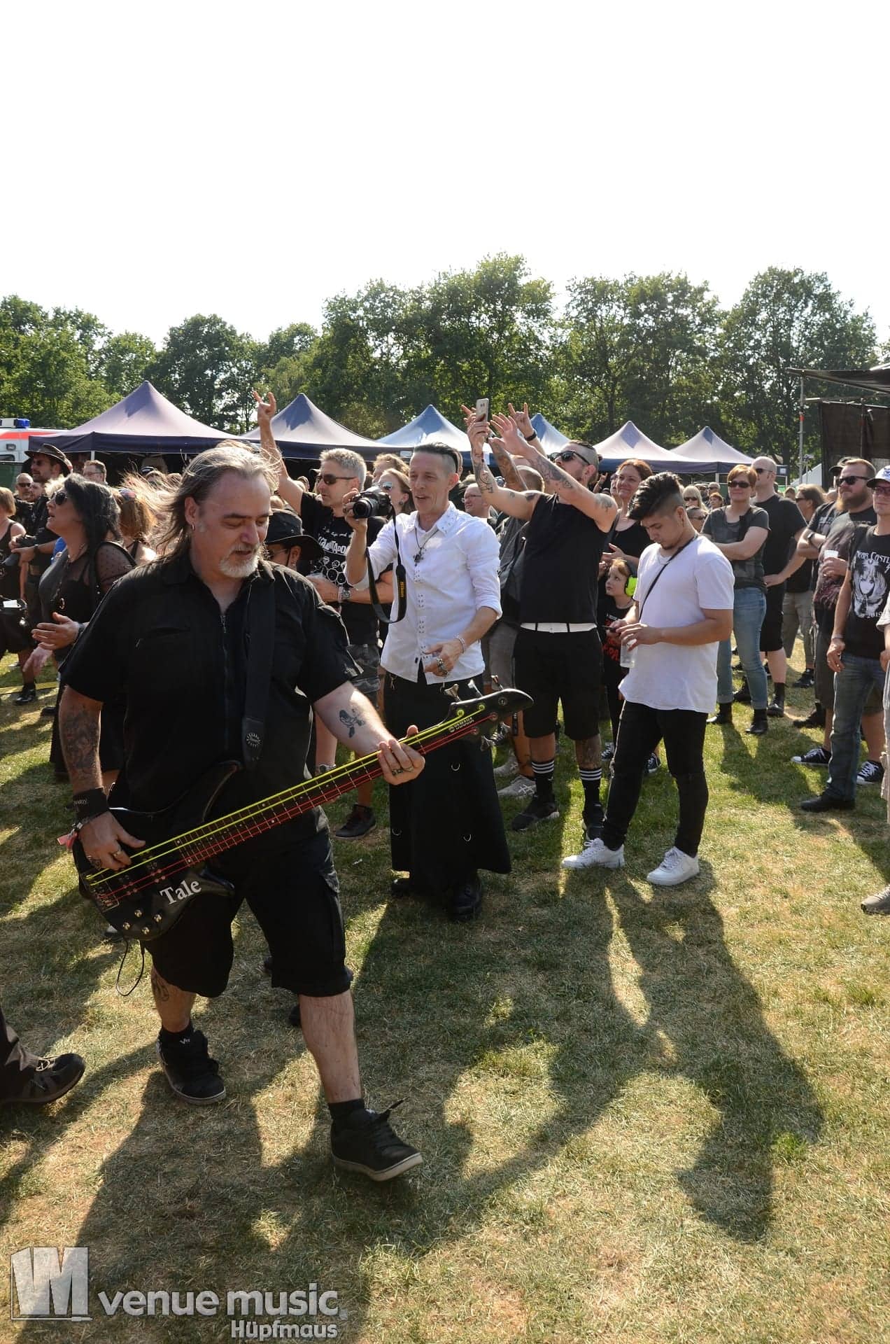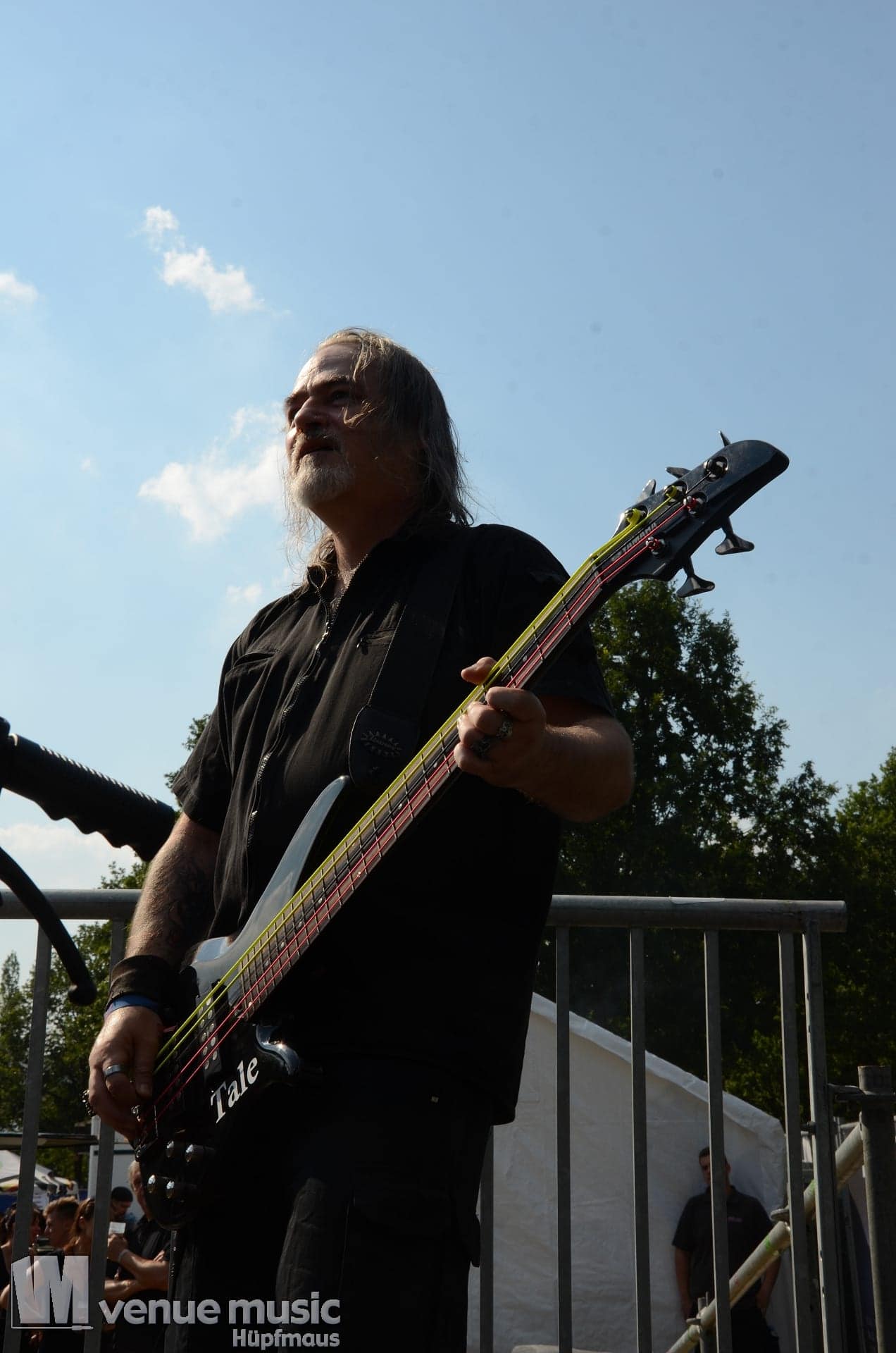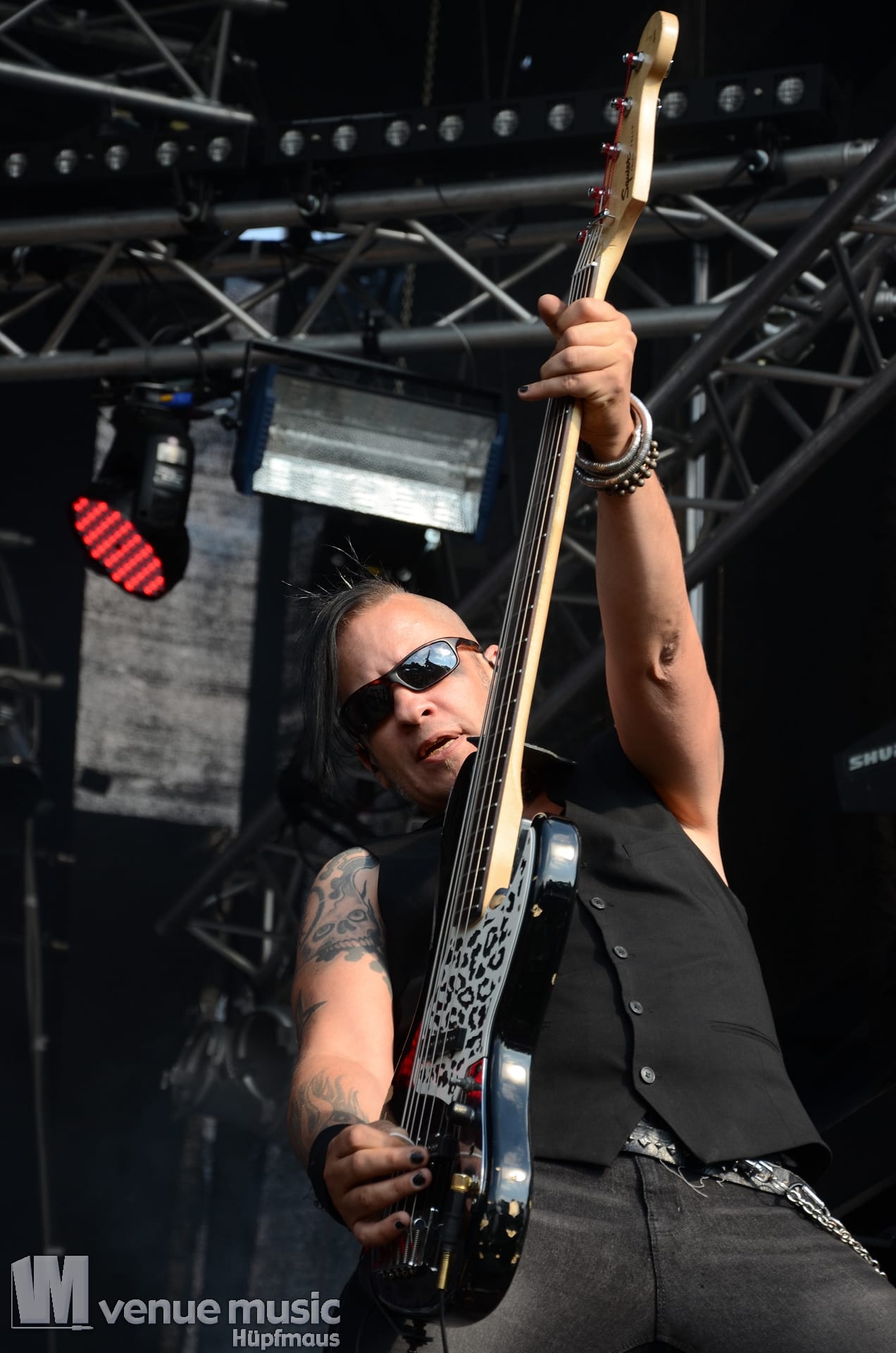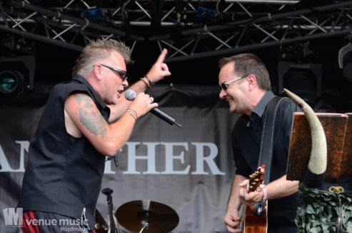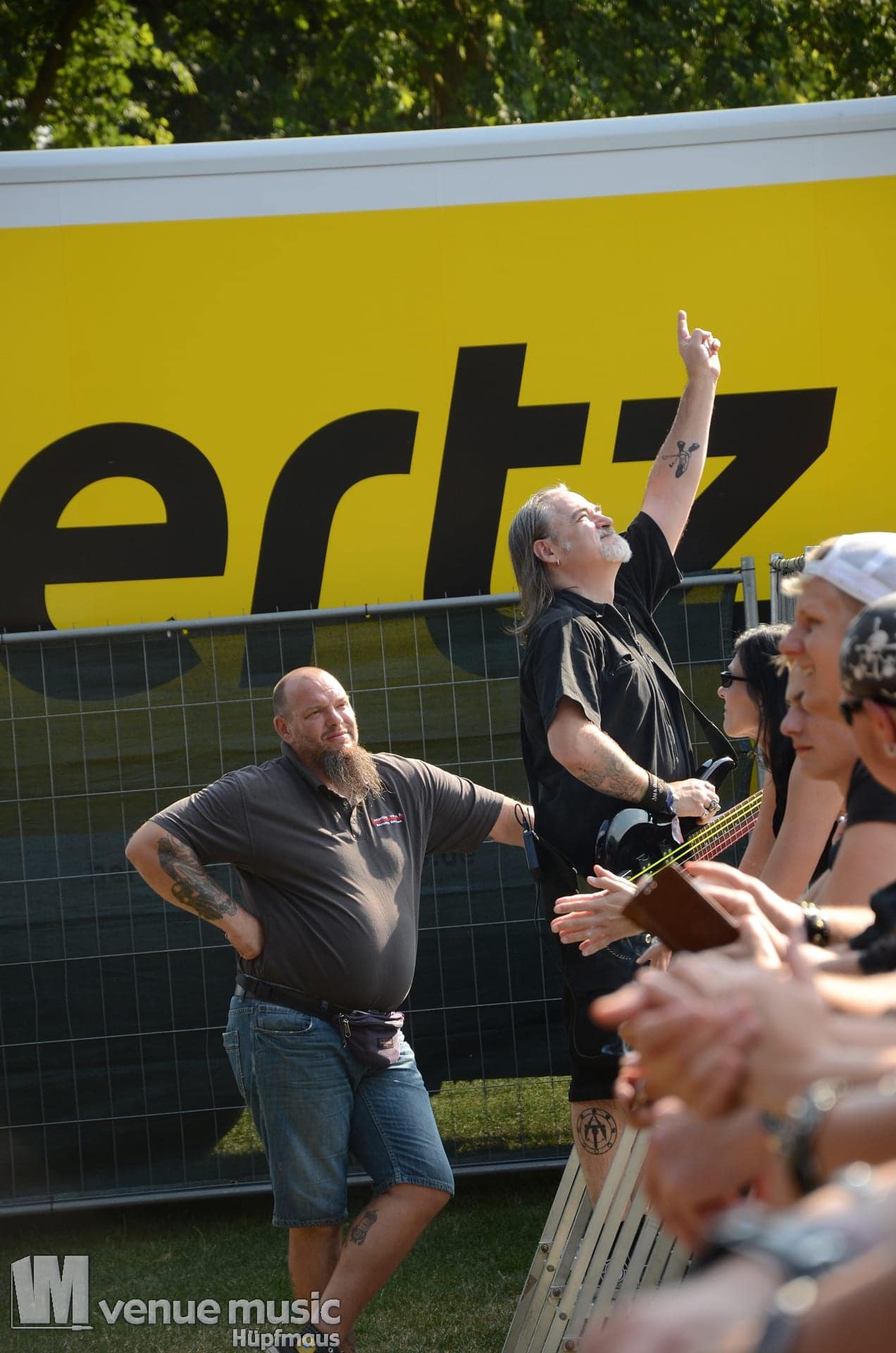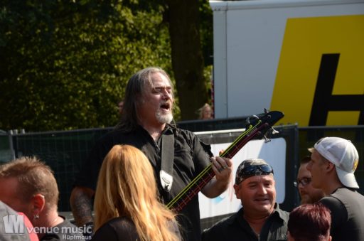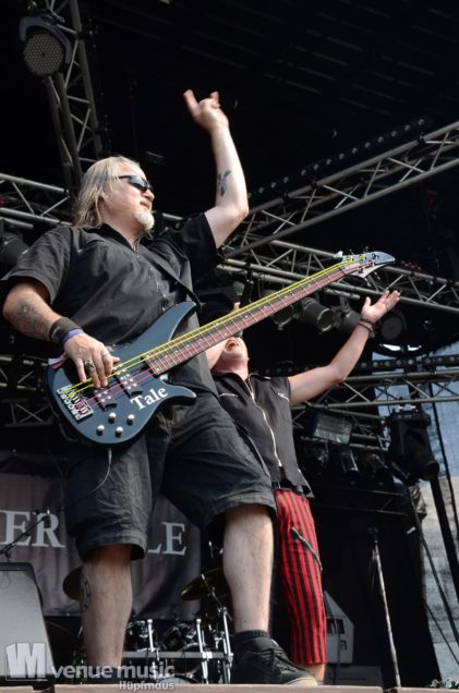 Los ging es aber zunächst mit Another Tale, die bereits letztes Jahr für gute Stimmung gesorgt hatten. Bei bestem Wetter hatten sie mächtig Spaß auf der Bühne – und das Publikum direkt mit. Zwischendurch war Bassist Andreas Baumert immer wieder im Publikum zu sehen. Er hatte Spaß, während der Songs durch den Fotograben und über das ganze Gelände zu laufen. Natürlich spielte er dabei weiter. Irgendwann gab es dann sogar schon eine Vermisstenmeldung von der Bühne „wir hatten doch auch mal einen Bassisten?!?“ ;) Ein sehr gelungener Einstieg für das Festivalwochenende, so konnte es weiter gehen!