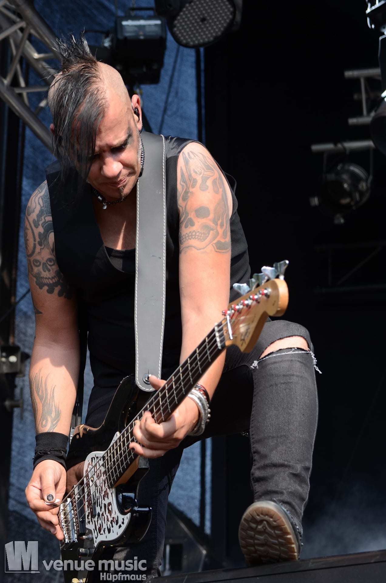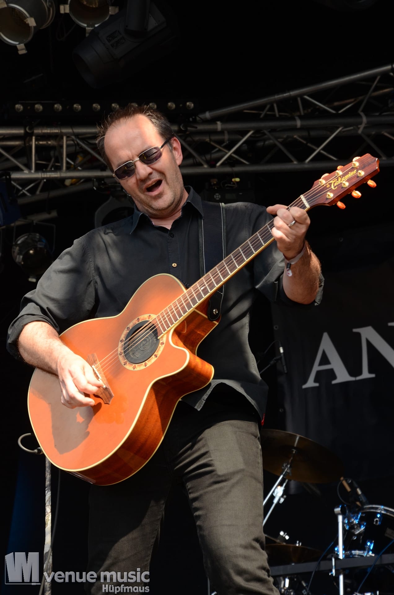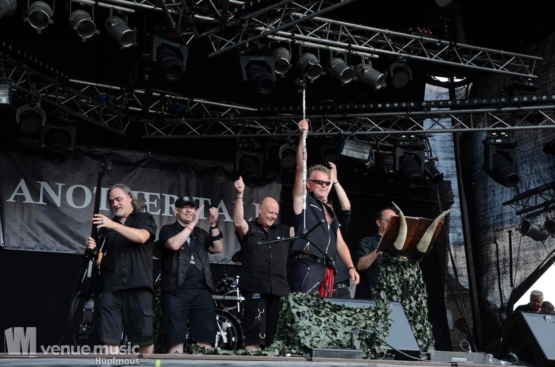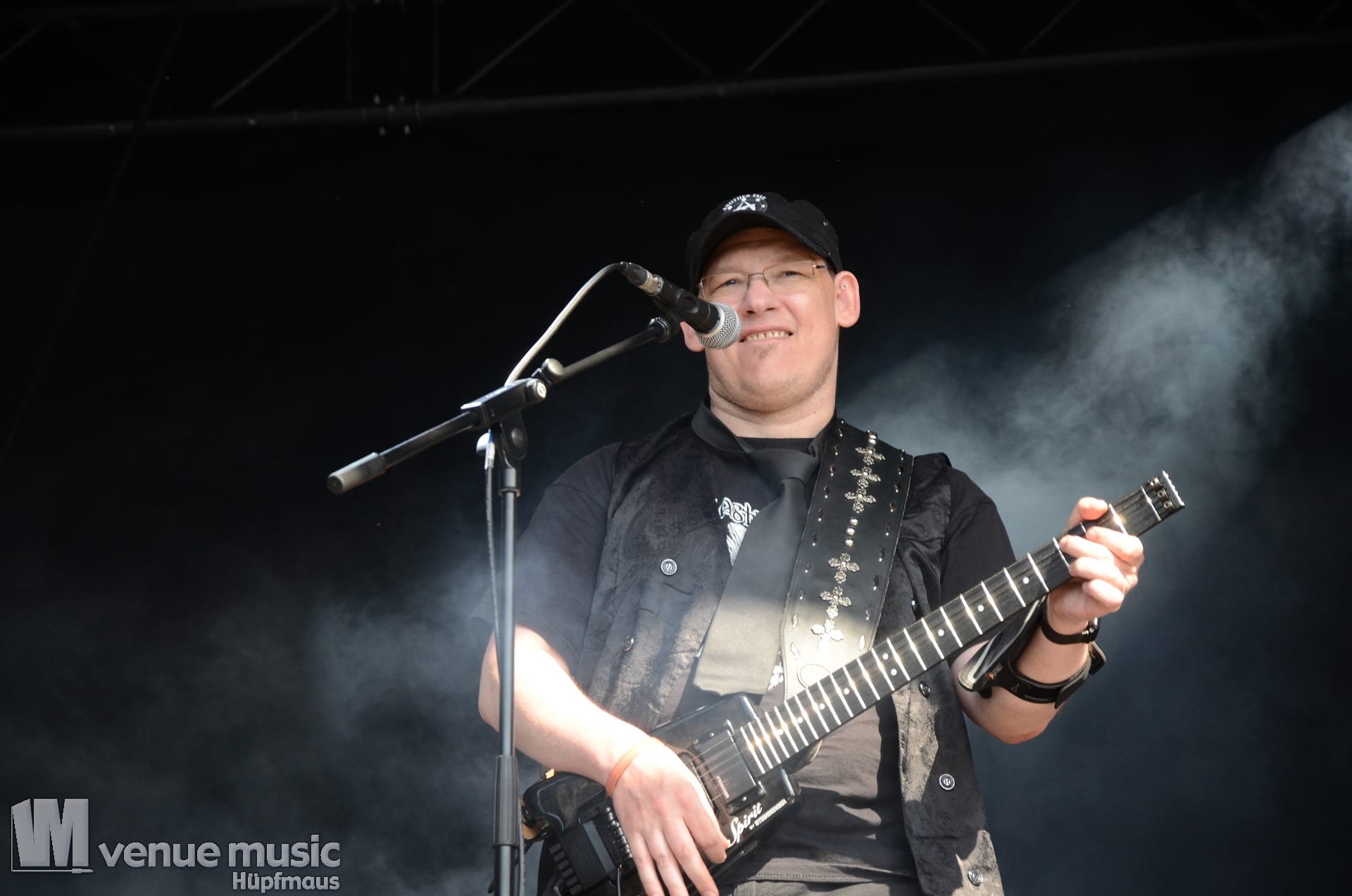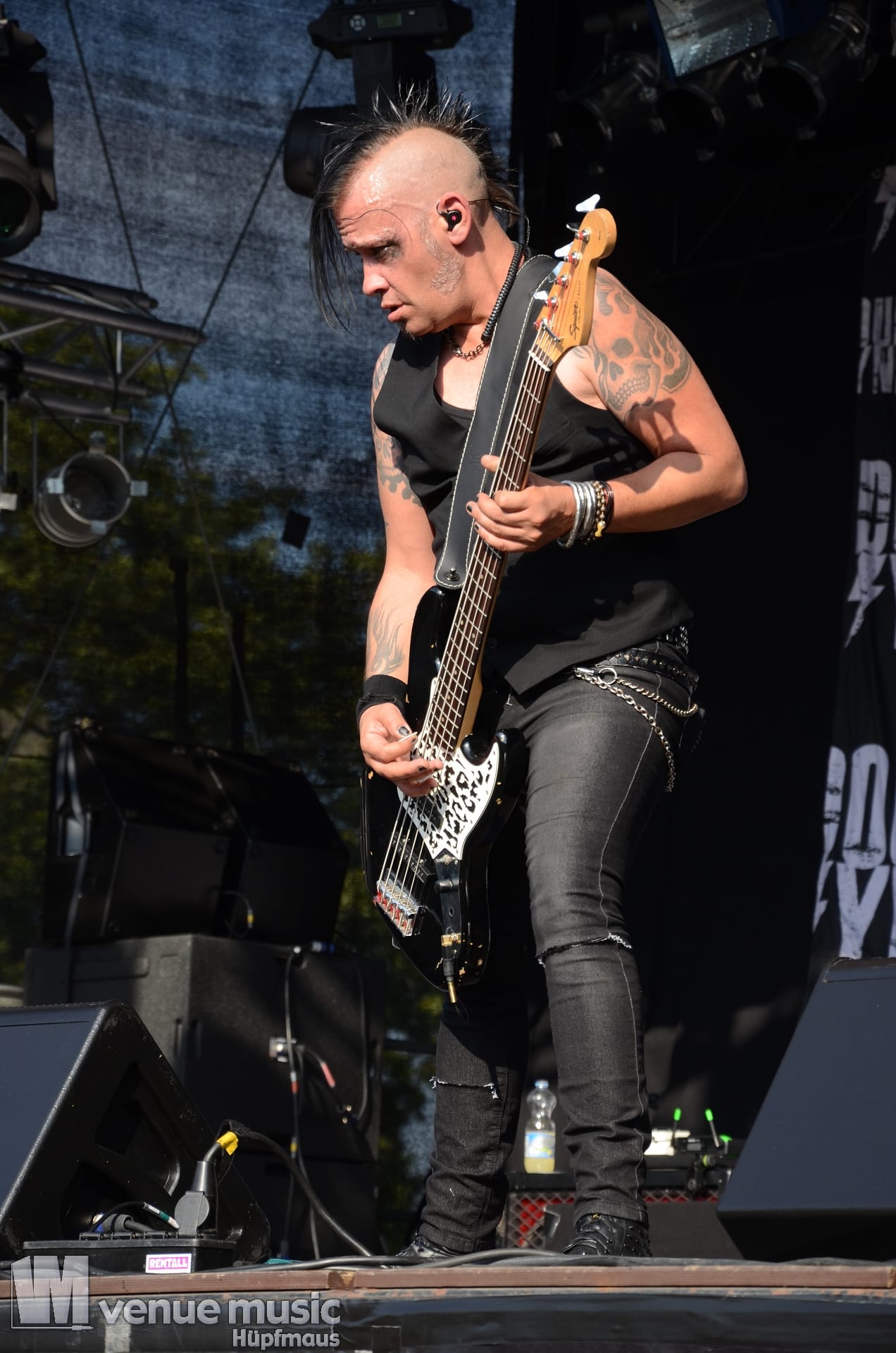 Los ging es aber zunächst mit Another Tale, die bereits letztes Jahr für gute Stimmung gesorgt hatten. Bei bestem Wetter hatten sie mächtig Spaß auf der Bühne – und das Publikum direkt mit. Zwischendurch war Bassist Andreas Baumert immer wieder im Publikum zu sehen. Er hatte Spaß, während der Songs durch den Fotograben und über das ganze Gelände zu laufen. Natürlich spielte er dabei weiter. Irgendwann gab es dann sogar schon eine Vermisstenmeldung von der Bühne „wir hatten doch auch mal einen Bassisten?!?“ ;) Ein sehr gelungener Einstieg für das Festivalwochenende, so konnte es weiter gehen!