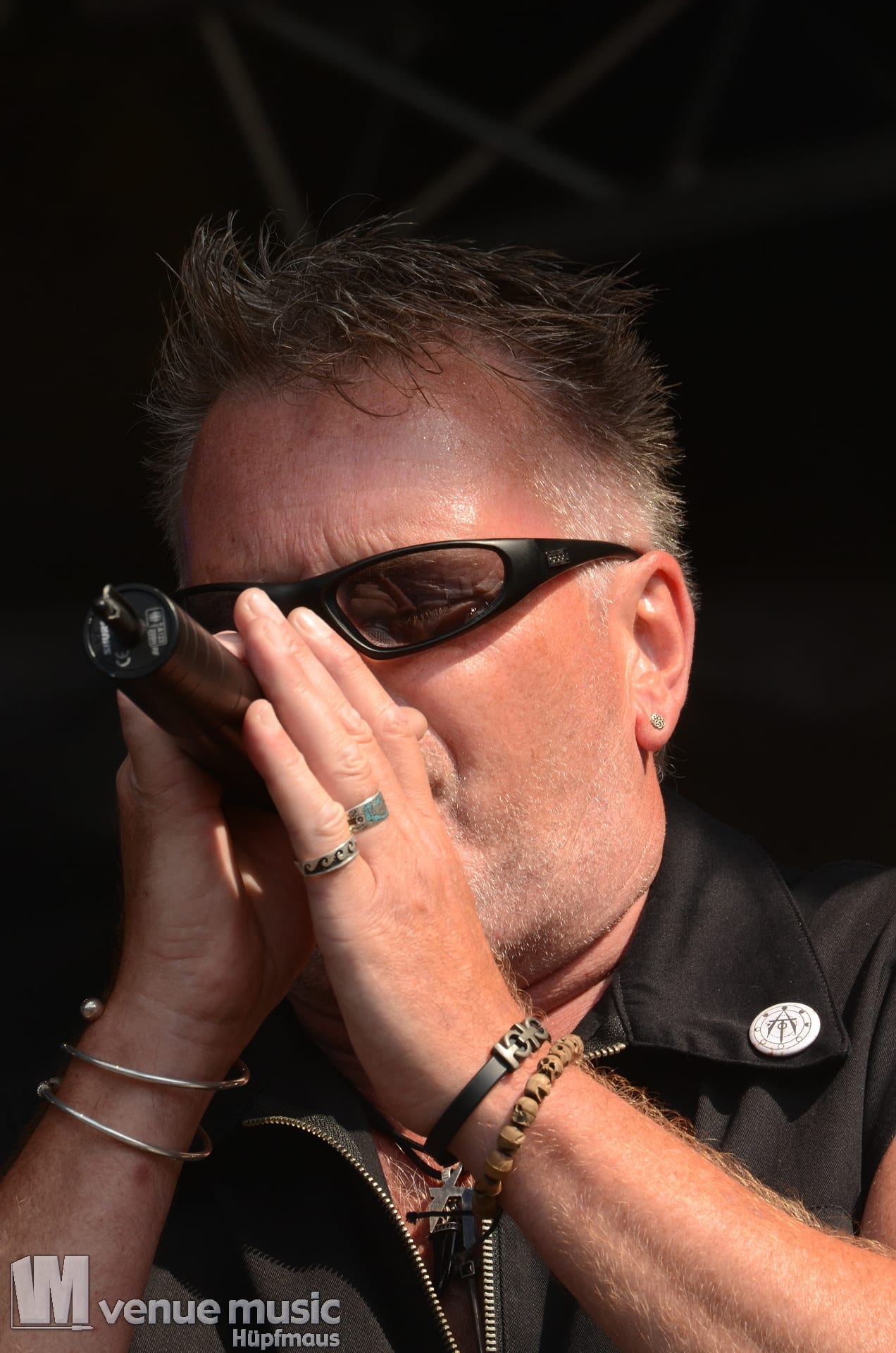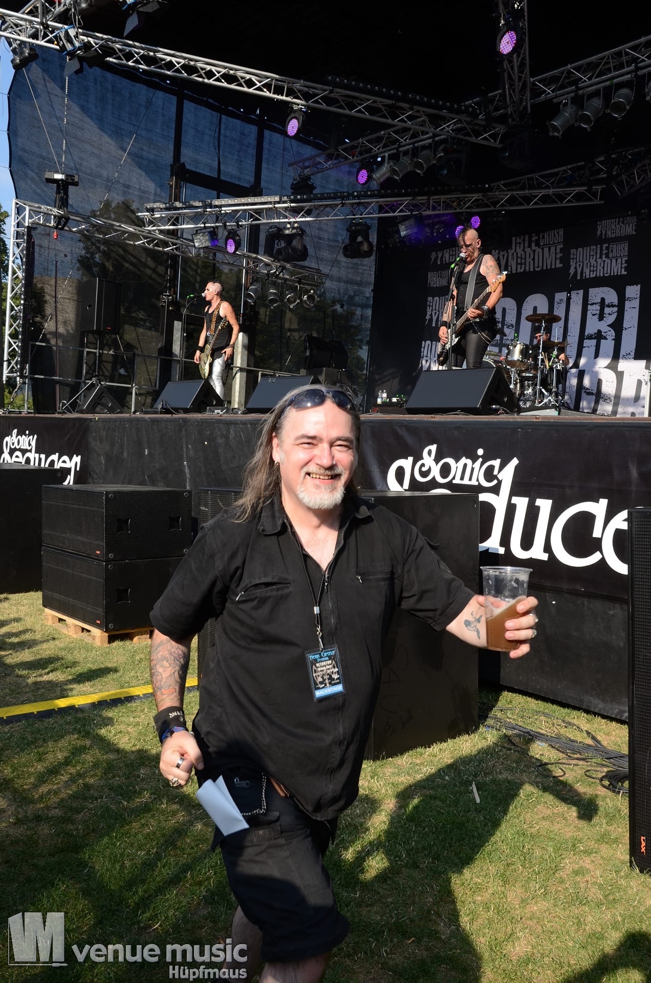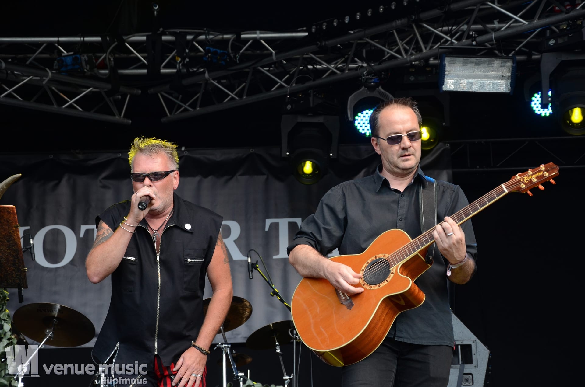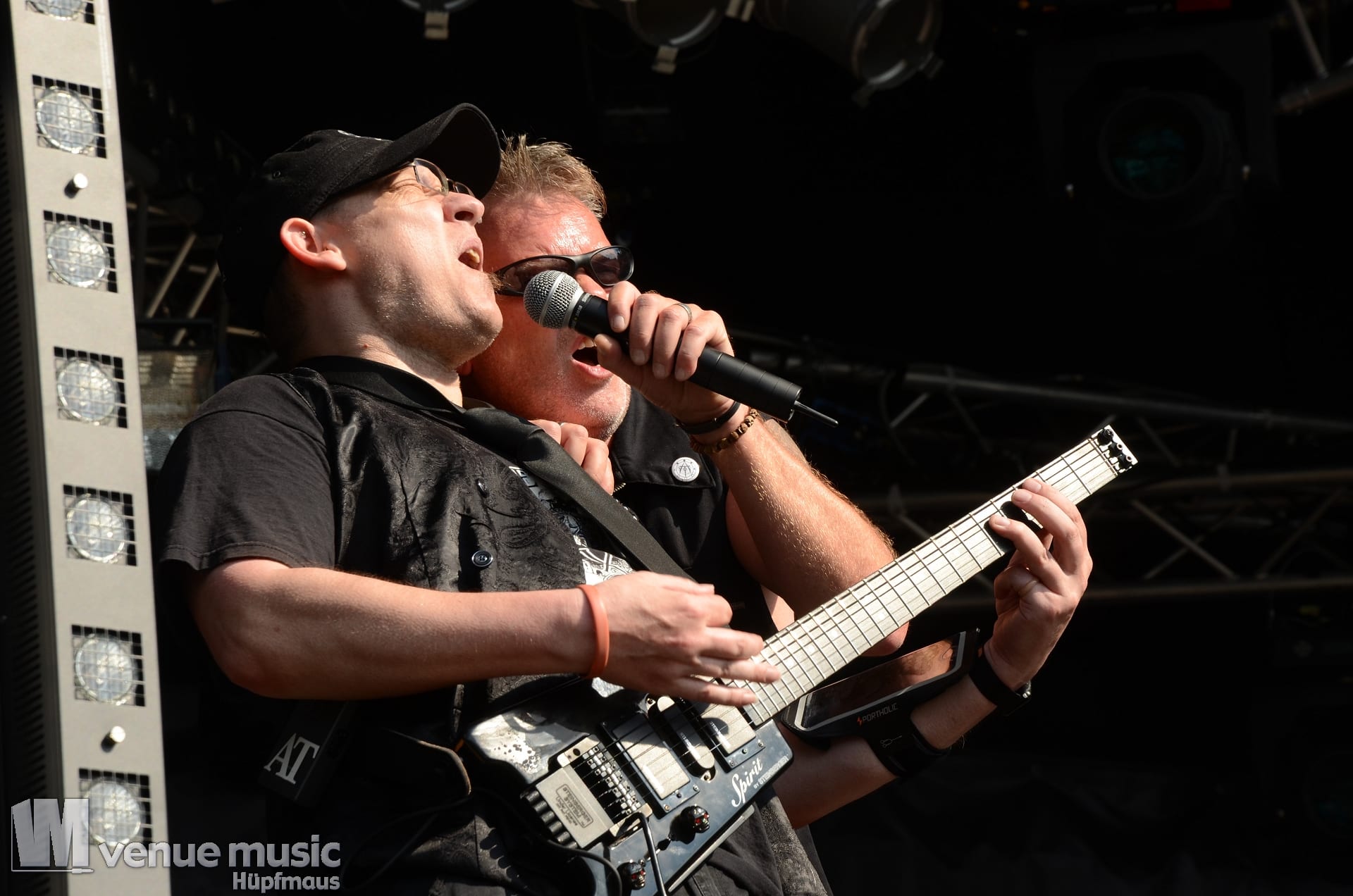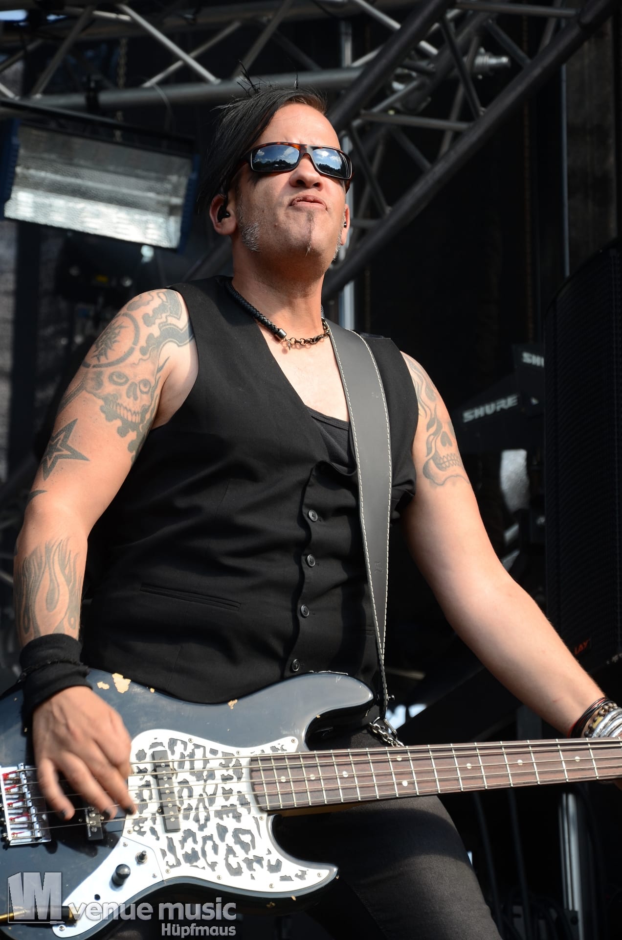 Los ging es aber zunächst mit Another Tale, die bereits letztes Jahr für gute Stimmung gesorgt hatten. Bei bestem Wetter hatten sie mächtig Spaß auf der Bühne – und das Publikum direkt mit. Zwischendurch war Bassist Andreas Baumert immer wieder im Publikum zu sehen. Er hatte Spaß, während der Songs durch den Fotograben und über das ganze Gelände zu laufen. Natürlich spielte er dabei weiter. Irgendwann gab es dann sogar schon eine Vermisstenmeldung von der Bühne „wir hatten doch auch mal einen Bassisten?!?“ ;) Ein sehr gelungener Einstieg für das Festivalwochenende, so konnte es weiter gehen!