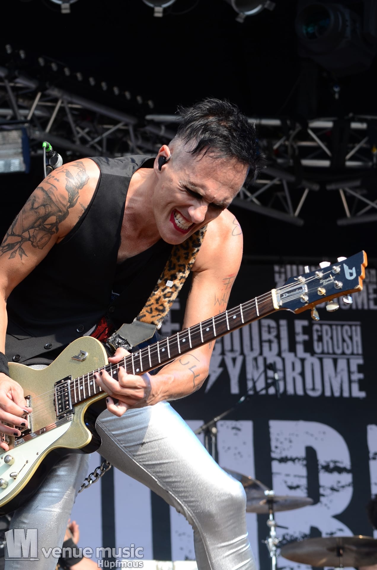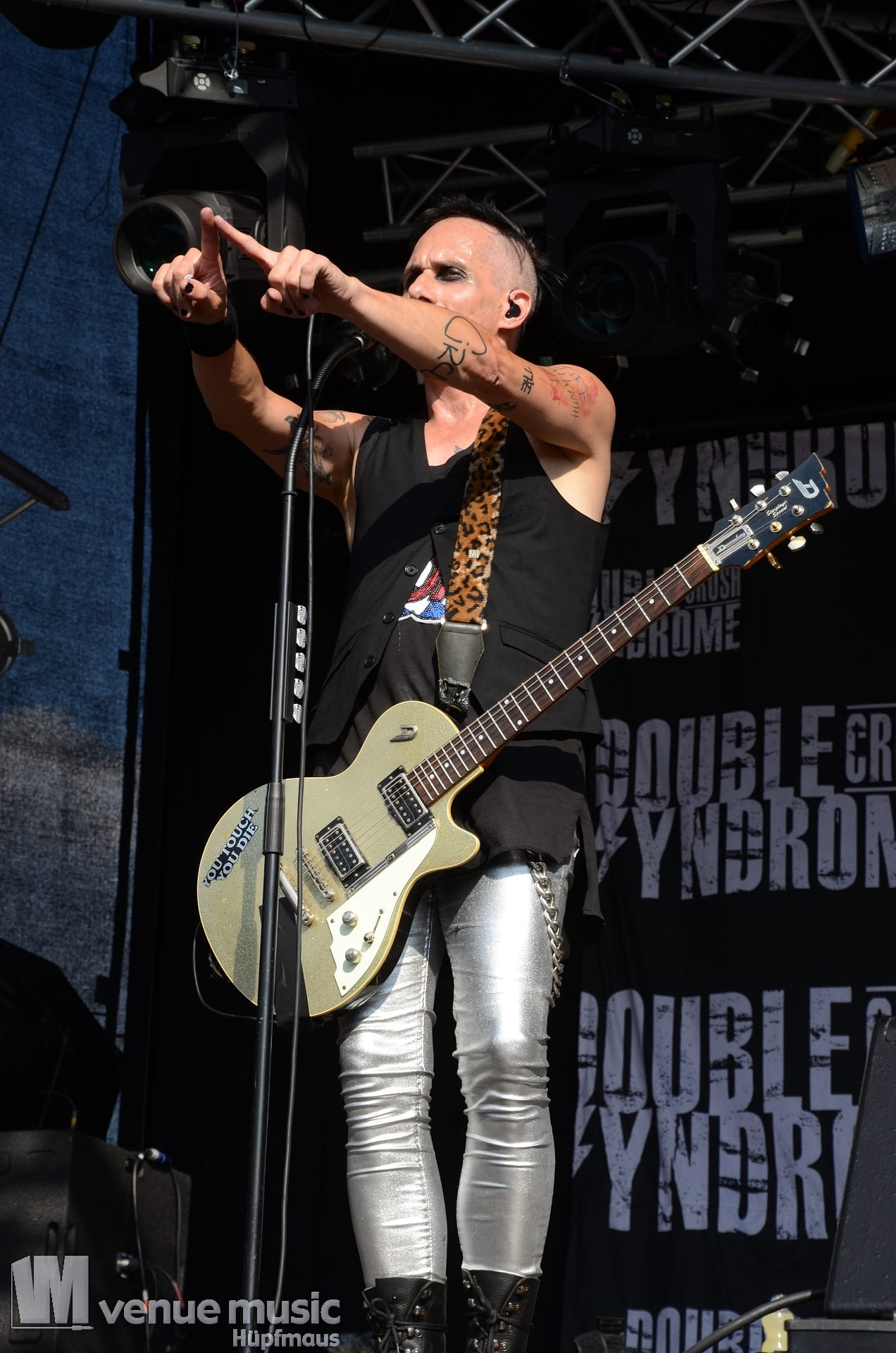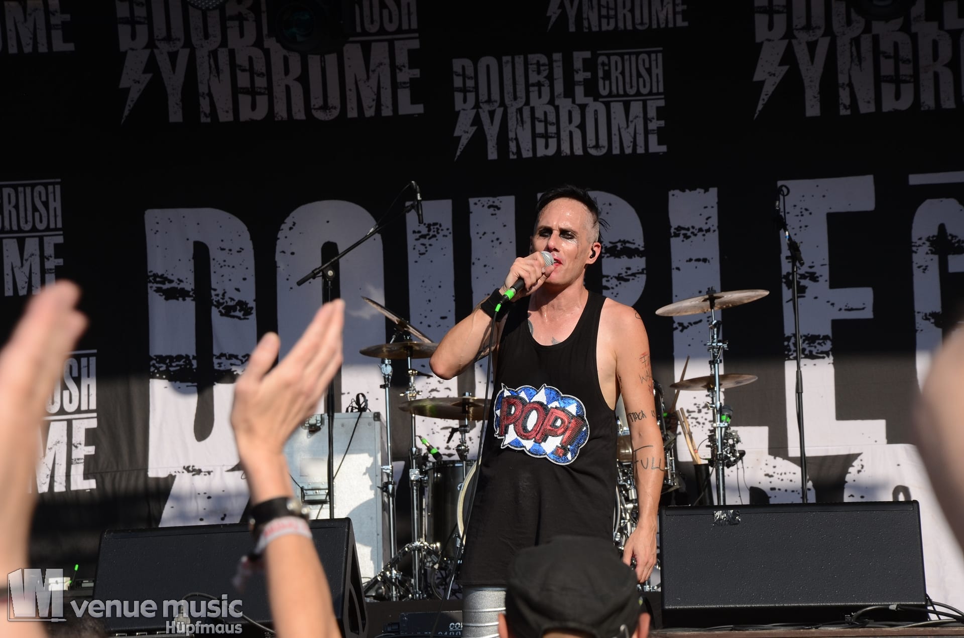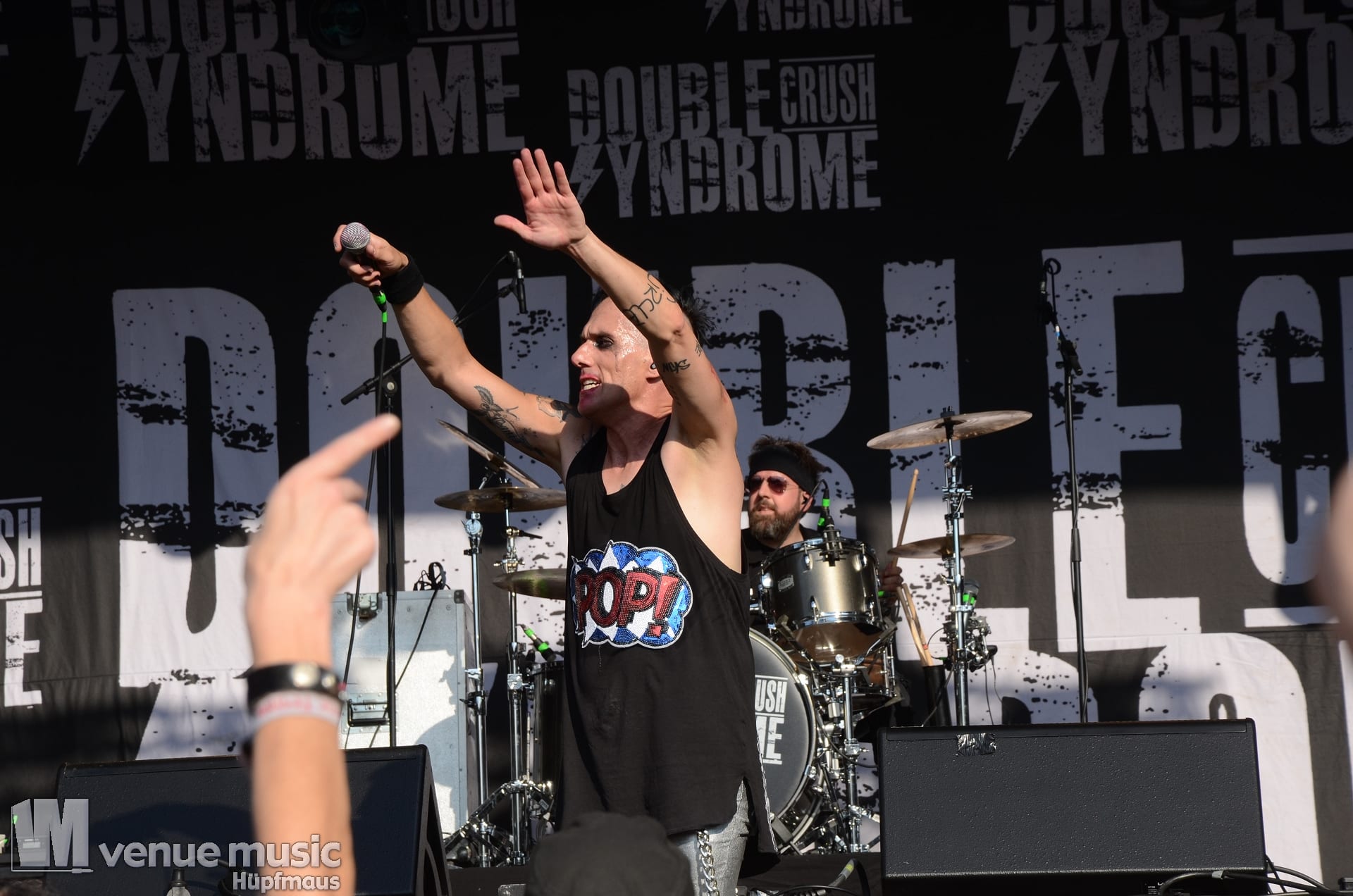 Als nächstes waren dann Double Crush Syndrome an der Reihe, die das Publikum sicher schon ein bisschen mehr polarisierten und mit ihrem Punk´n´Roll aber ebenfalls mächtig Stimmung machten. OK, über das Outfit von Andy Brings wollen wir mal nicht sprechen – wobei es eher die Schmink(nicht-)künste waren, die mehr so an einen Dreijährigen erinnerten, der seiner Mama den Lippenstift geklaut hat ;) aber was solls, es passte zu den drei Verrückten, die so richtig los rockten. Und schließlich ist das Outfit nur Nebensache – es geht schließlich um die Musik!
