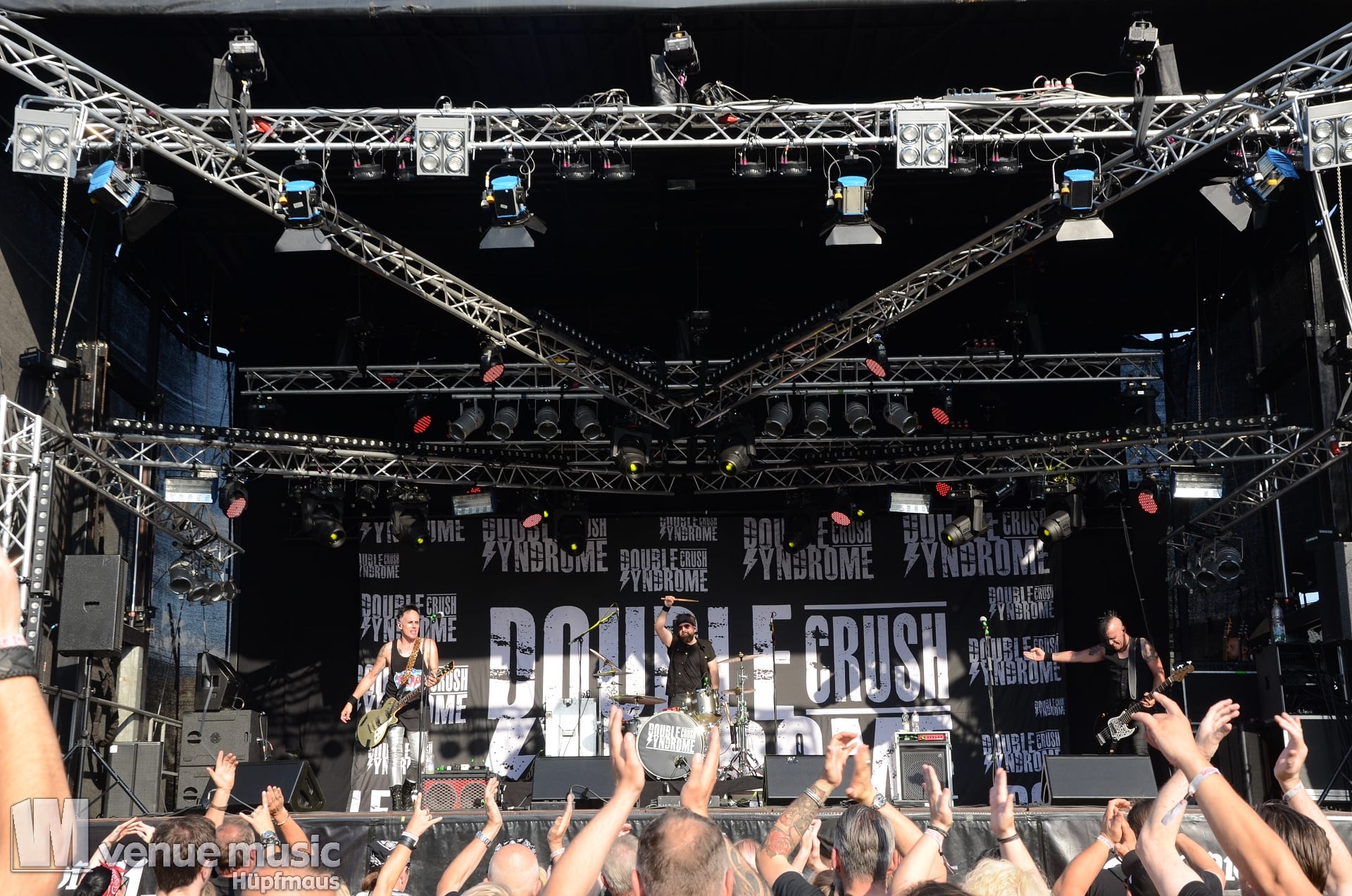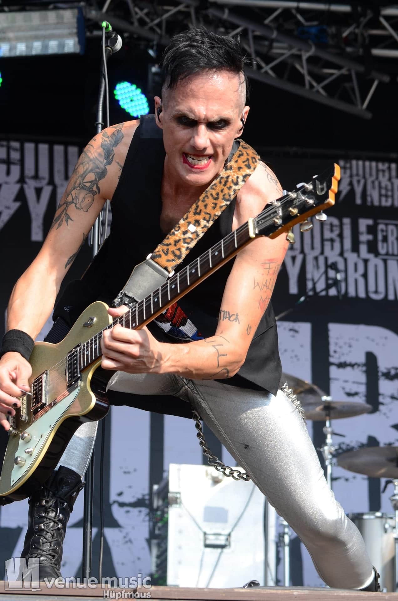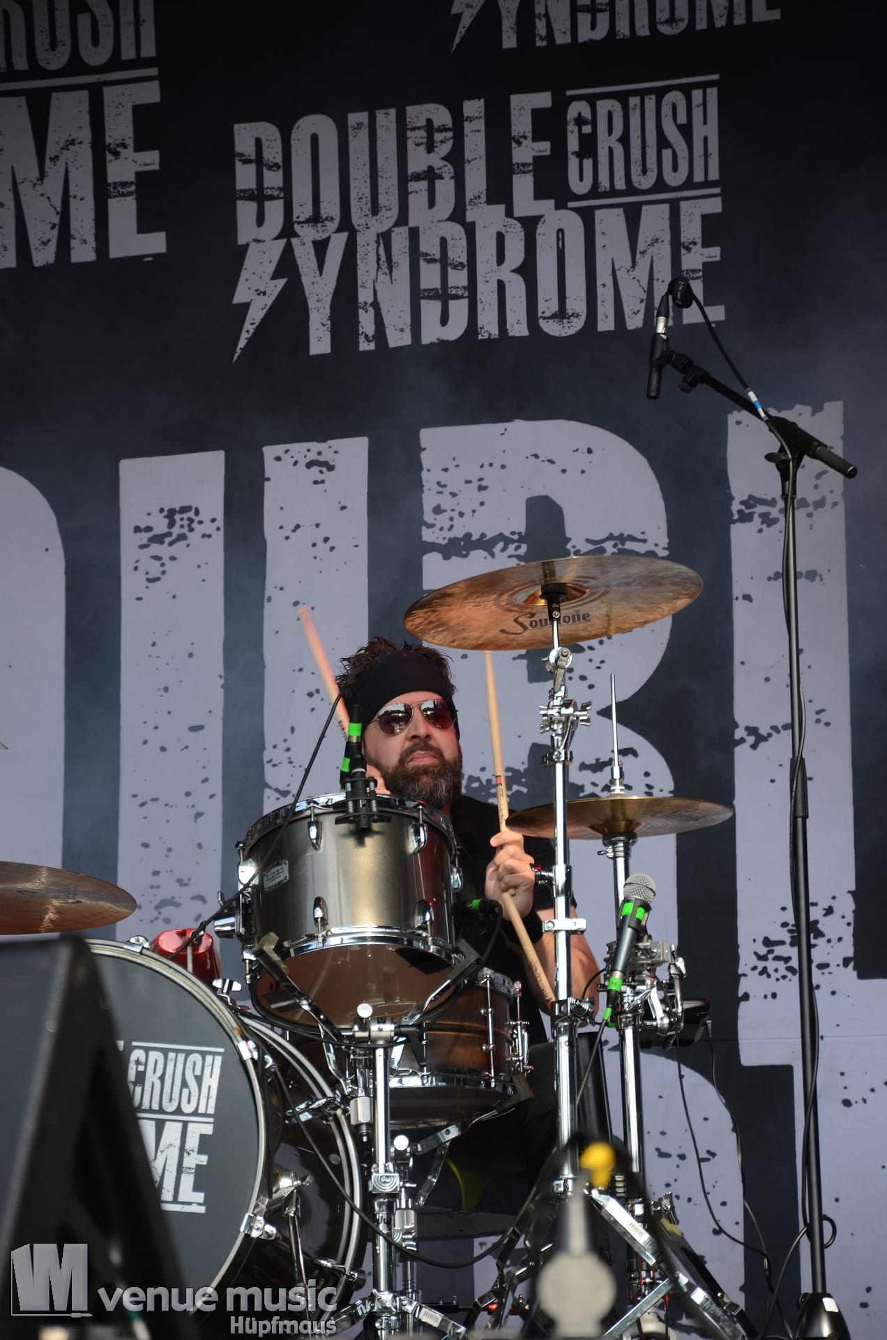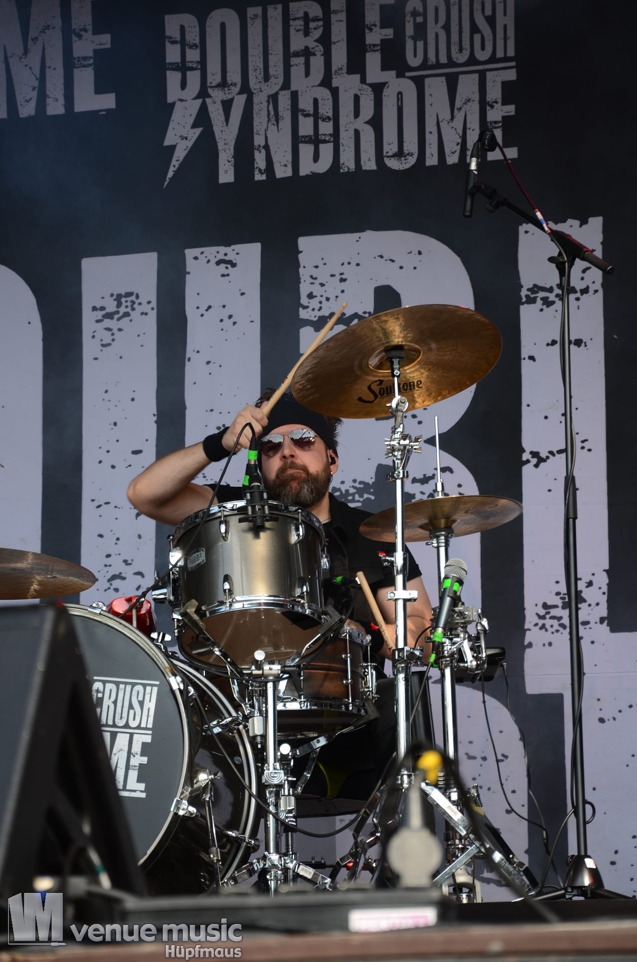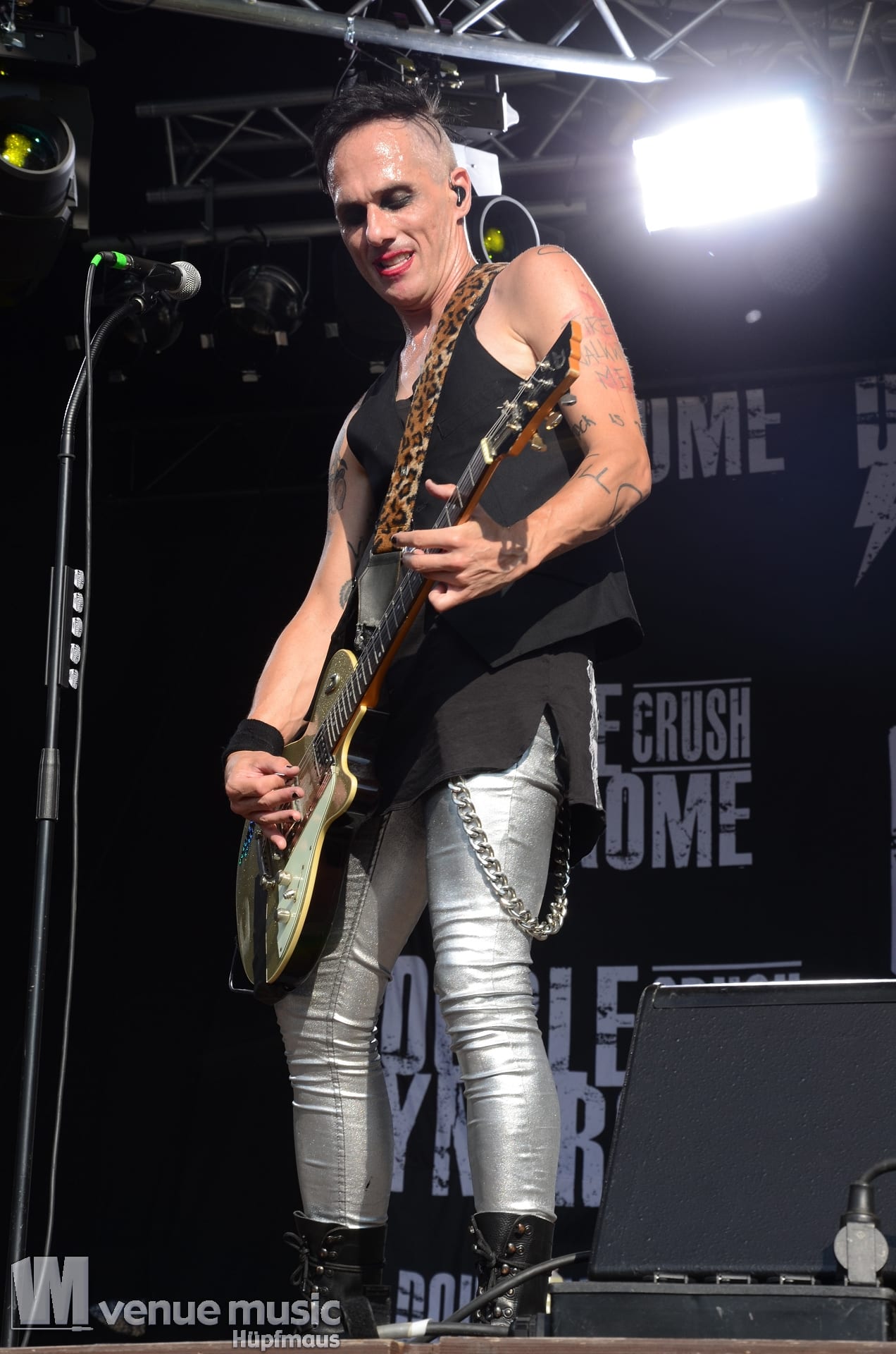 Als nächstes waren dann Double Crush Syndrome an der Reihe, die das Publikum sicher schon ein bisschen mehr polarisierten und mit ihrem Punk´n´Roll aber ebenfalls mächtig Stimmung machten. OK, über das Outfit von Andy Brings wollen wir mal nicht sprechen – wobei es eher die Schmink(nicht-)künste waren, die mehr so an einen Dreijährigen erinnerten, der seiner Mama den Lippenstift geklaut hat ;) aber was solls, es passte zu den drei Verrückten, die so richtig los rockten. Und schließlich ist das Outfit nur Nebensache – es geht schließlich um die Musik!