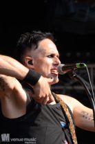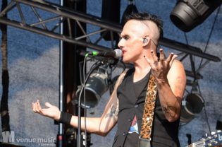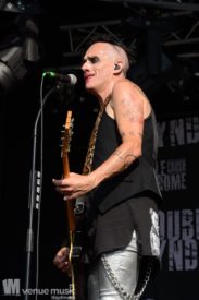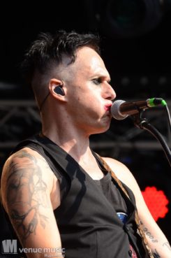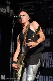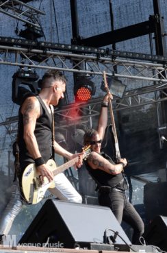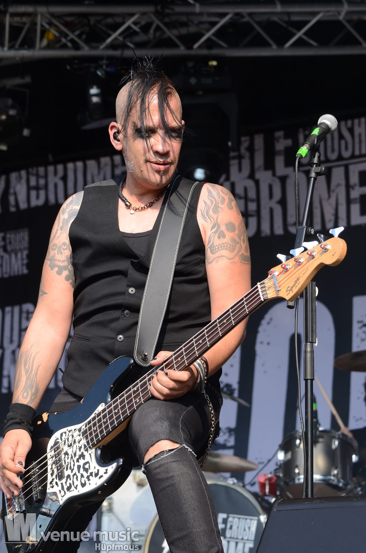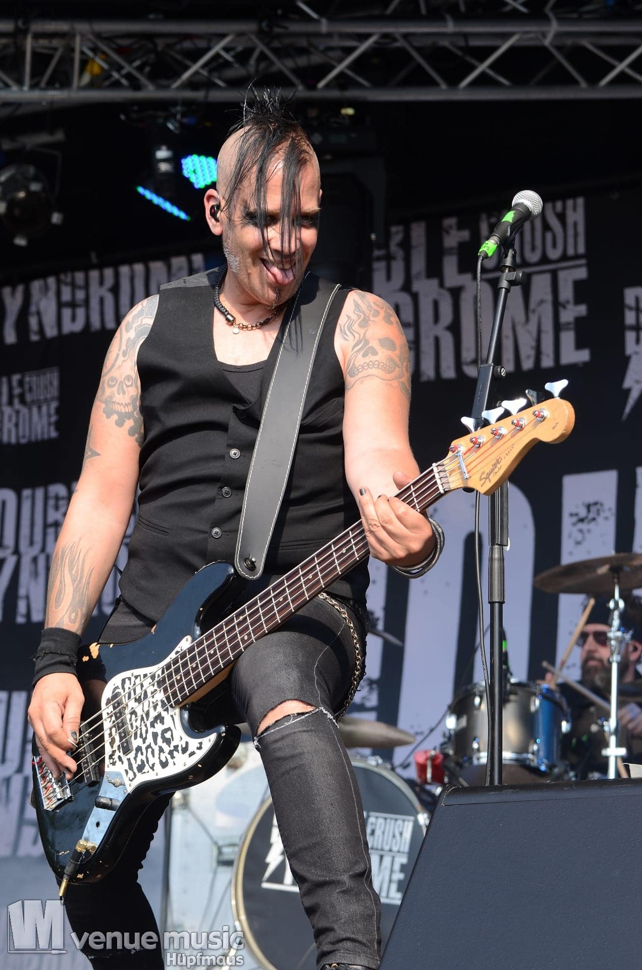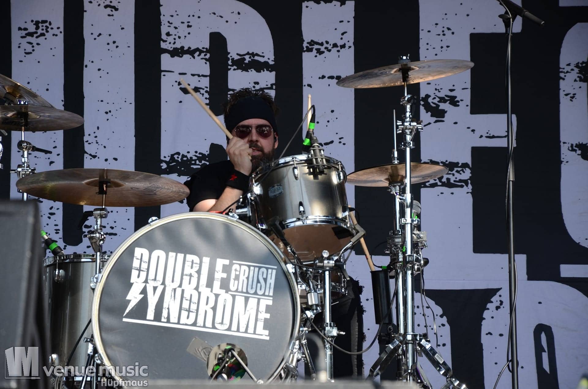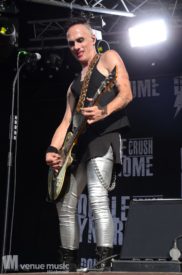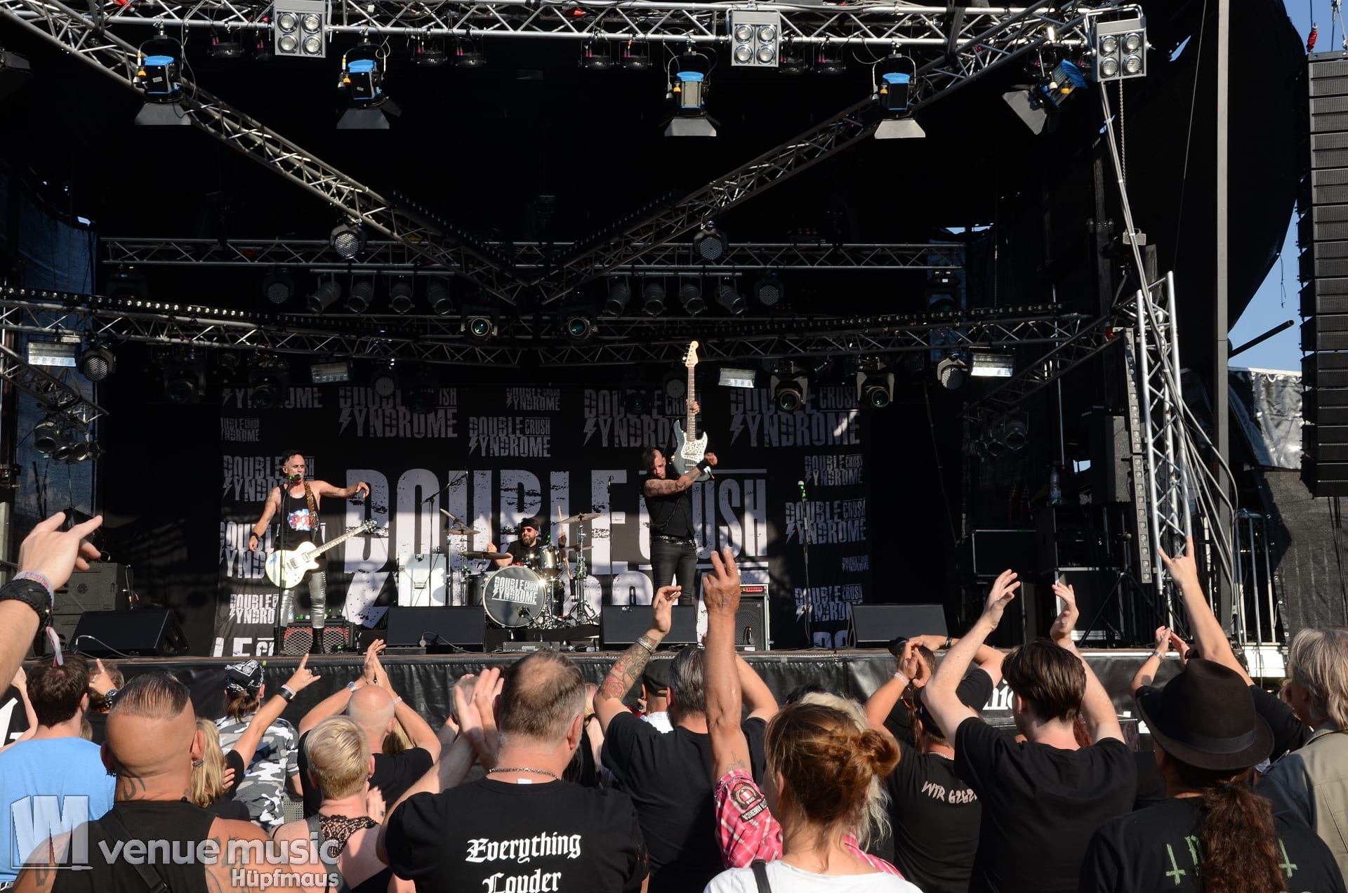 Als nächstes waren dann Double Crush Syndrome an der Reihe, die das Publikum sicher schon ein bisschen mehr polarisierten und mit ihrem Punk´n´Roll aber ebenfalls mächtig Stimmung machten. OK, über das Outfit von Andy Brings wollen wir mal nicht sprechen – wobei es eher die Schmink(nicht-)künste waren, die mehr so an einen Dreijährigen erinnerten, der seiner Mama den Lippenstift geklaut hat ;) aber was solls, es passte zu den drei Verrückten, die so richtig los rockten. Und schließlich ist das Outfit nur Nebensache – es geht schließlich um die Musik!