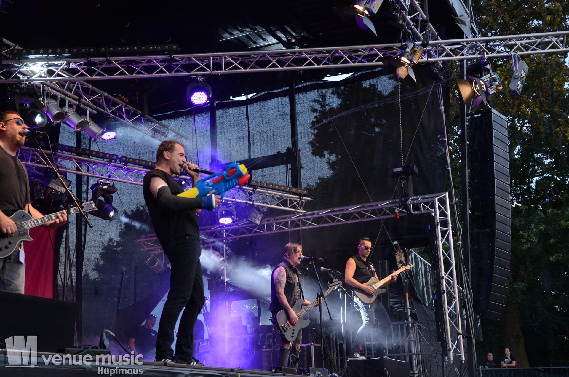 Weiter ging es am Freitag des Near Castle 2019 – dem Tag der lokalen Bands – mit den Lokalmatadoren. Das war die Band des Festivals, die das Publikum am meisten spaltete. Denn an sich war es eine Band, die sonst eher nicht auf einem Castle Rock gespielt hätte. Viele des eher schwarzen Publikums waren nicht so überzeugt von der Bandwahl, viele andere hatten ziemlich viel Spaß und feierten die Songs ab. Klar, diese Art Punk ist vielleicht sonst nicht auf einem Castle Rock vertreten, aber wer einfach mal abfeiern und diverse Bierchen trinken wollte, der konnte bei bestem Wetter das Ganze einfach genießen. Und alle anderen: einfach Augen zu und durch ;)