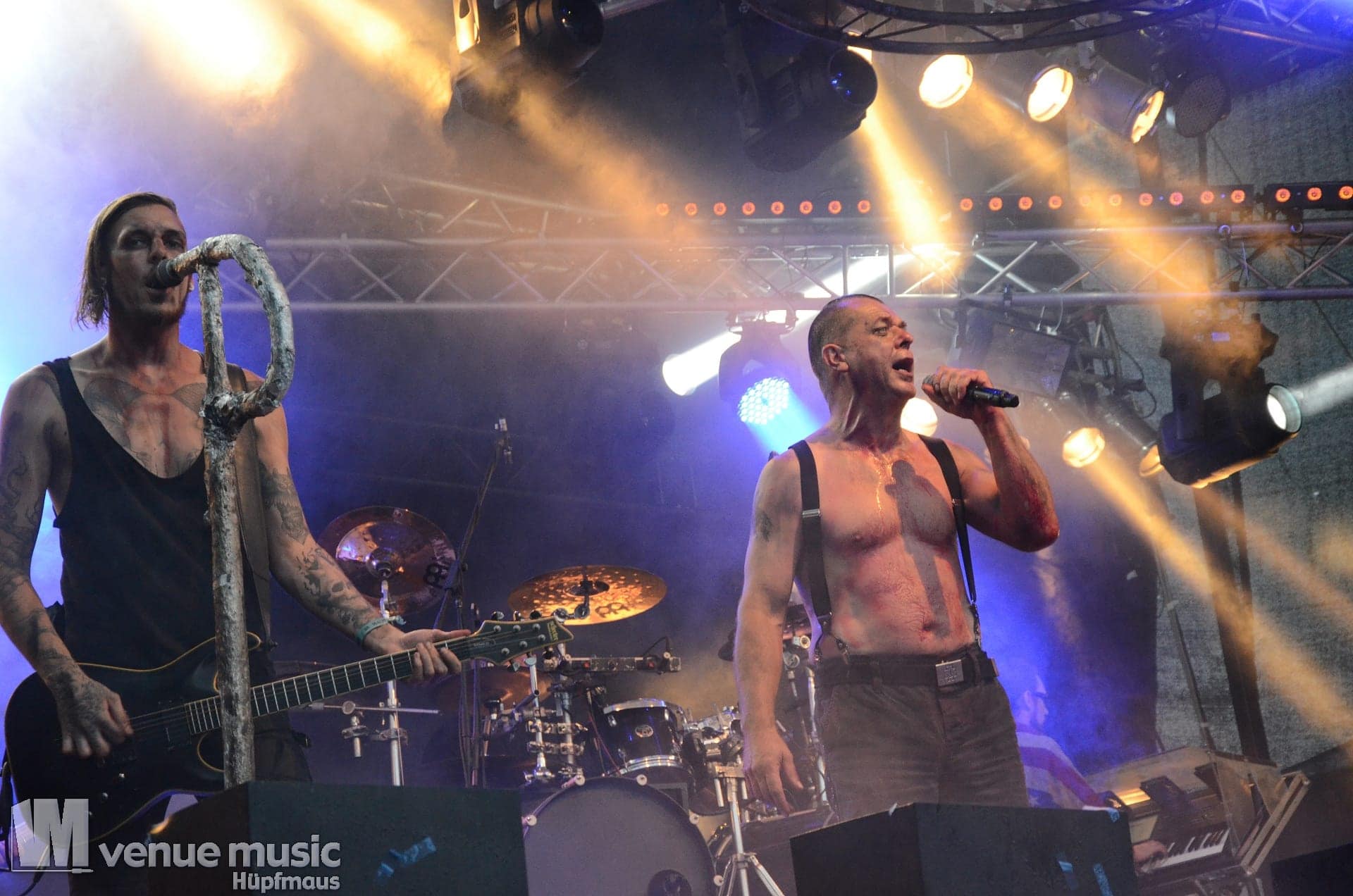 Wenn man schon keine Karten für Rammstein bekommt, dann ist ein absolut würdiger Ersatz eine Show von Stahlzeit – der Rammstein Tribute Show. Daher habe ich mich sehr darauf gefreut, sie auf dem Near Castle endlich mal live sehen zu können. Mit Maerzfeld waren sie bereits in Mülheim zu Gast, doch die Tribute Show konnte ich noch nicht selbst erleben.