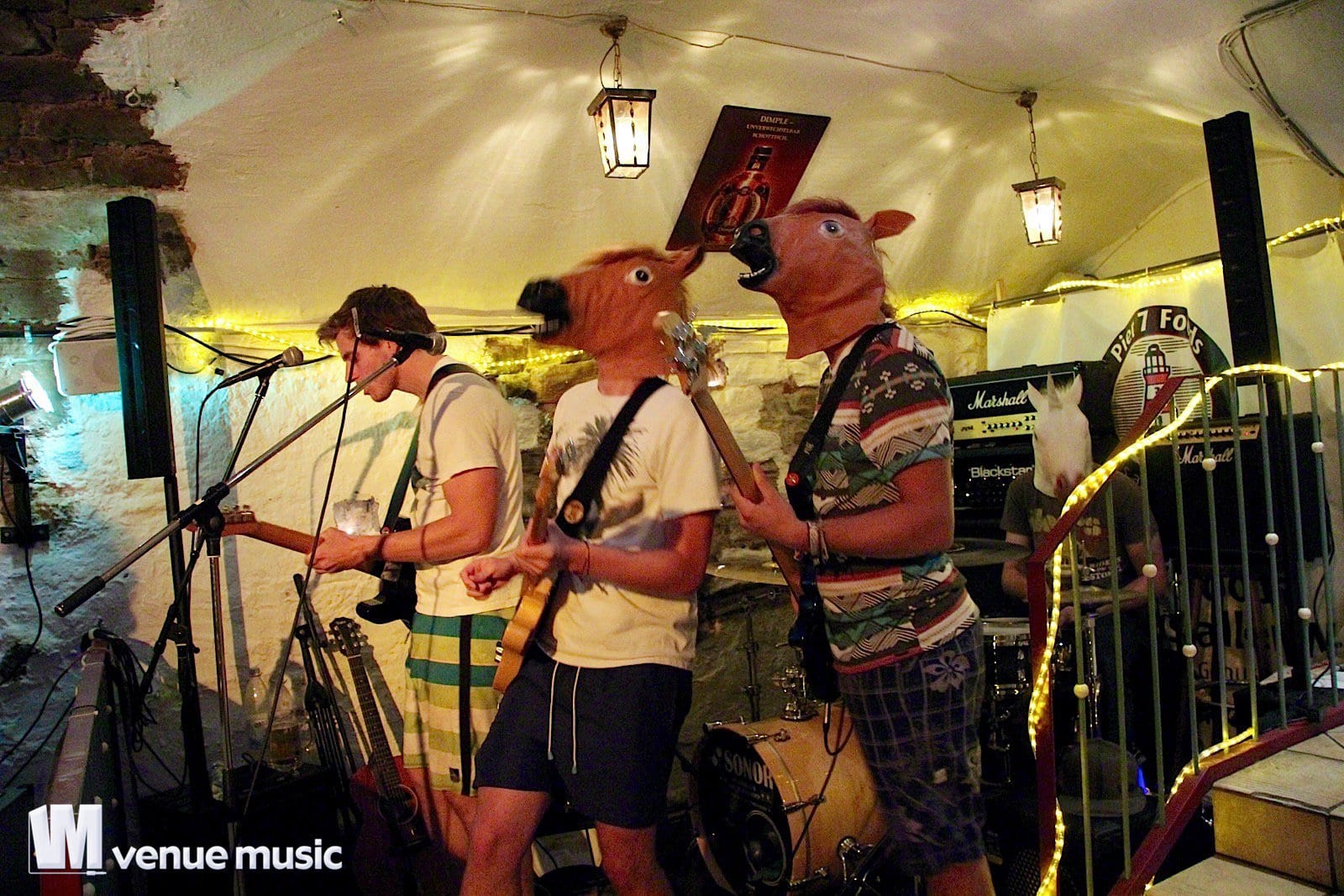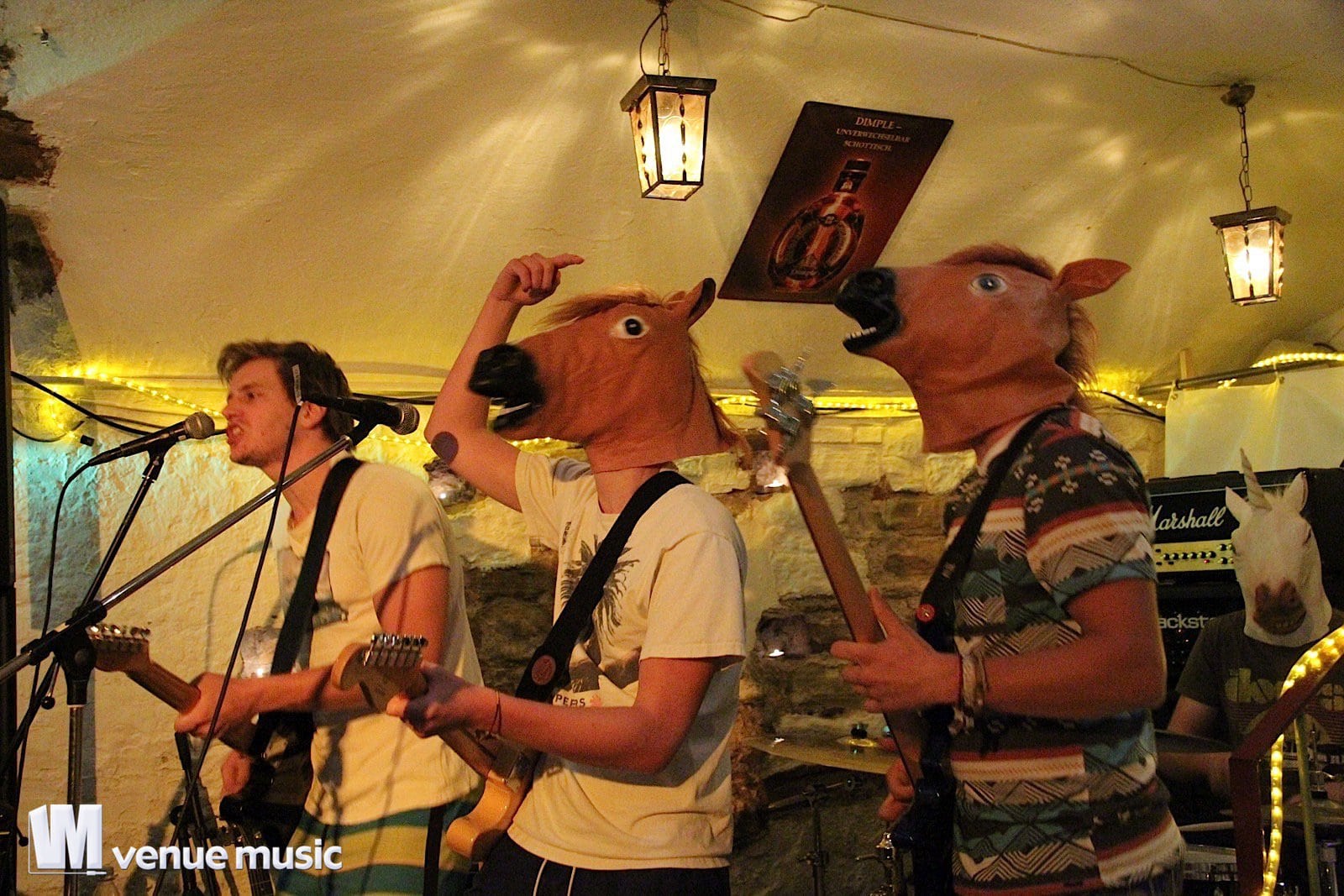 Die Show der Surfing Horses zeichneten – neben ihrem musikalischen Können natürlich – zwei Besonderheiten aus: Die Pferdemaske (die aber in Anbetracht der Temperaturen im Keller nicht lange zum Einsatz kam) und der Verzicht auf Schuhwerk. Zumindest kann man bei einer Show dieser Band sicher sein, dass auf der Bühne alle gewaschene Füsse haben ;) Es ist schwer zu glauben, dass sich diese vier Musiker erst vor einem Jahr in dieser Formation zusammen gefunden haben. Mit 728 Punkten (nach der ersten Auszählung am Abend) belohnten Jury und Publikum den Auftritt.