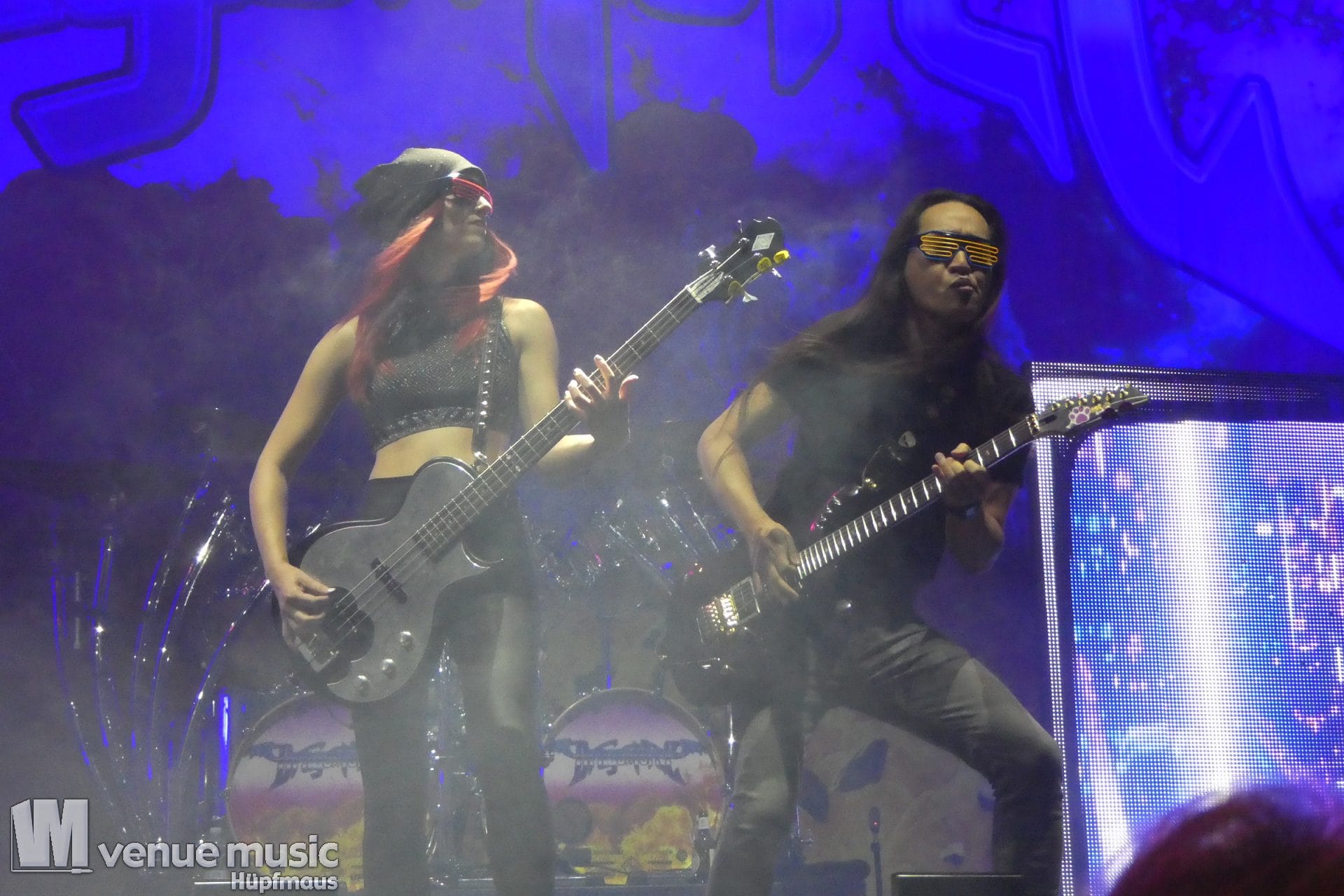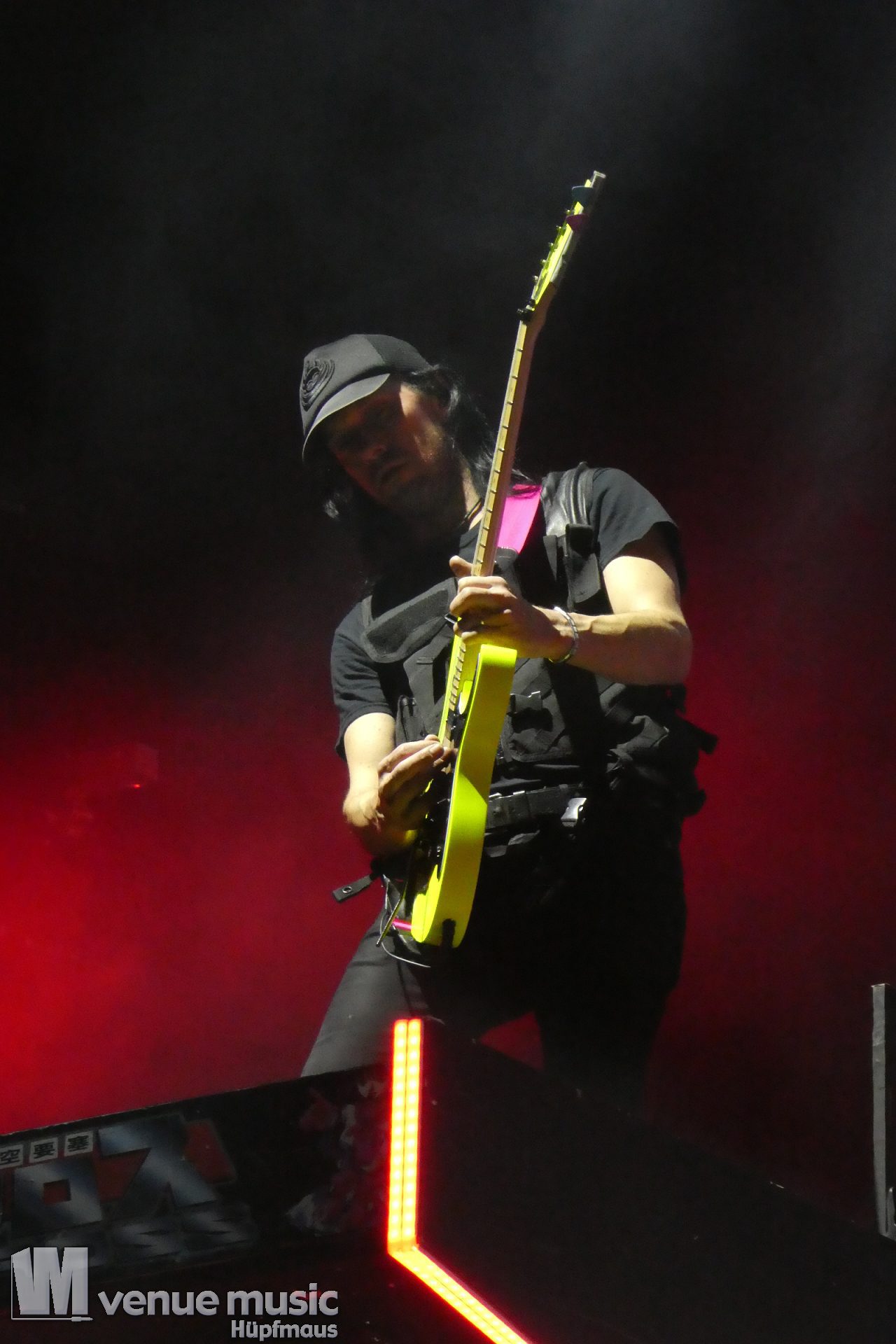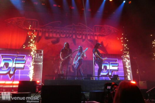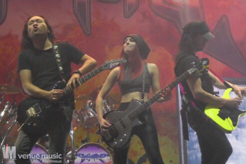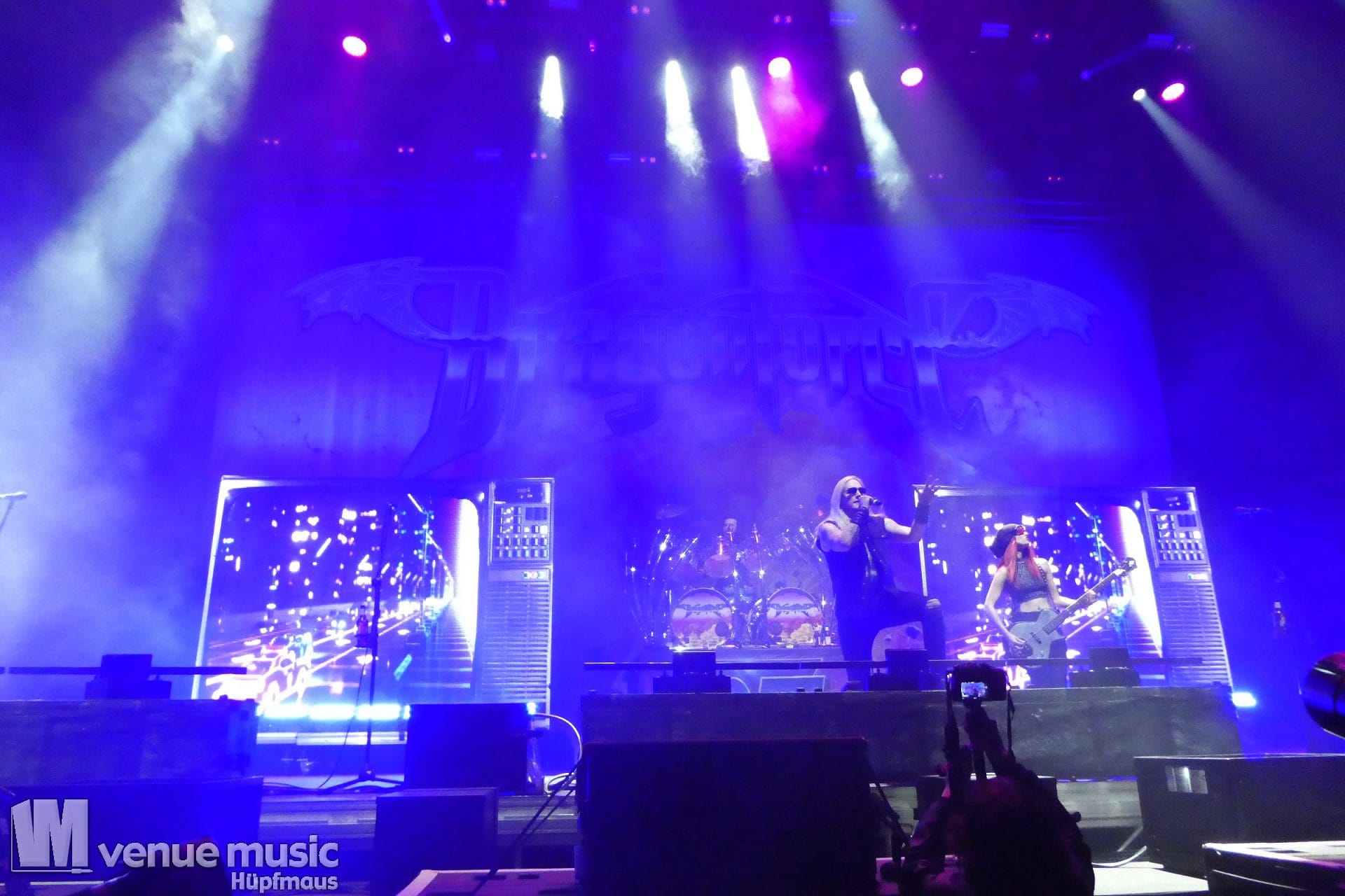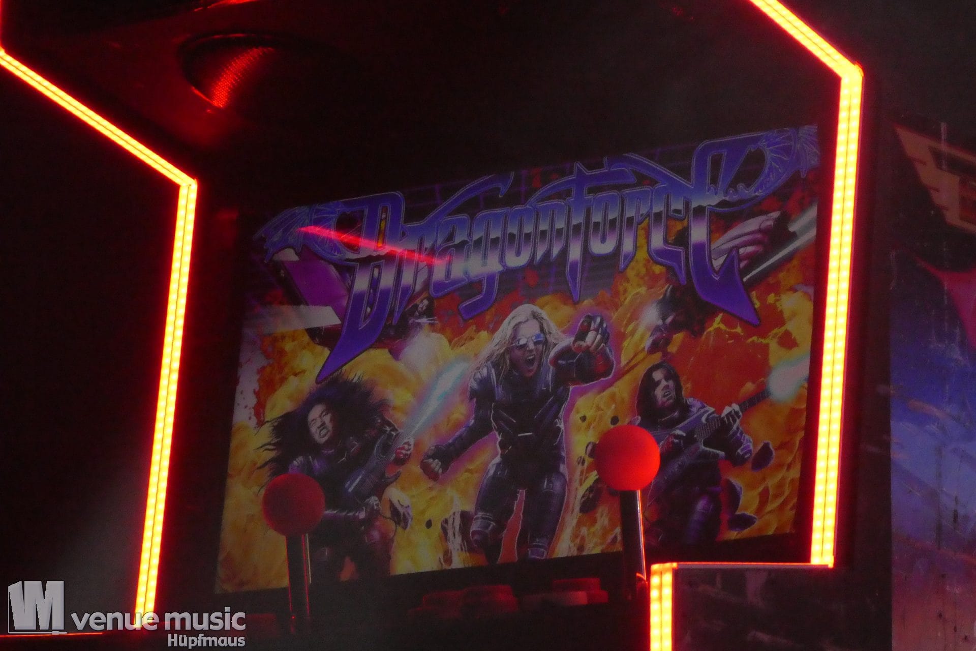 Dragonfoce hatte ich zuletzte vor ewigen Jahren gesehen und war komplett verdutzt, als der Sänger auf die Bühne kam – kannte ich doch noch ZP Theart am Mikro. Der Unterschied ist doch riesig ;) zumindest optisch… aber stimmungsmäßig ging es genau so gut ab wie damals und die Bühnendeko ist ziemlich cool. So sind die Mitglieder von Dragonforce Gamer und genau so wurde die Bühne gestaltet: mit Daddelautomaten als Podeste, auf denen „Spiele“ liefen, in denen die Band selbst als Character zu sehen war. Alleine das war es schon wert, den Auftritt zu sehen. Und dann noch die Energie auf der Bühne – das war megagenial!