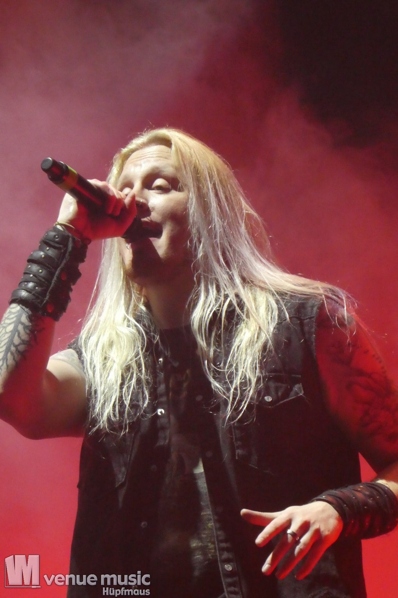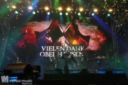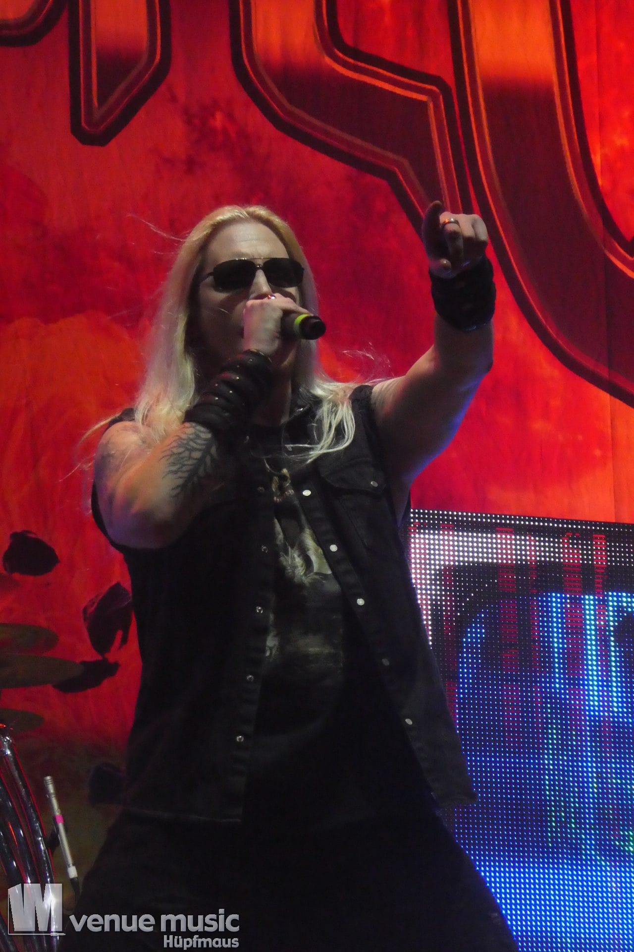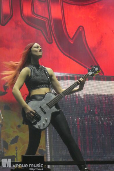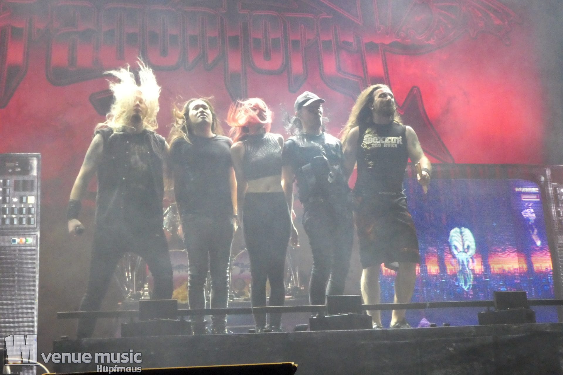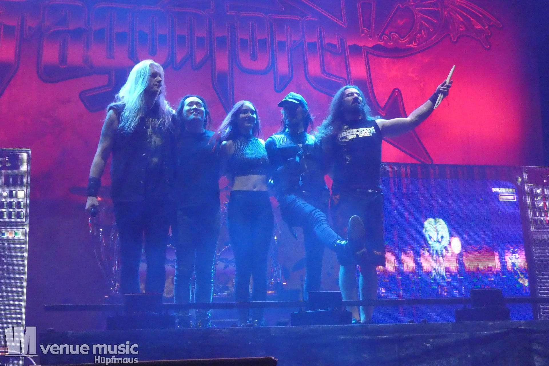 Dragonfoce hatte ich zuletzte vor ewigen Jahren gesehen und war komplett verdutzt, als der Sänger auf die Bühne kam – kannte ich doch noch ZP Theart am Mikro. Der Unterschied ist doch riesig ;) zumindest optisch… aber stimmungsmäßig ging es genau so gut ab wie damals und die Bühnendeko ist ziemlich cool. So sind die Mitglieder von Dragonforce Gamer und genau so wurde die Bühne gestaltet: mit Daddelautomaten als Podeste, auf denen „Spiele“ liefen, in denen die Band selbst als Character zu sehen war. Alleine das war es schon wert, den Auftritt zu sehen. Und dann noch die Energie auf der Bühne – das war megagenial!
