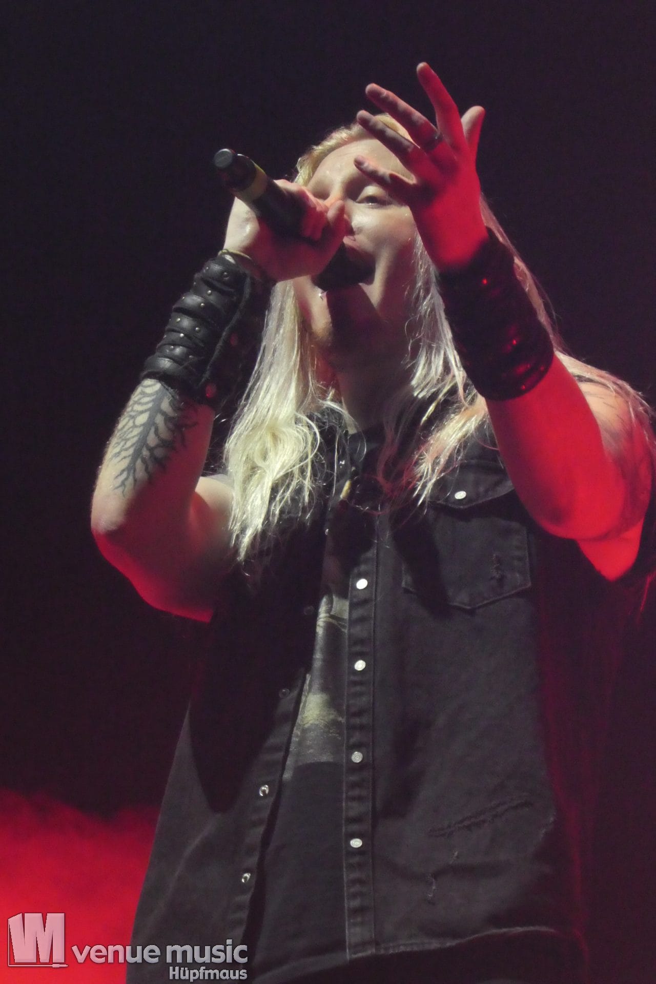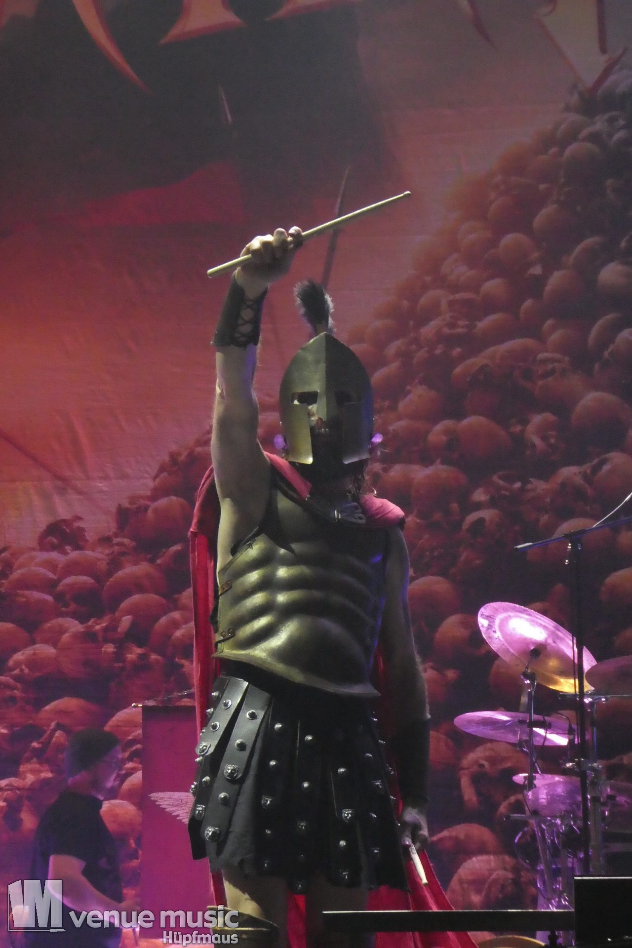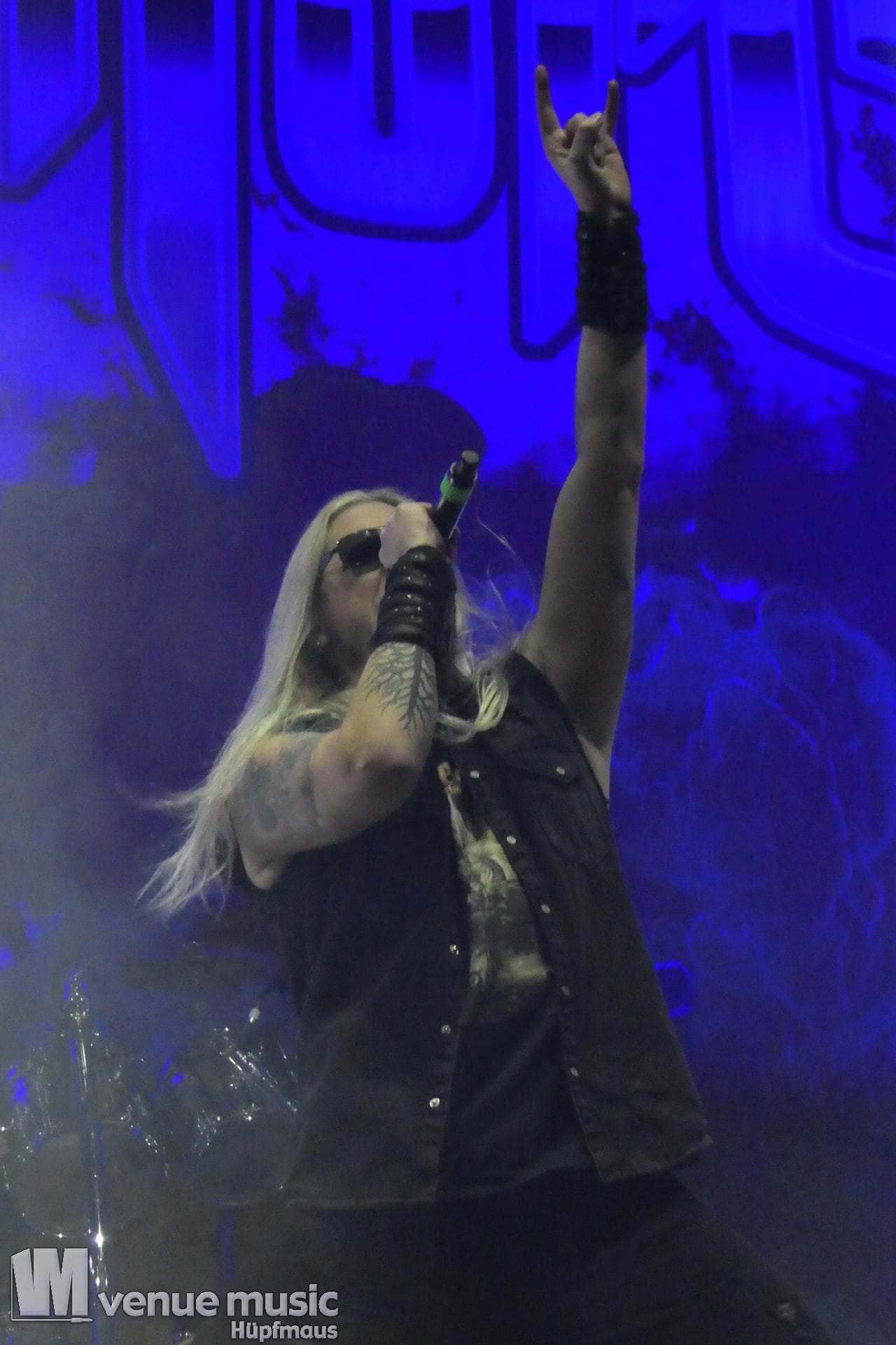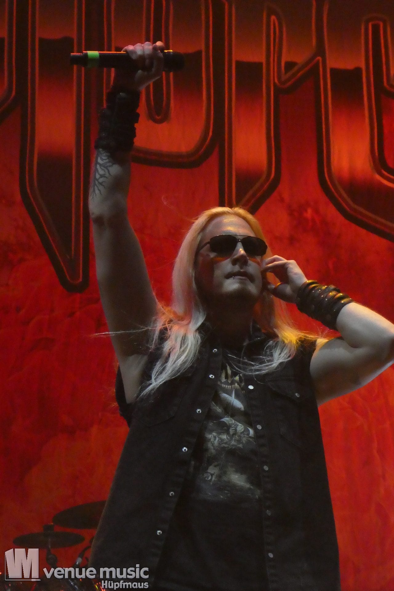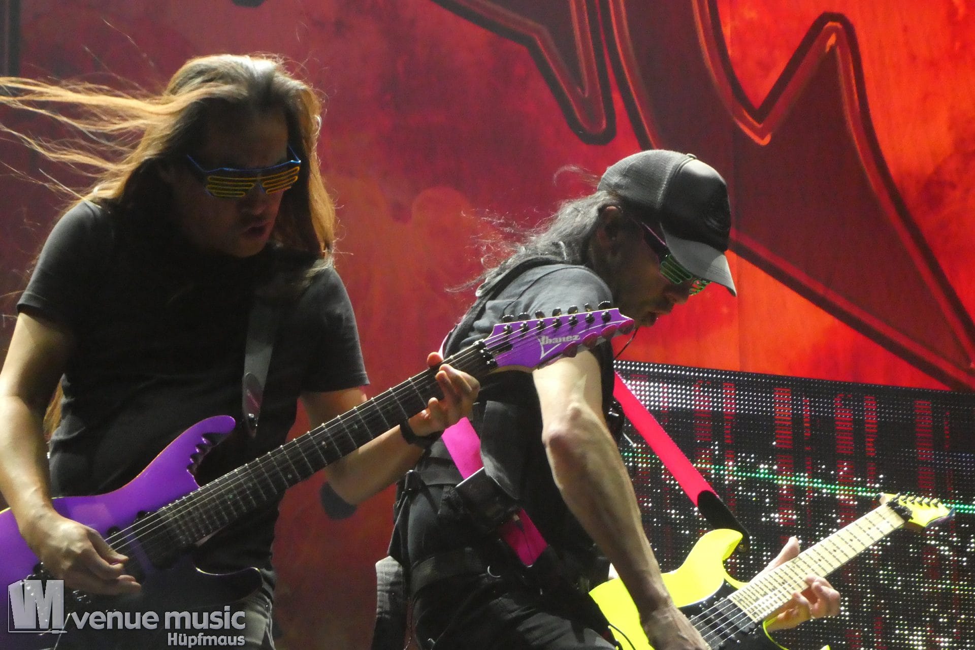 Dragonfoce hatte ich zuletzte vor ewigen Jahren gesehen und war komplett verdutzt, als der Sänger auf die Bühne kam – kannte ich doch noch ZP Theart am Mikro. Der Unterschied ist doch riesig ;) zumindest optisch… aber stimmungsmäßig ging es genau so gut ab wie damals und die Bühnendeko ist ziemlich cool. So sind die Mitglieder von Dragonforce Gamer und genau so wurde die Bühne gestaltet: mit Daddelautomaten als Podeste, auf denen „Spiele“ liefen, in denen die Band selbst als Character zu sehen war. Alleine das war es schon wert, den Auftritt zu sehen. Und dann noch die Energie auf der Bühne – das war megagenial!