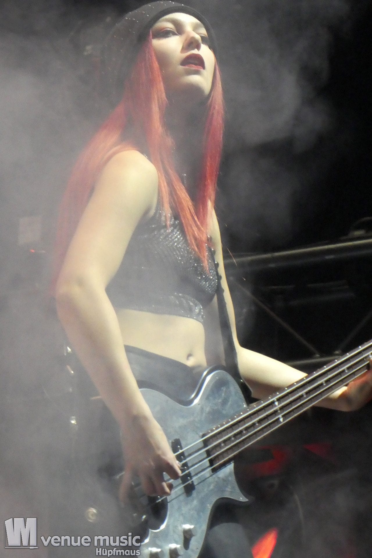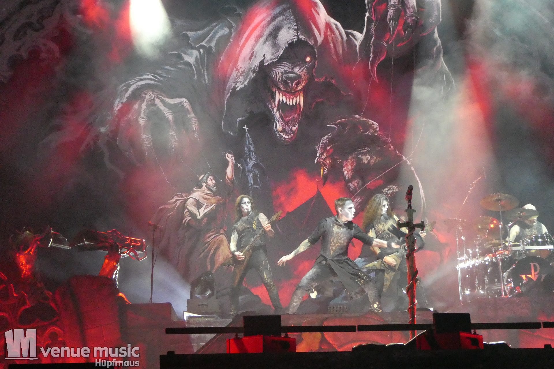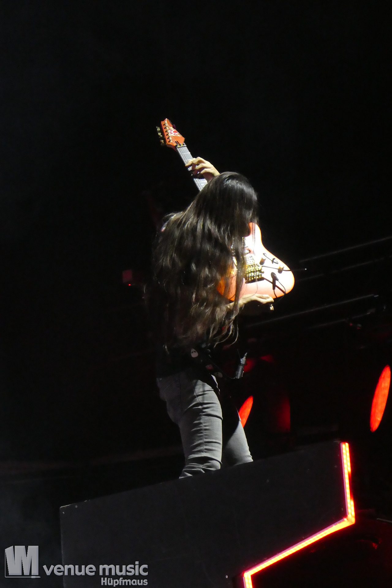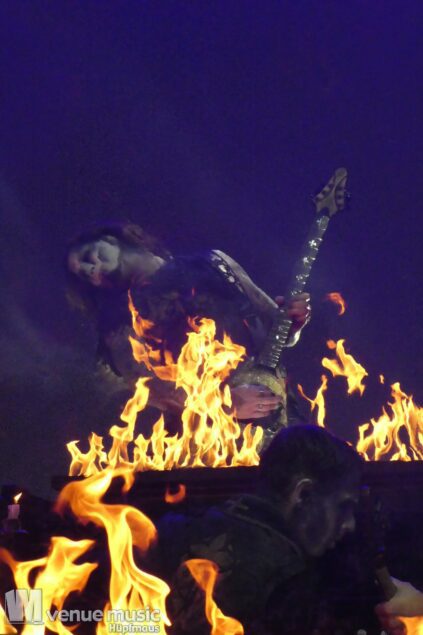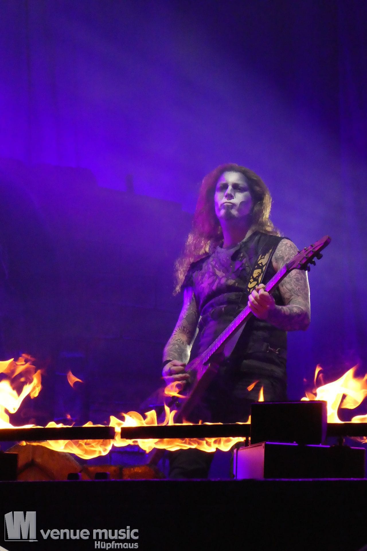 Dragonfoce hatte ich zuletzte vor ewigen Jahren gesehen und war komplett verdutzt, als der Sänger auf die Bühne kam – kannte ich doch noch ZP Theart am Mikro. Der Unterschied ist doch riesig ;) zumindest optisch… aber stimmungsmäßig ging es genau so gut ab wie damals und die Bühnendeko ist ziemlich cool. So sind die Mitglieder von Dragonforce Gamer und genau so wurde die Bühne gestaltet: mit Daddelautomaten als Podeste, auf denen „Spiele“ liefen, in denen die Band selbst als Character zu sehen war. Alleine das war es schon wert, den Auftritt zu sehen. Und dann noch die Energie auf der Bühne – das war megagenial!