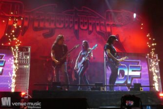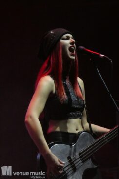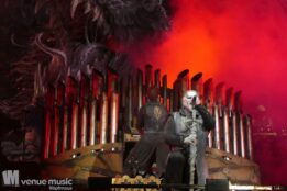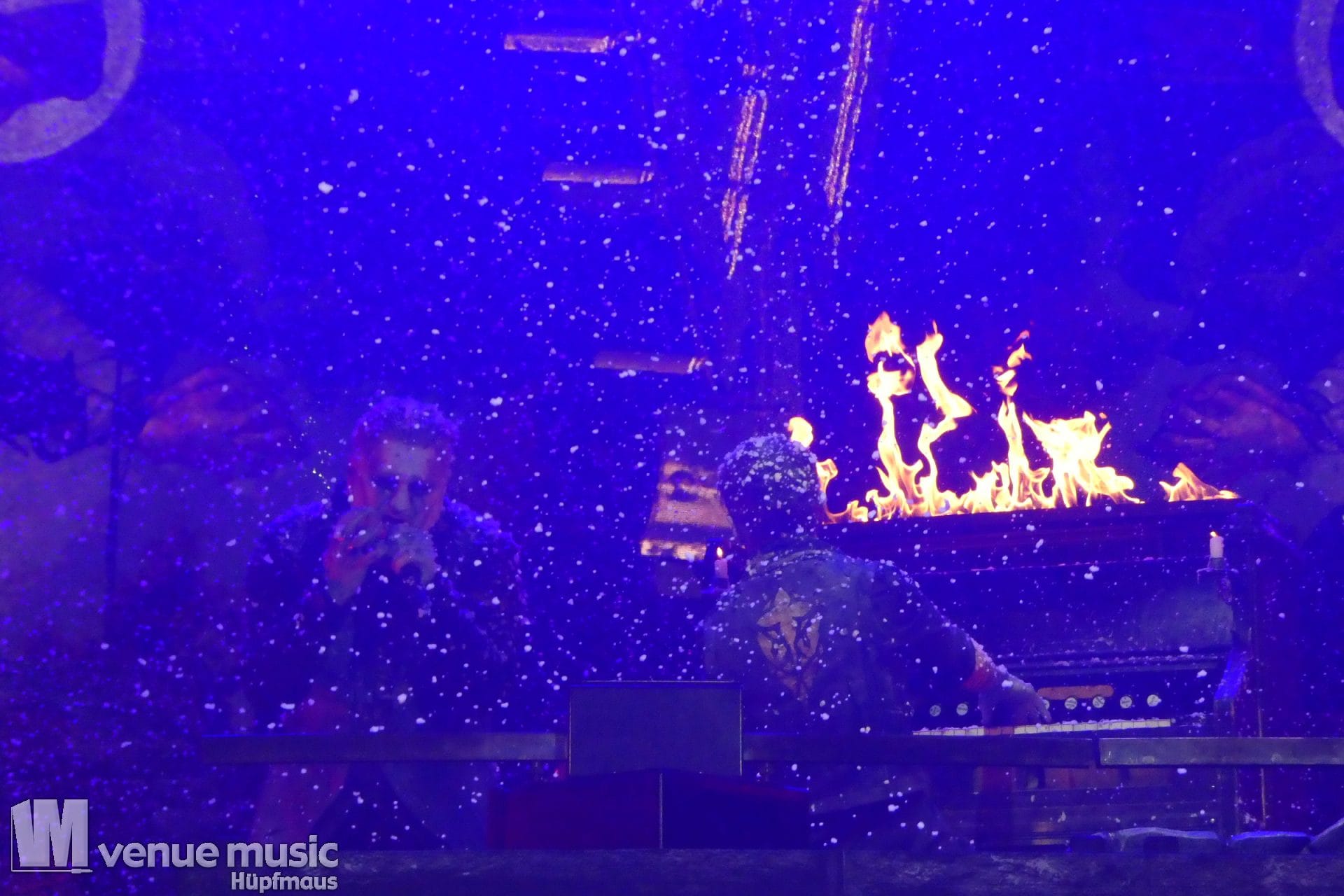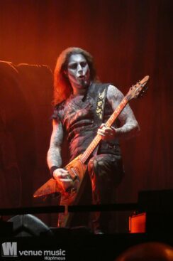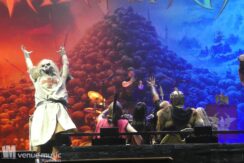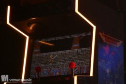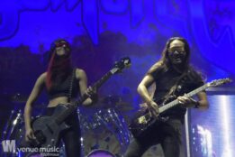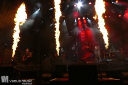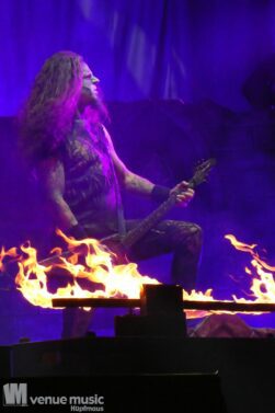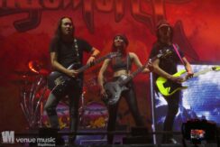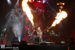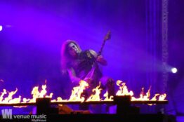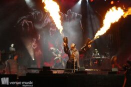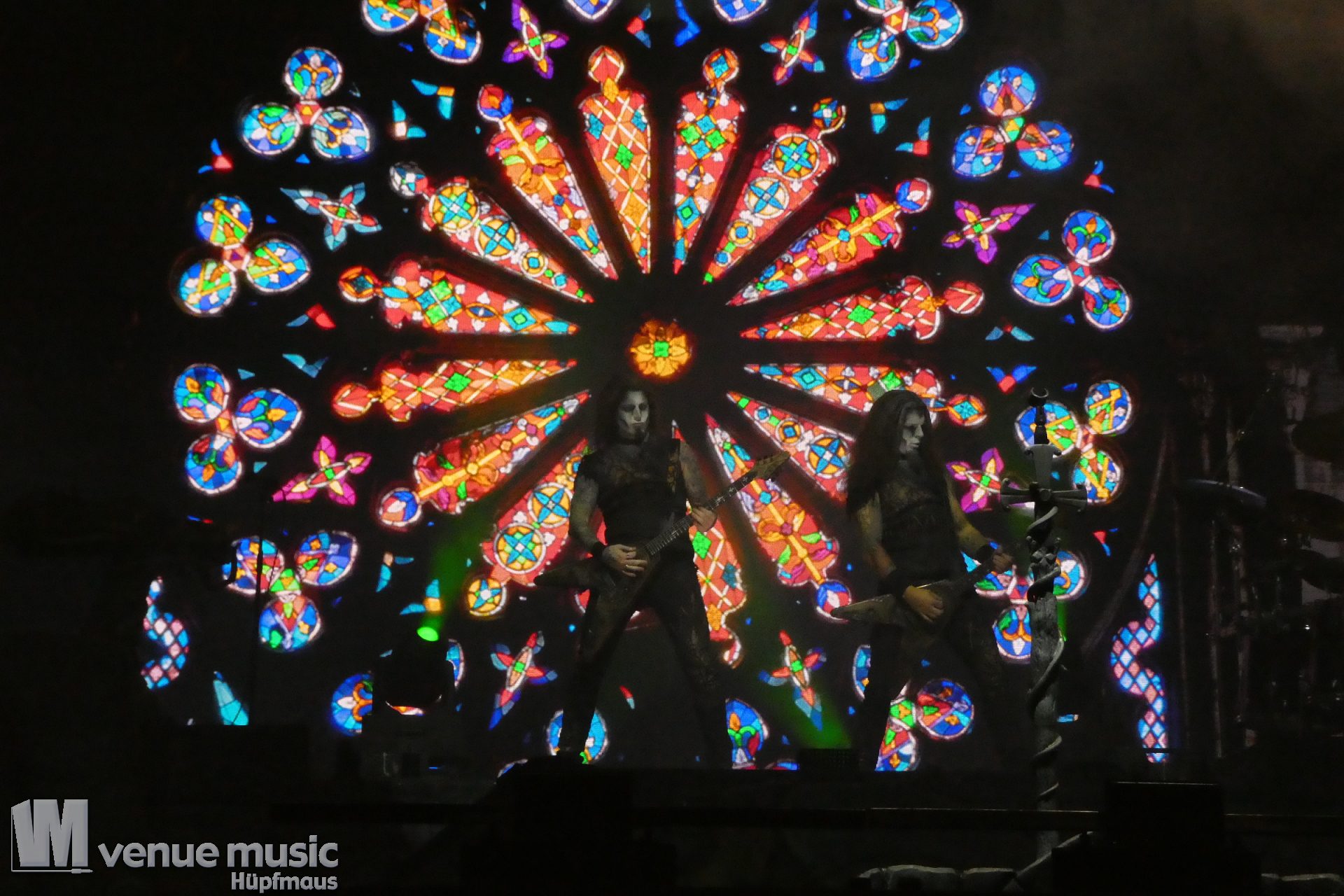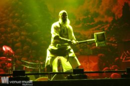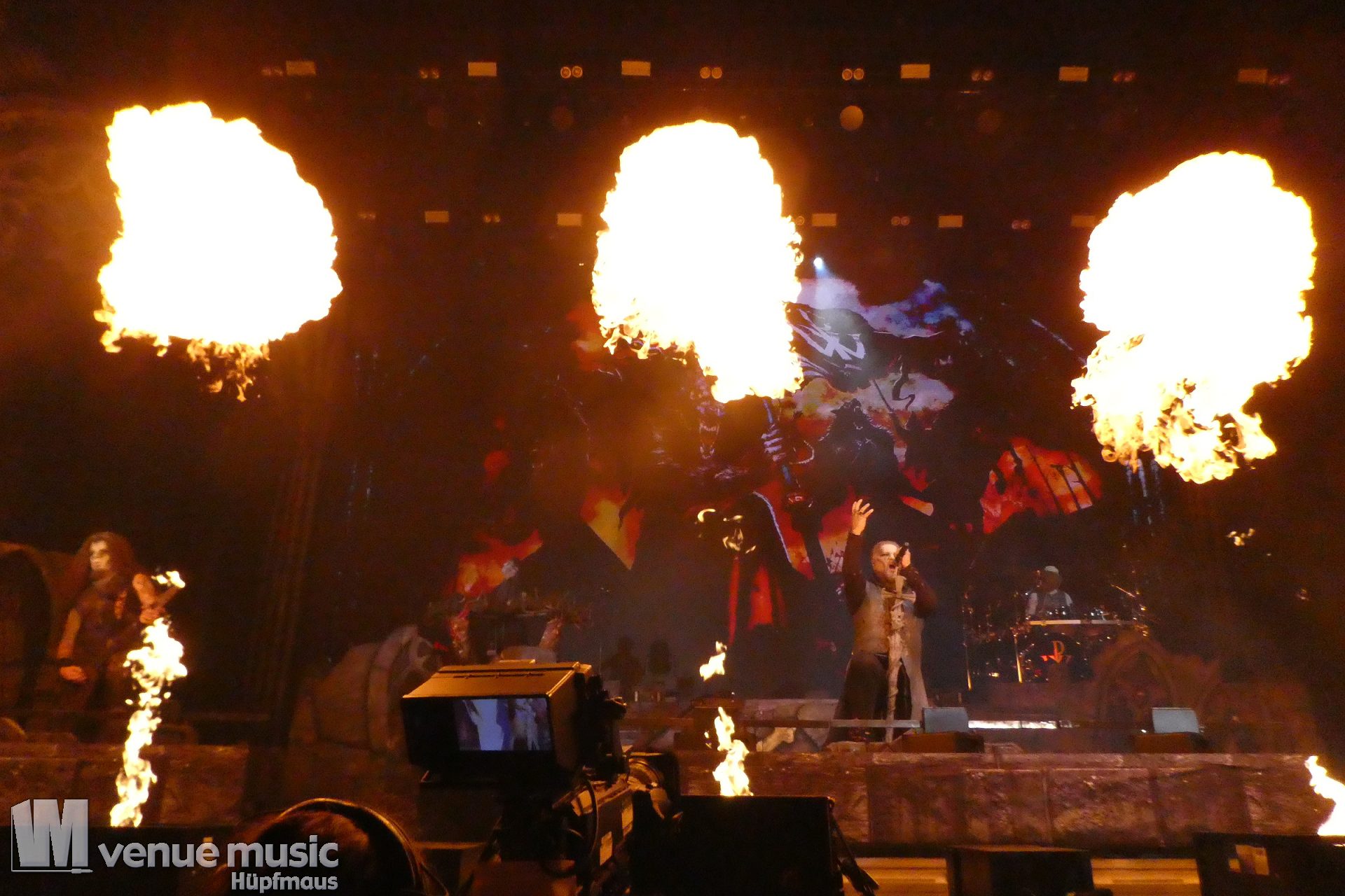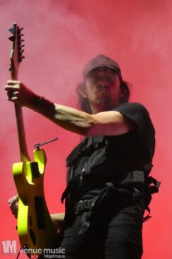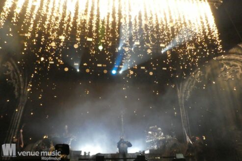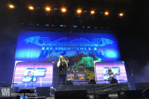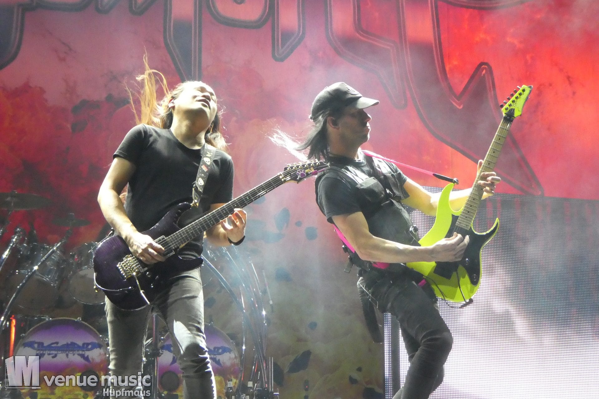 Dragonfoce hatte ich zuletzte vor ewigen Jahren gesehen und war komplett verdutzt, als der Sänger auf die Bühne kam – kannte ich doch noch ZP Theart am Mikro. Der Unterschied ist doch riesig ;) zumindest optisch… aber stimmungsmäßig ging es genau so gut ab wie damals und die Bühnendeko ist ziemlich cool. So sind die Mitglieder von Dragonforce Gamer und genau so wurde die Bühne gestaltet: mit Daddelautomaten als Podeste, auf denen „Spiele“ liefen, in denen die Band selbst als Character zu sehen war. Alleine das war es schon wert, den Auftritt zu sehen. Und dann noch die Energie auf der Bühne – das war megagenial!