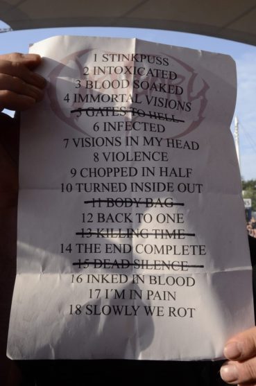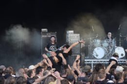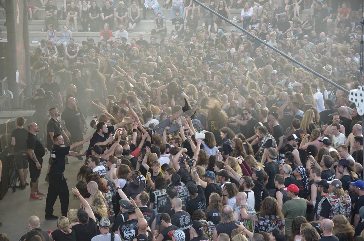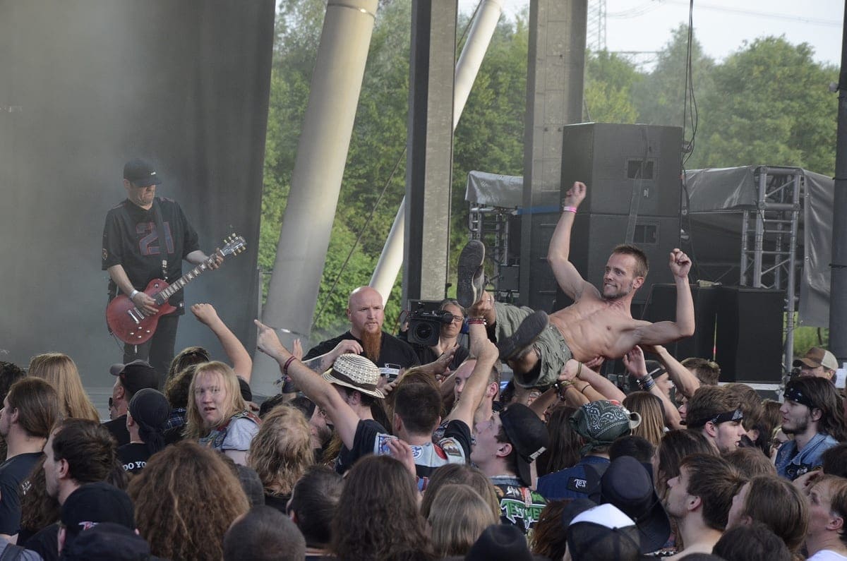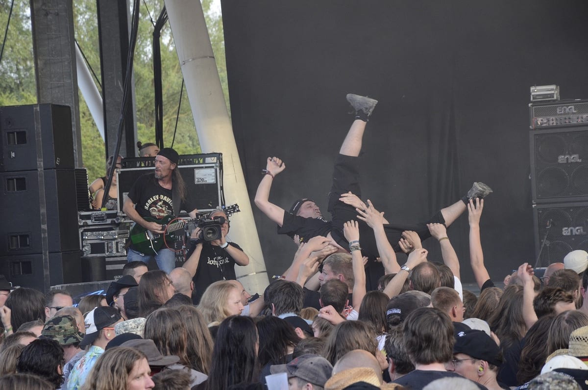 Danach ging es dann so richtig ab, Crowdsurfer um Crowdsurfer wurden über die Menge gereicht und die Haare flogen, was das Zeug hielt bei Obituary und Sacred Reich. Bei Carcass war es dann zwar ein bisschen ruhiger – aber auch nur ein bisschen.