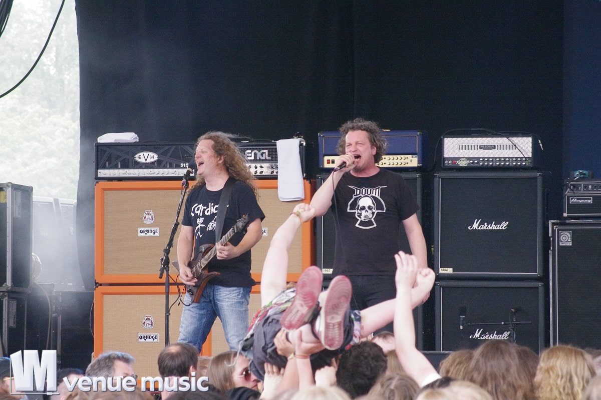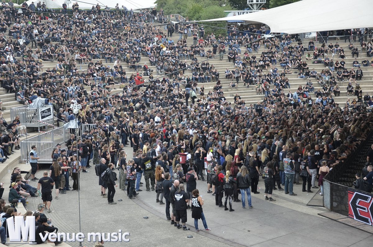Der zweite Festivaltag war zwar nicht ganz so sonnig wie der erste, doch für gute Stimmung sorgten Bands und Publikum, der Höhepunkt des Abends war der Auftritt von Kreator, die das Amphitheater komplett weggeblasen haben.