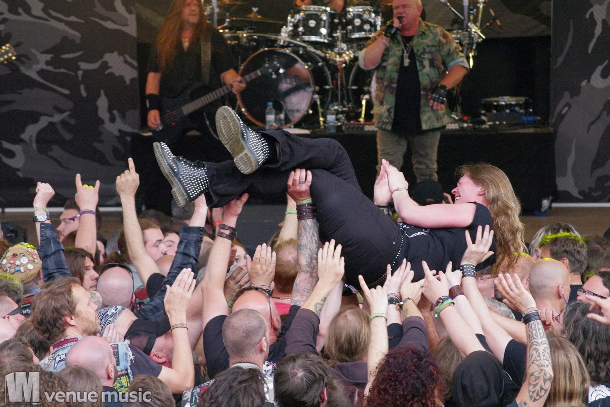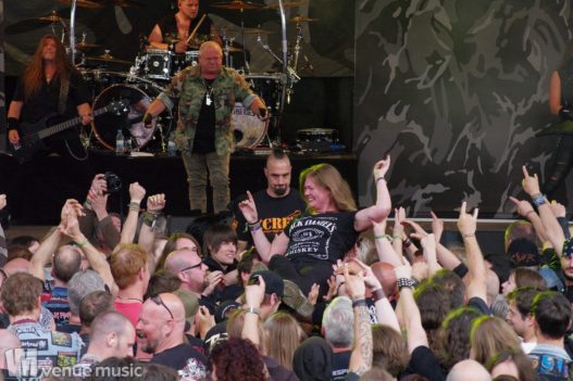 Als letzte Bands des Abends legten zunächst Dirkschneider einen grandiosen Auftritt mit ihrer „Farewell To Accept“-Show hin, der viele viele Konzertbesucher zum Crowdsurfen animierte – und endlich bekam die Security im Graben mal ein bisschen Arbeit ;)