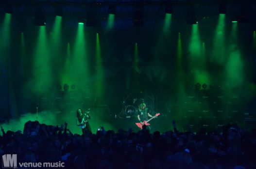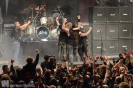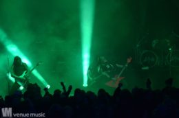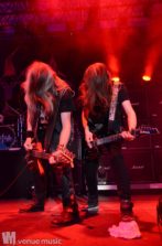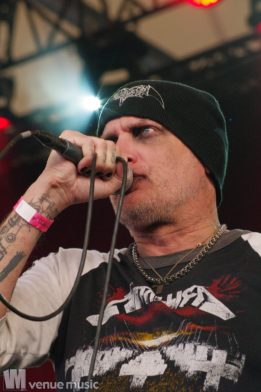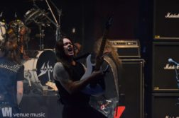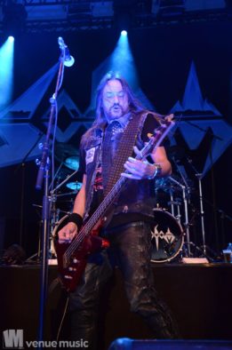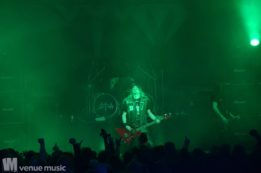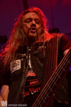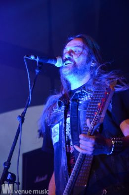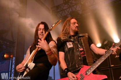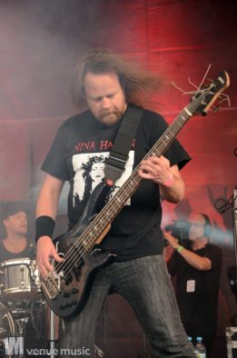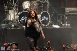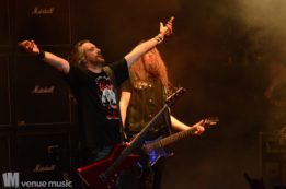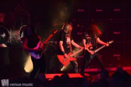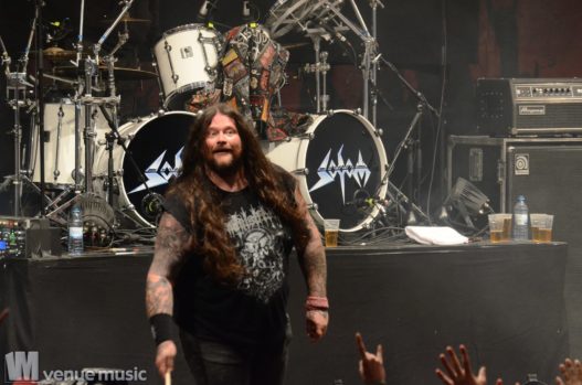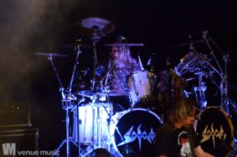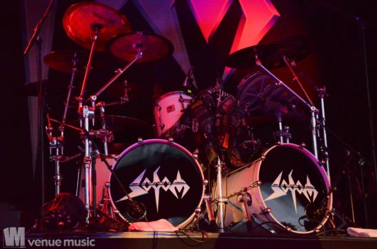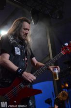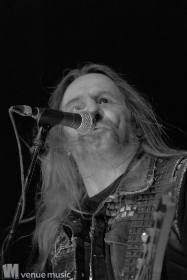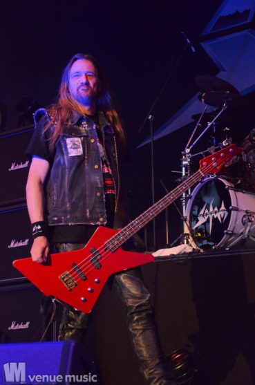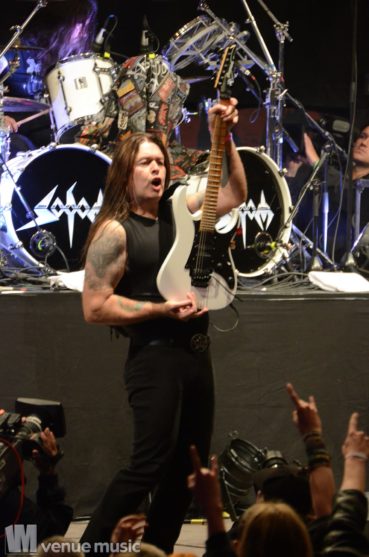 Danach hieß es alle festhalten, es geht rund, denn mit Sodom kam auch direkt mehr Wumms auf die Bühne. Das erste Konzert in neuer Besetzung sollte ein Oldscool-Set werden, stammten doch mehr als die Hälfte der Songs aus den 80ern, also Alben wie „Agent Orange“ oder „Persecution Mania“. Genau diese Songs wollten die Fans hören, zumal an der Gitarre wieder Frank „Blackfire“ Gosdzik in die Saiten greift, der damals schon bei Sodom mit dabei war. Wobei die letzte Scheibe „Decision Day“ mit nur einem Song durchaus unterrepräsentiert war – ging sie doch auch wieder in die Richtung der alten Songs und hätte echt mehr Aufmerksamkeit verdient gehabt. Aber das passt nun mal nicht zu einem Oldscool-Set, vor allem, wenn es noch so viele andere Scheiben der Band gibt.