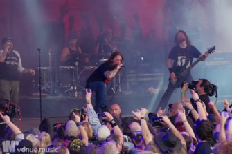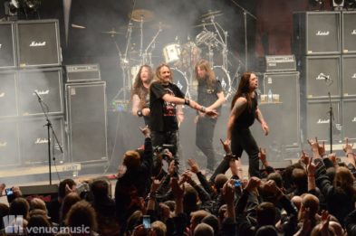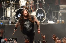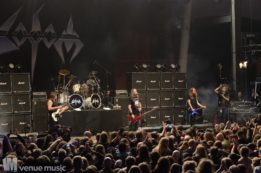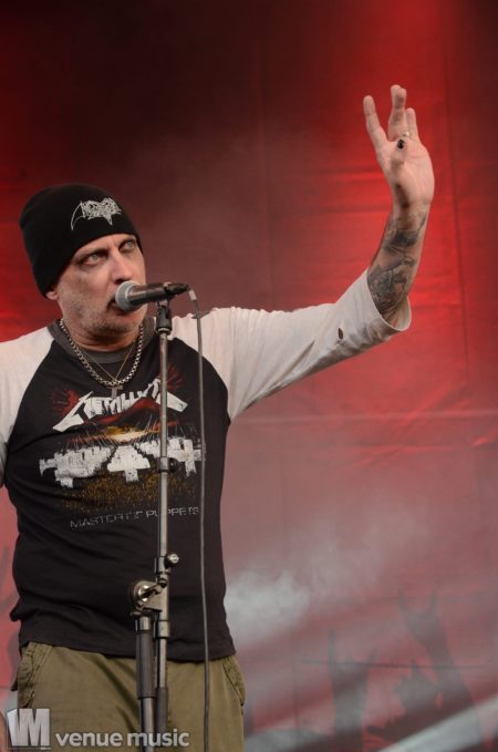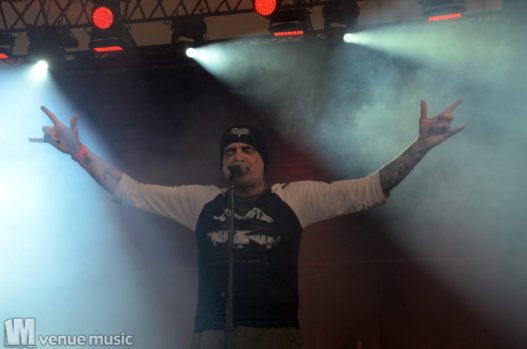 Mit „Hallo Heimat“ begrüßte Tom Angelripper das Publikum auf dem Rock Hard Festival – stammt die Band doch in der Tat aus Gelsenkirchen und hatte also ein echtes Heimspiel. Das machte es vielleicht auch leichter für die Band, das Publikum zu begeistern, waren die Reaktionen in der Fangemeinde doch teils zwiegespalten nach dem überraschenden Besetzungswechsel kurz nach der Jubiläumsshow in Bochum an Weihnachten.