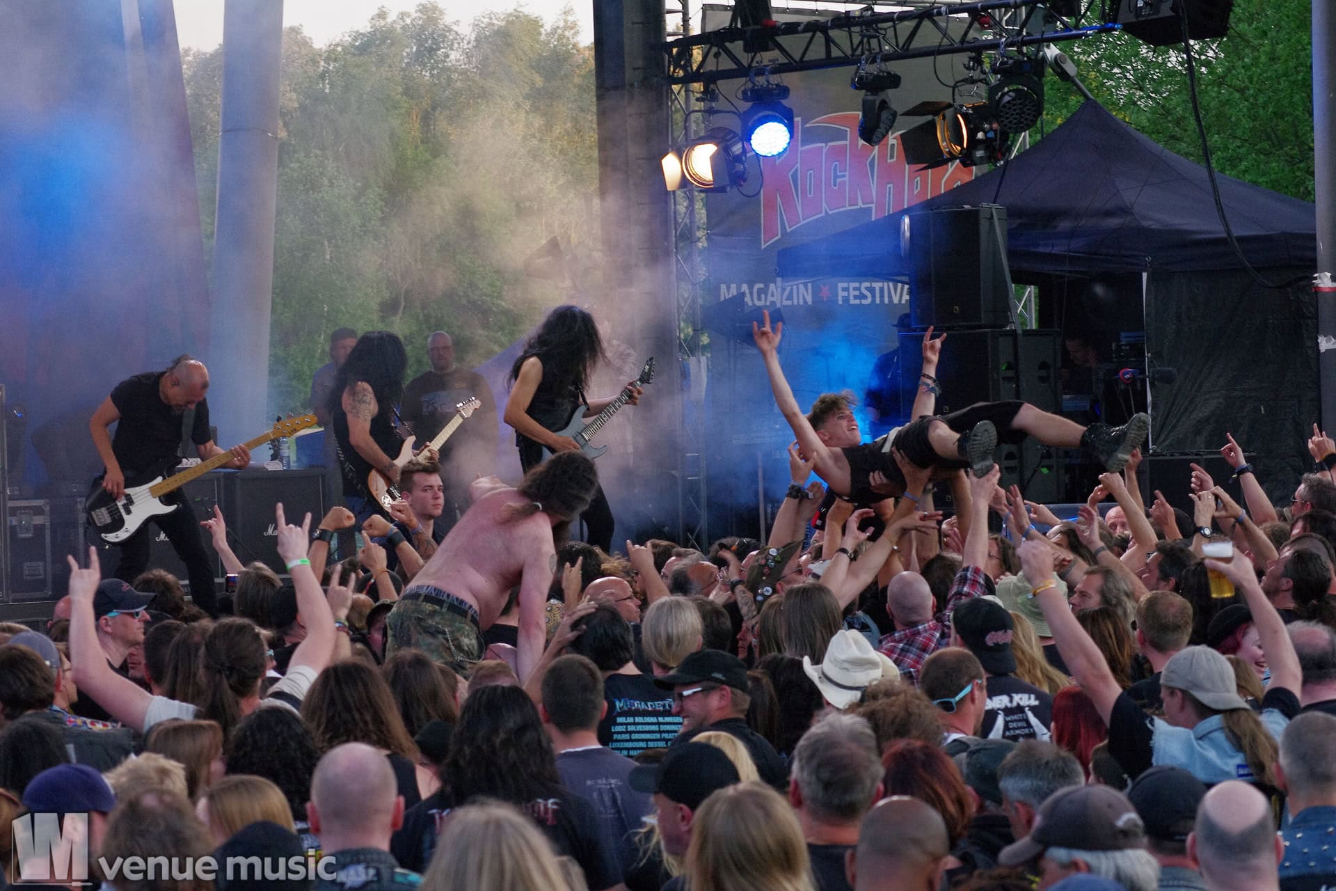 Auch Armored Saint hatten sichtlich Spaß bei ihrem Auftritt, die Zahl der Crowdsurfer stieg deutlich an, so bekam die bis dahin unterbeschäftigte Security endlich etwas zu tun. In ihrem Set hatten die Kalifornier Songs, die schon lange nicht mehr live gespielt wurden, wie „Spineless“ und „On the Way“. So bekamen die Fans echte Raritäten und Leckerbissen zu hören. Vor der Bühne wurde es zusehends voller und die Energie der Band übertrug sich auf das Publikum.
