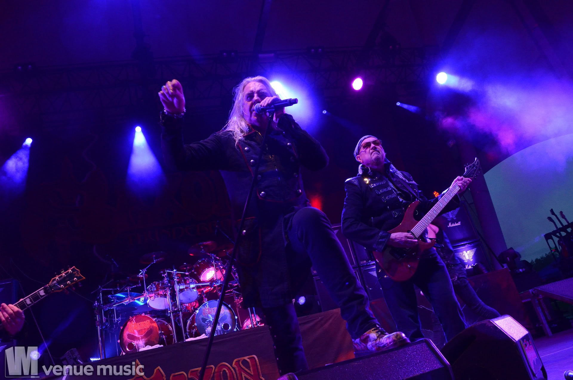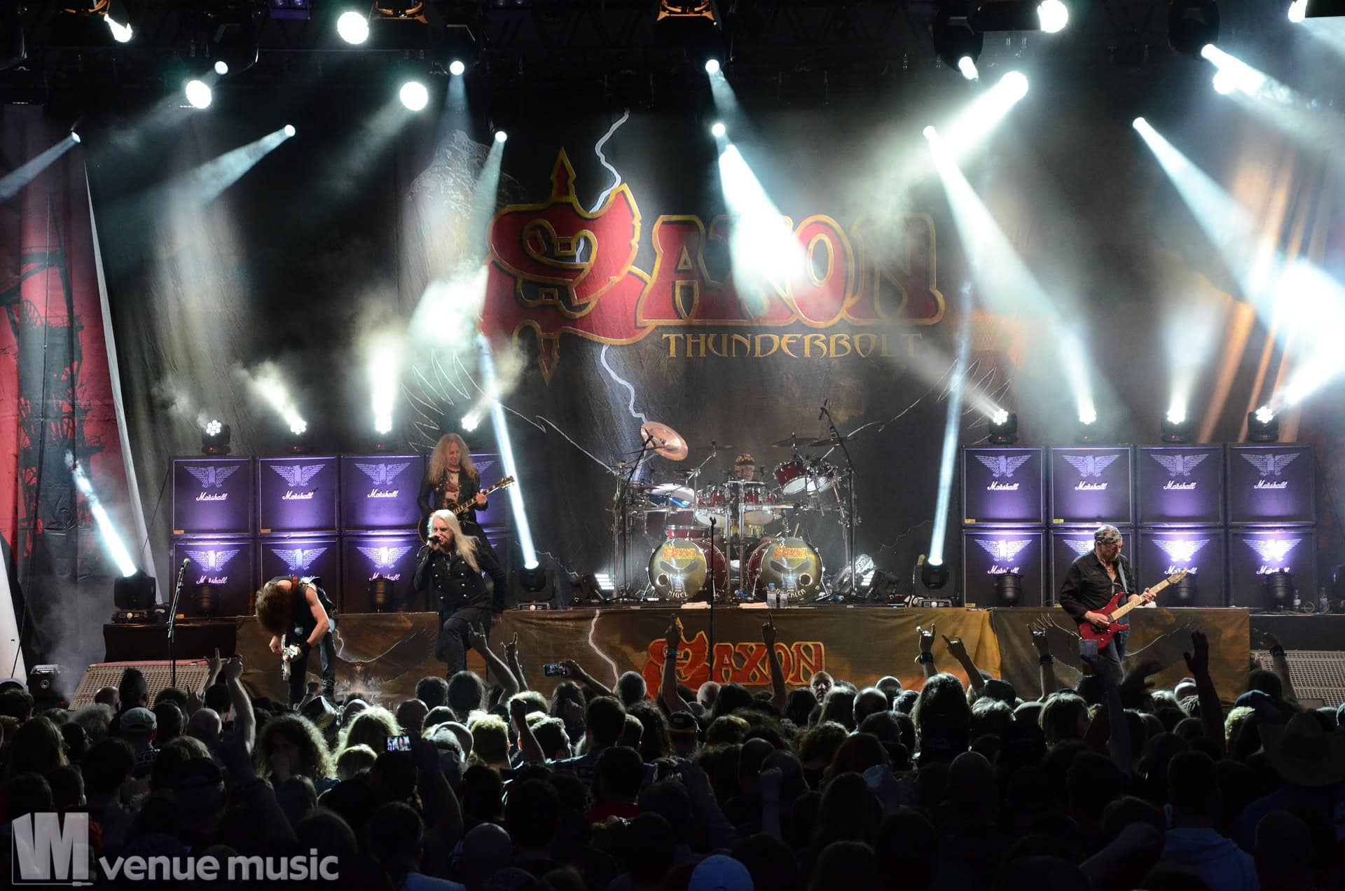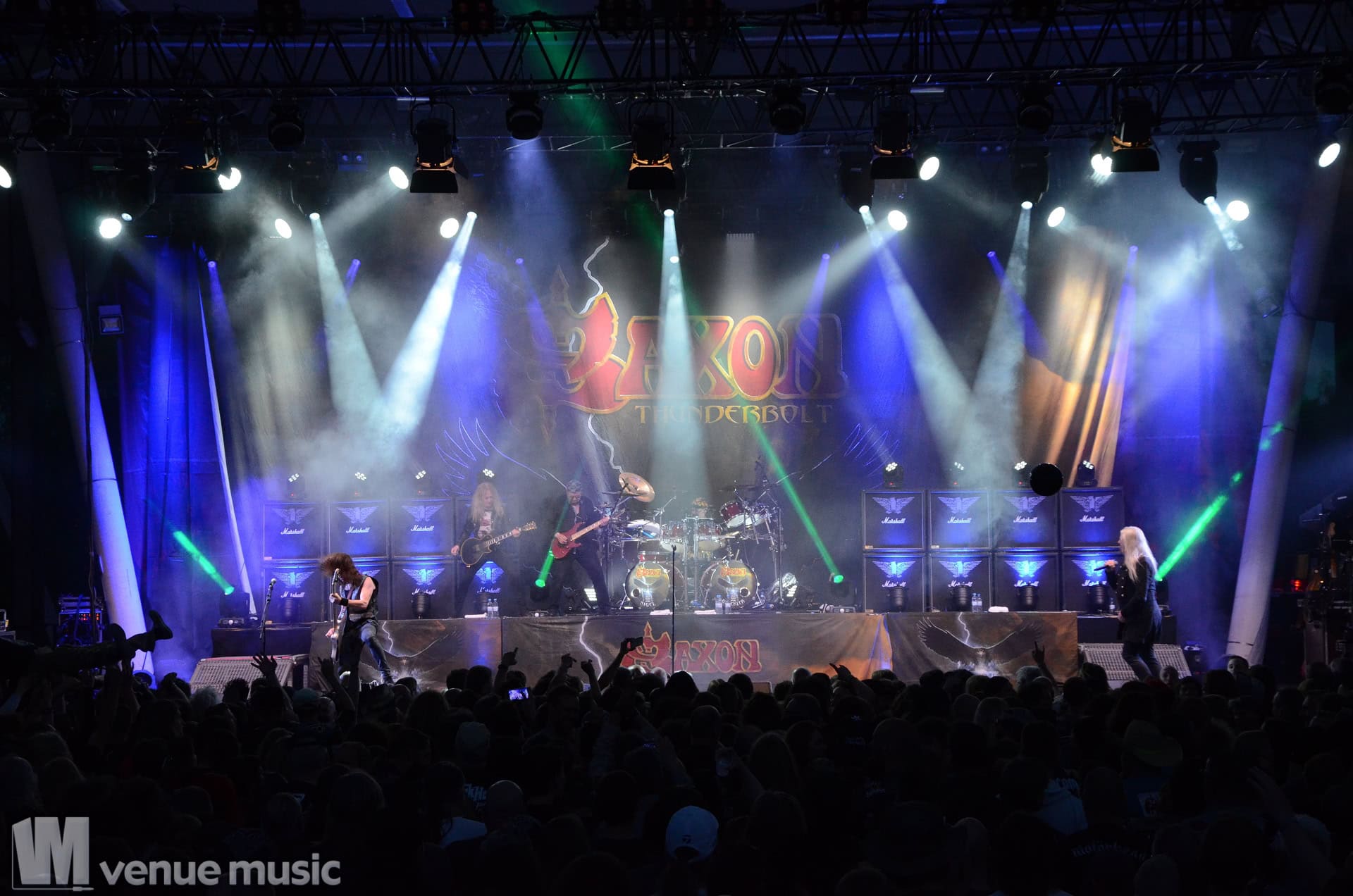 Den Abschluss von drei großartigen Festivaltagen des Rock Hard Festivals sollte am Sonntag dann Saxon krönen. Mit ihrem aktuellen Album „Thunderbolt„(*) im Gepäck reisten die Briten nach ihrer Tour mit Judas Priest in Gelsenkirchen an. Wer so viele Werke veröffentlicht hat wie Saxon, kann natürlich nicht aus jedem Songs spielen, aber es waren Songs aus ihrer ganzen Schaffensphase dabei, natürlich einiges von der neuen Platte (z.B. „Sons of Odin“ oder der Titeltrack), aber auch Klassiker wie „Wheels of Steel“ oder „Princess of the night“ durften nicht fehlen.