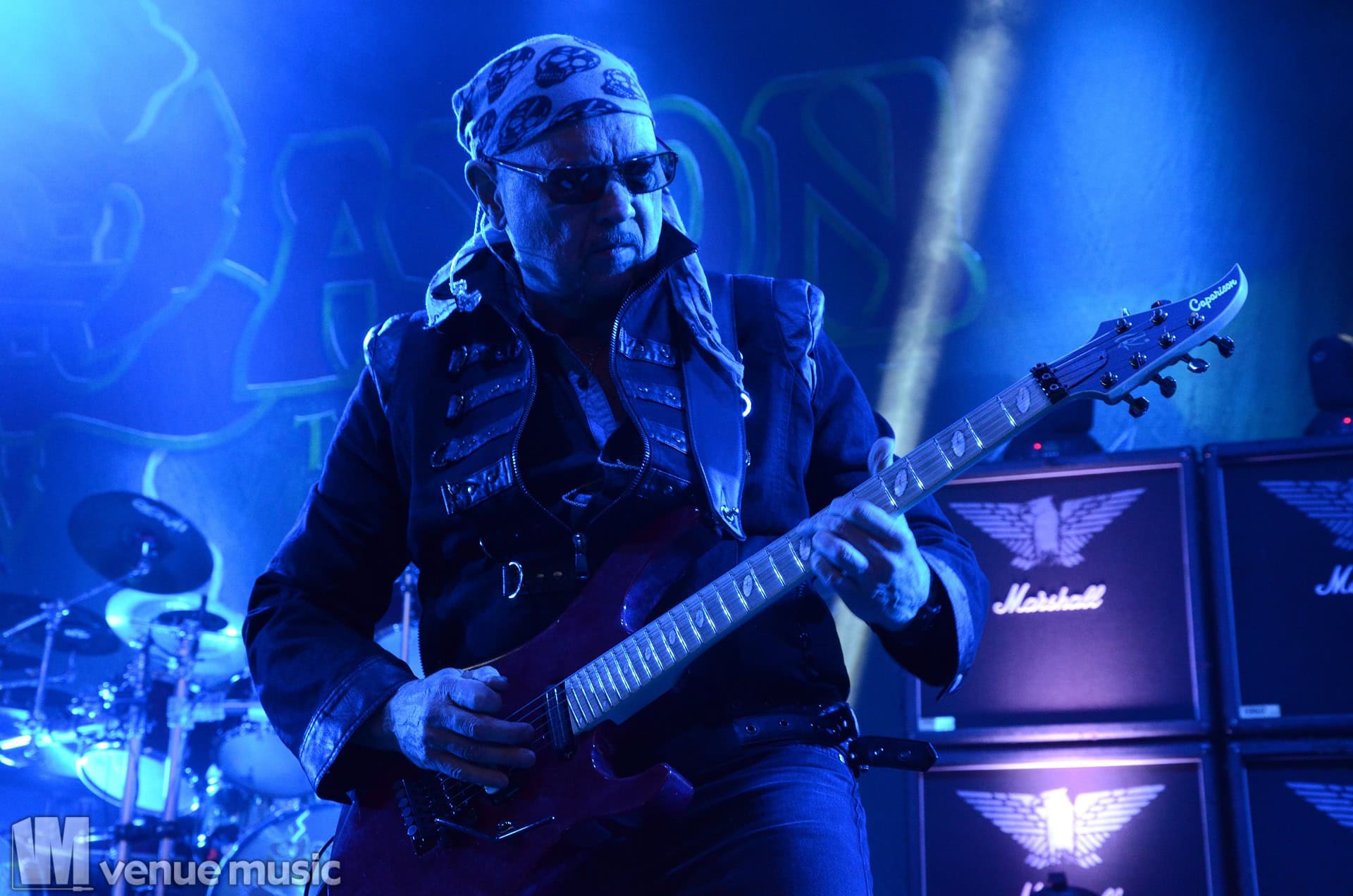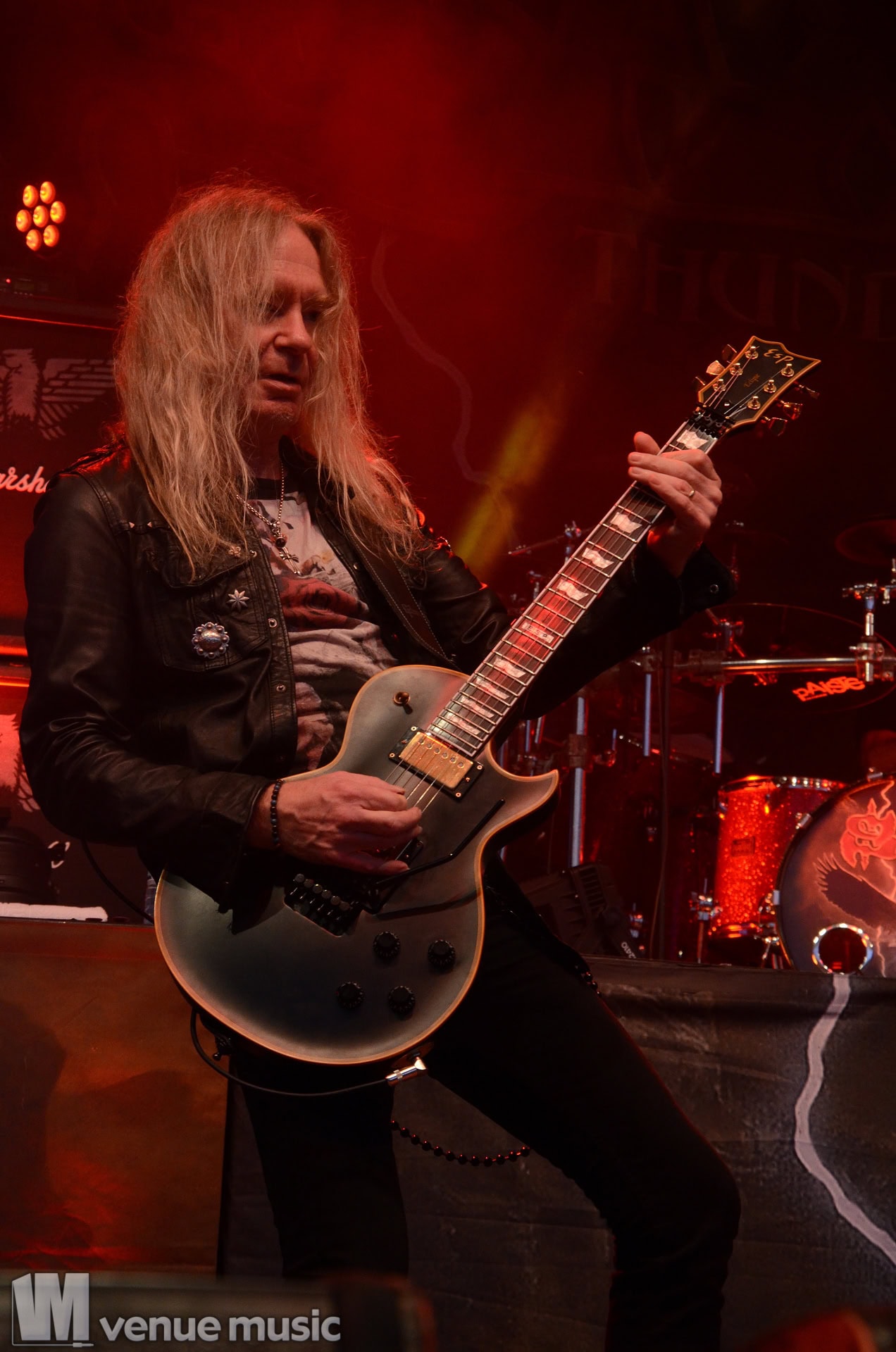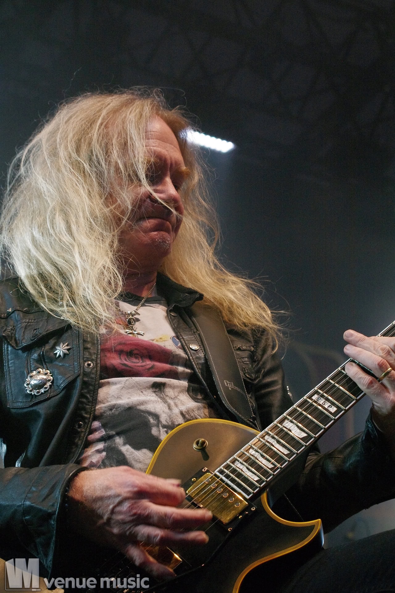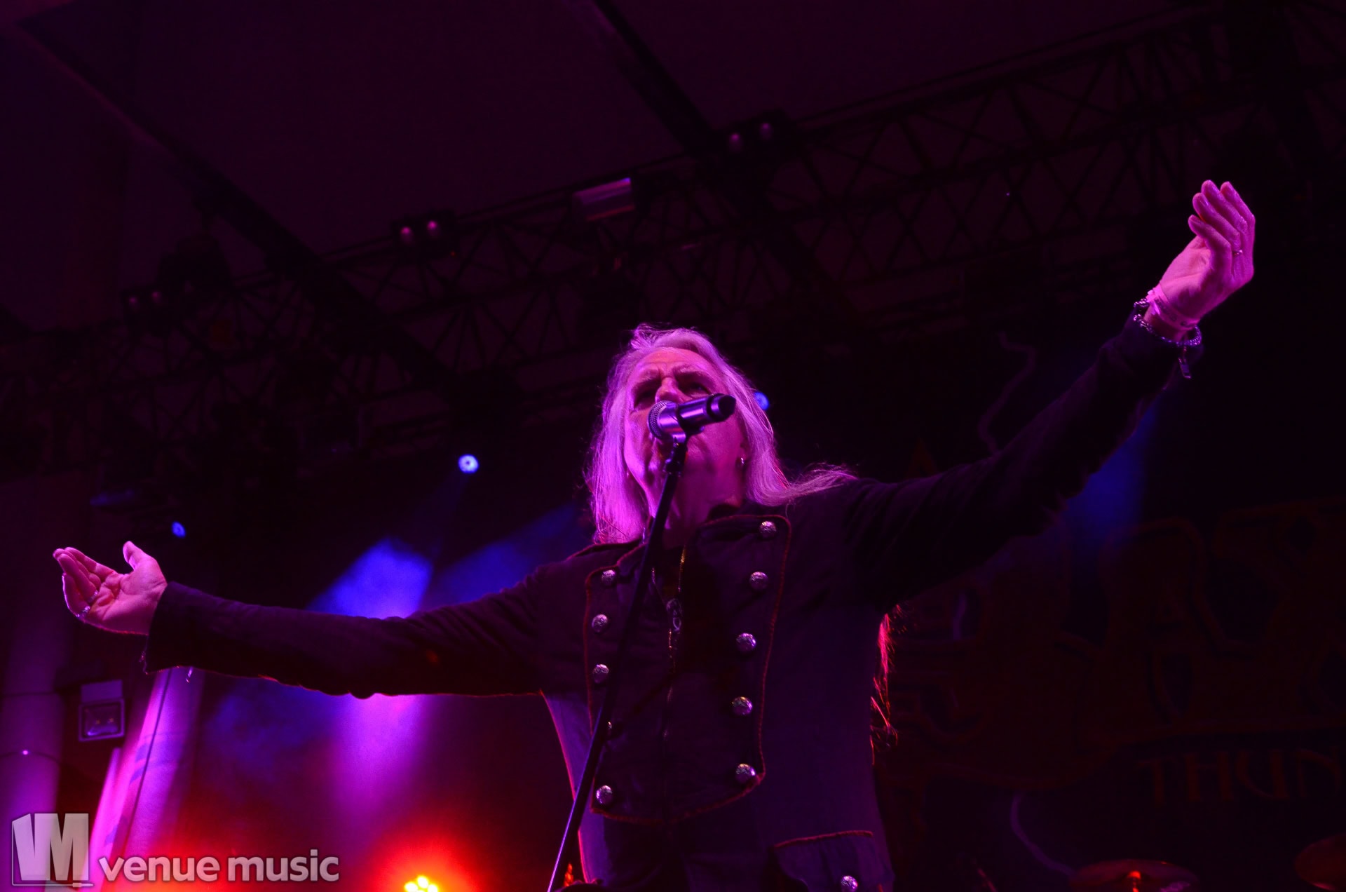 Den Abschluss von drei großartigen Festivaltagen des Rock Hard Festivals sollte am Sonntag dann Saxon krönen. Mit ihrem aktuellen Album „Thunderbolt„(*) im Gepäck reisten die Briten nach ihrer Tour mit Judas Priest in Gelsenkirchen an. Wer so viele Werke veröffentlicht hat wie Saxon, kann natürlich nicht aus jedem Songs spielen, aber es waren Songs aus ihrer ganzen Schaffensphase dabei, natürlich einiges von der neuen Platte (z.B. „Sons of Odin“ oder der Titeltrack), aber auch Klassiker wie „Wheels of Steel“ oder „Princess of the night“ durften nicht fehlen.
