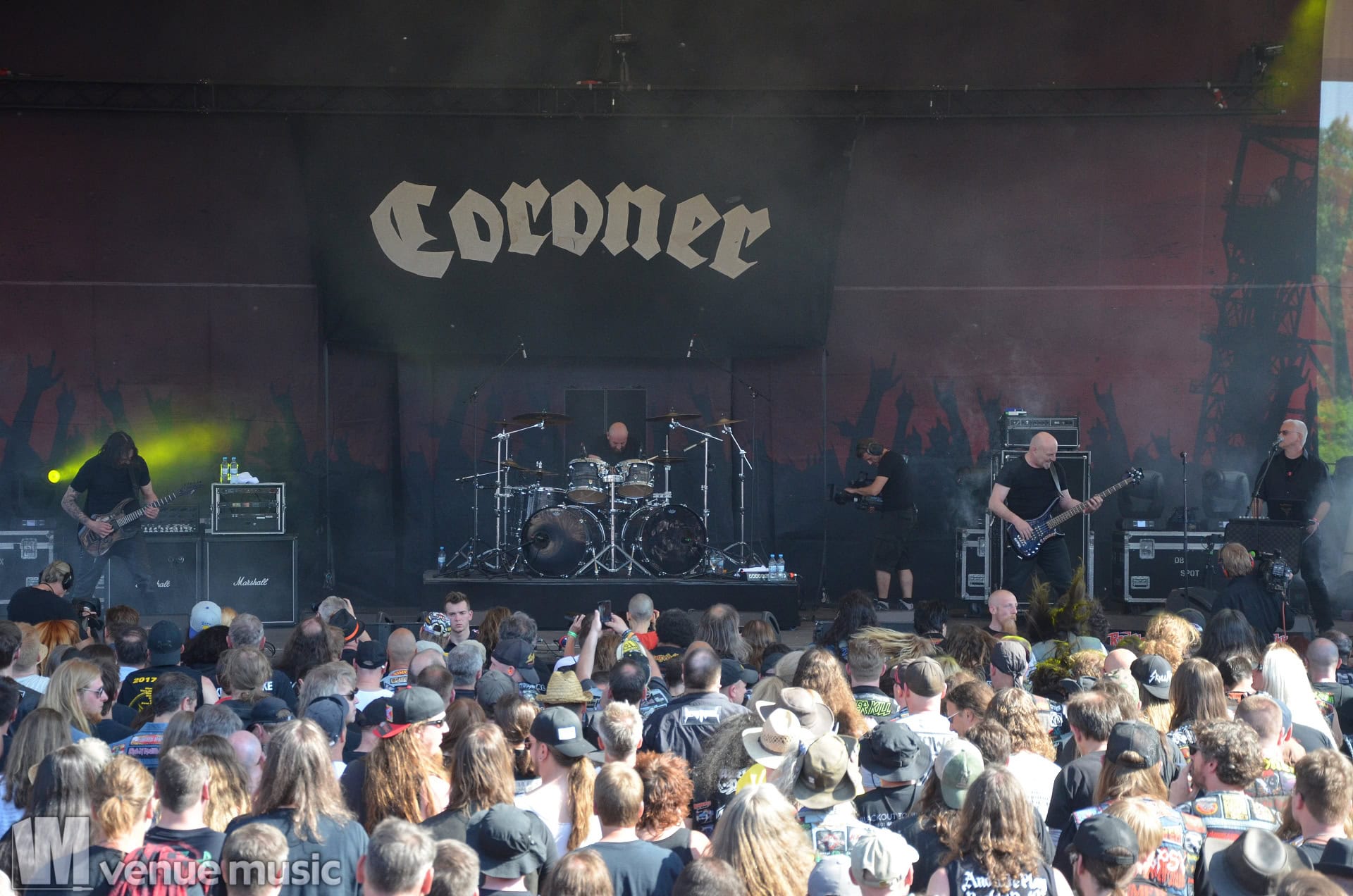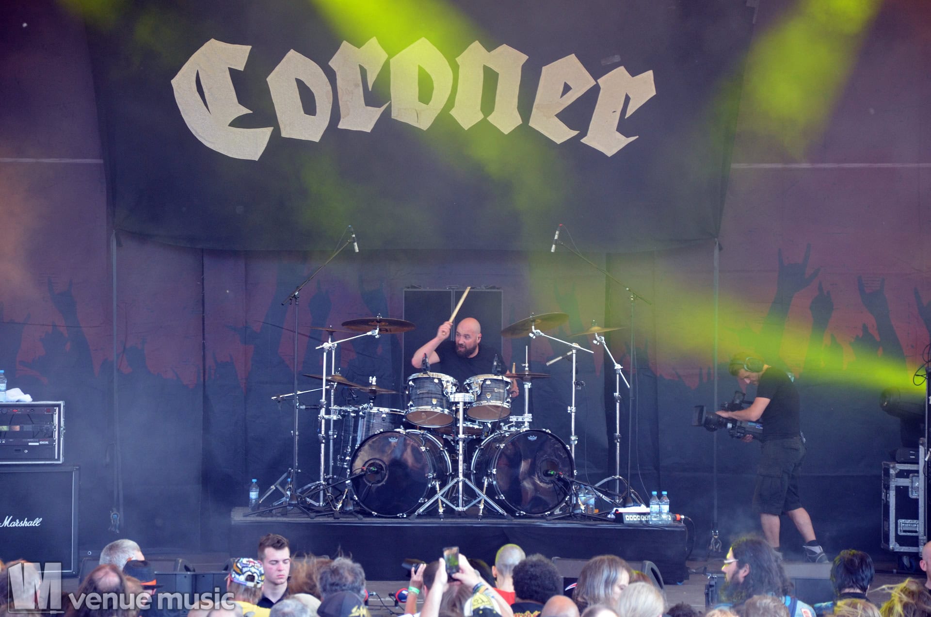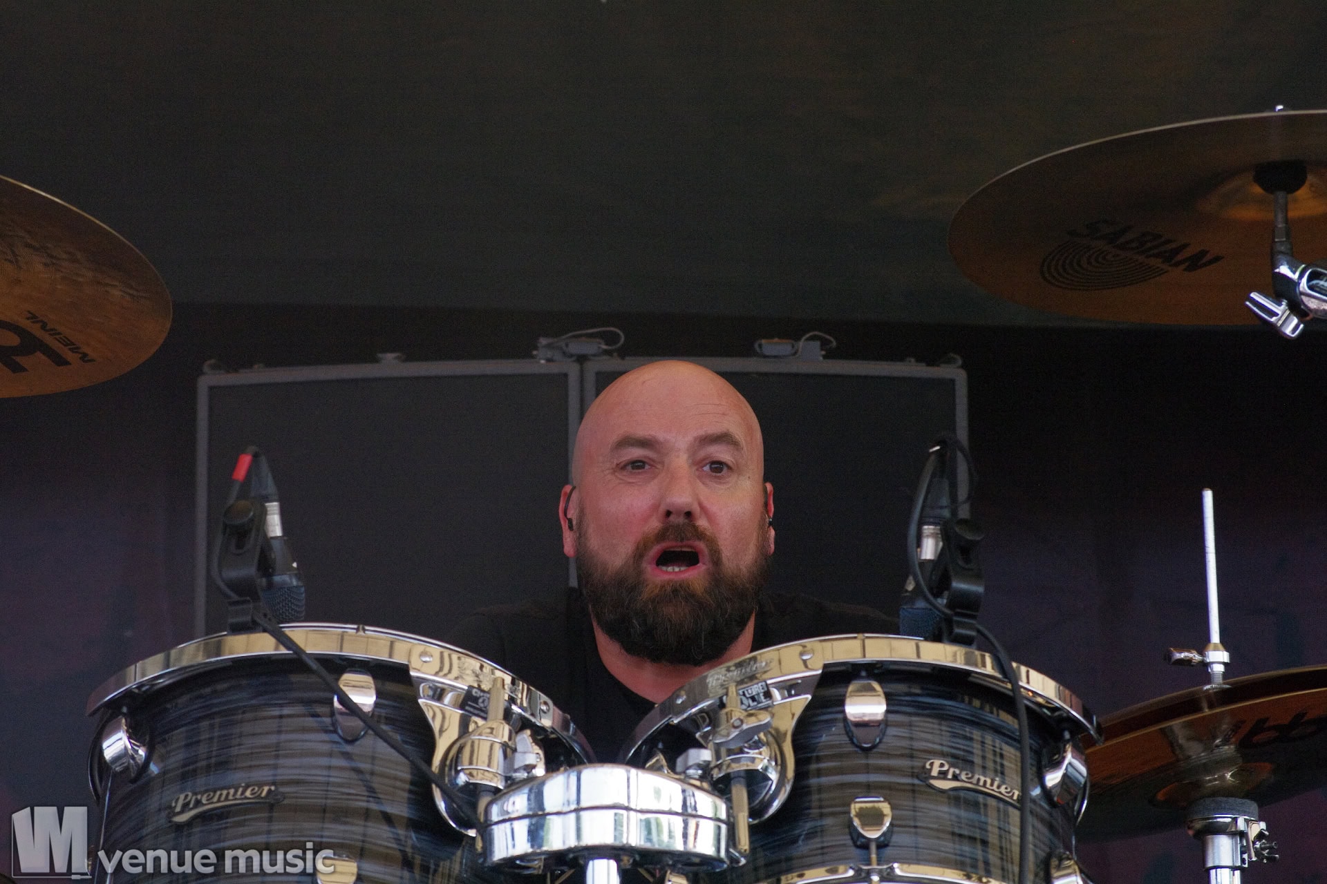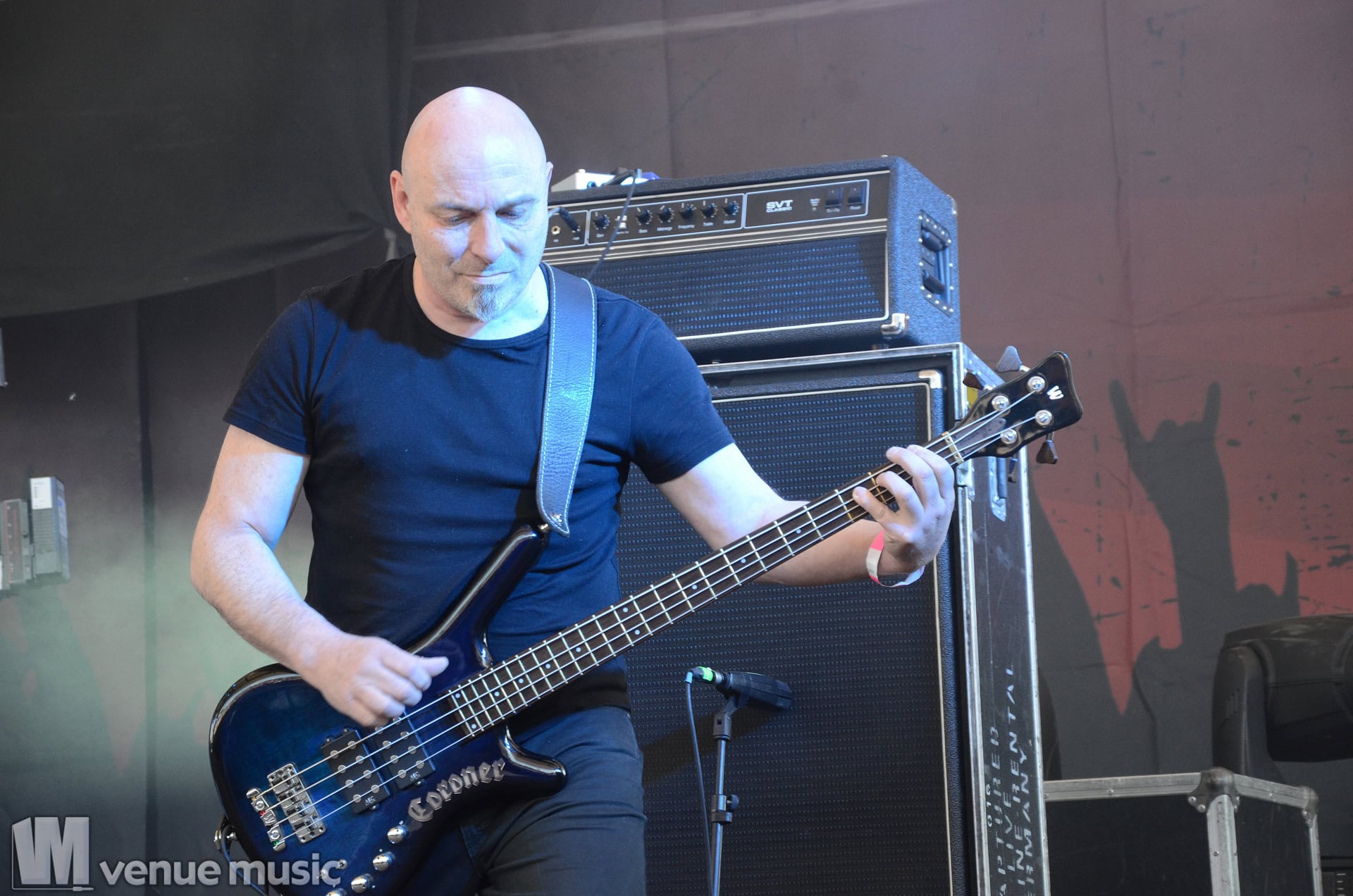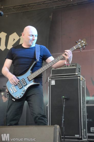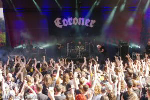 Das neuste Album von Coroner ist immerhin 25 Jahre alt, denn die Band hatte sich in den 90ern eigentlich aufgelöst um nun seit einigen Jahren wieder ein paar Shows zusammen zu spielen. Sie bedachten jedes ihrer 5 Werke mit mind. einem Song in der Setlist. Eine aufwändige Bühnenshow lieferten die Schweizer zwar nicht ab, aber rockten dennoch richtig los. Vor allem Drummer Marky Edelmann gab alles und hängte sich so richtig rein. Ein großartiges Moshpit oder viele Crowdsurfer waren nicht zu verzeichnen, doch das Amphitheater war gut gefüllt.